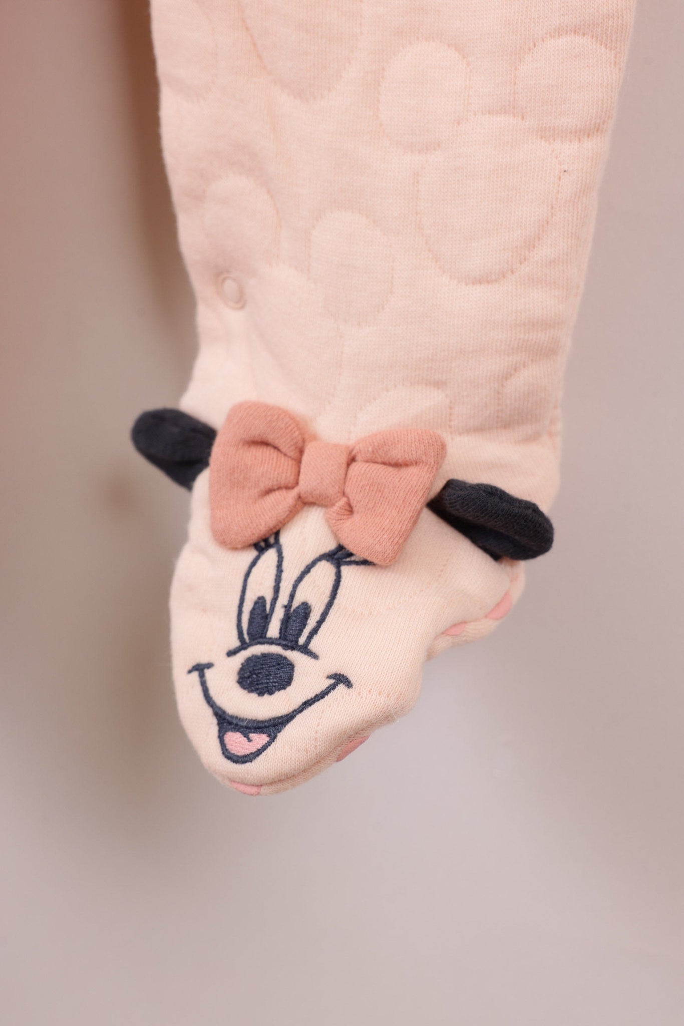 אוברול לתינוק בעיצוב ממותג מיני מאוס, מבד מרופד ורך למגע.