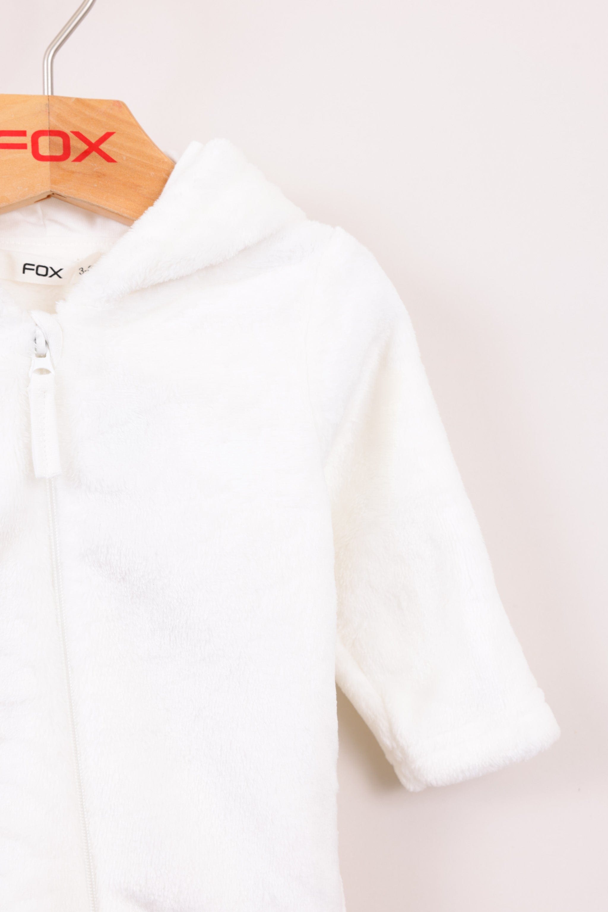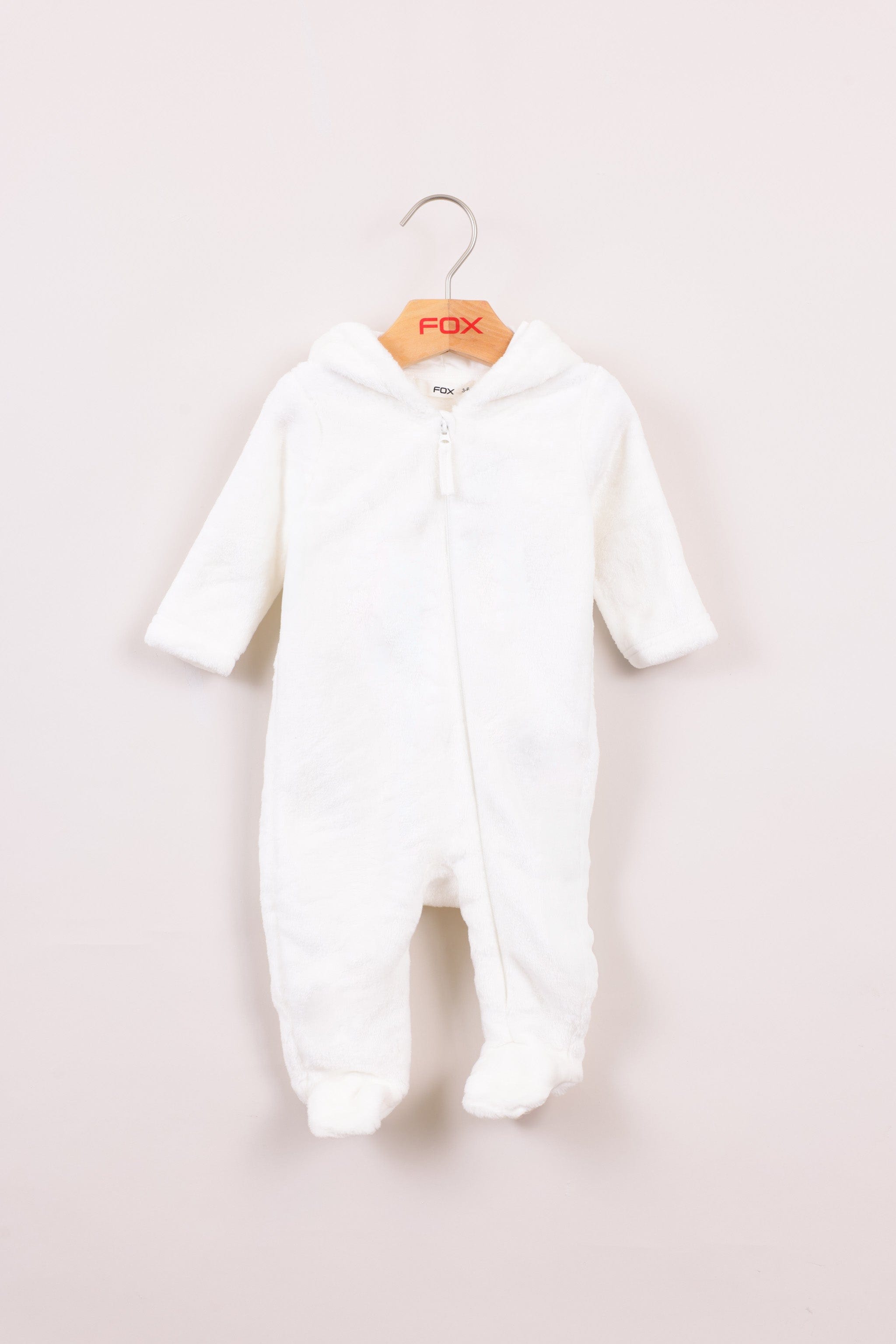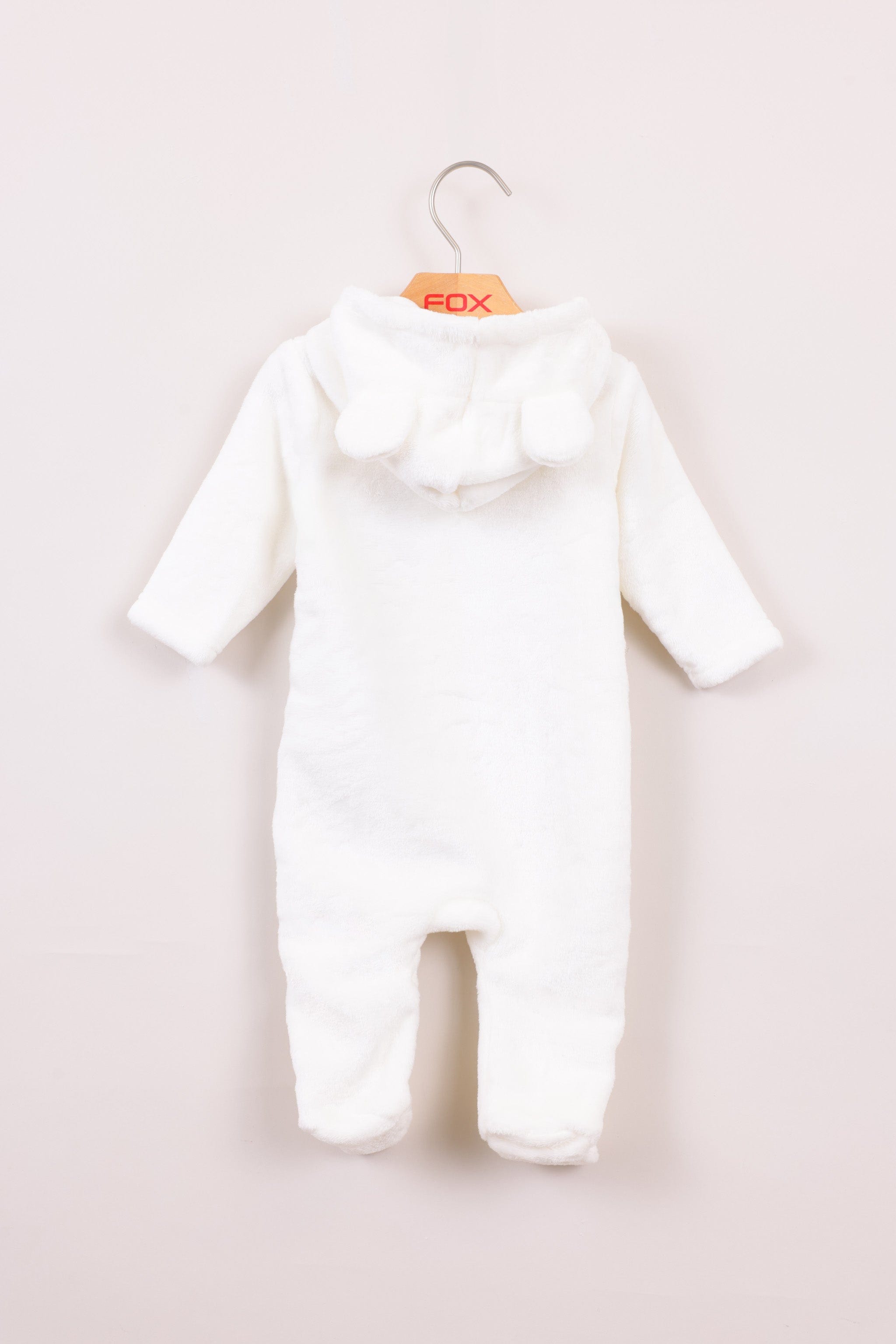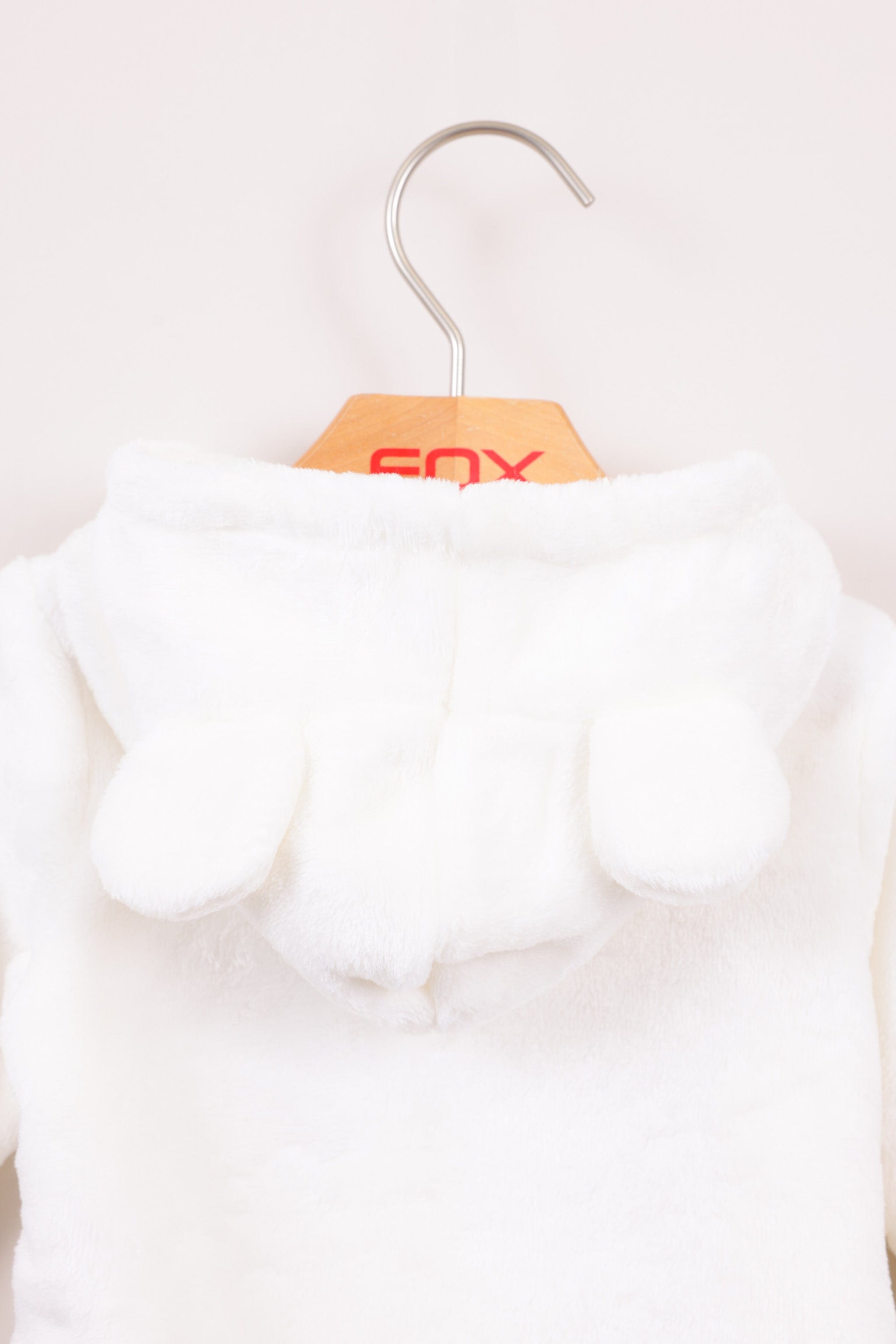 אוברול פליז לתינוק עם כובע וקפוצ’ון מעוטר באוזניים מתוקות.