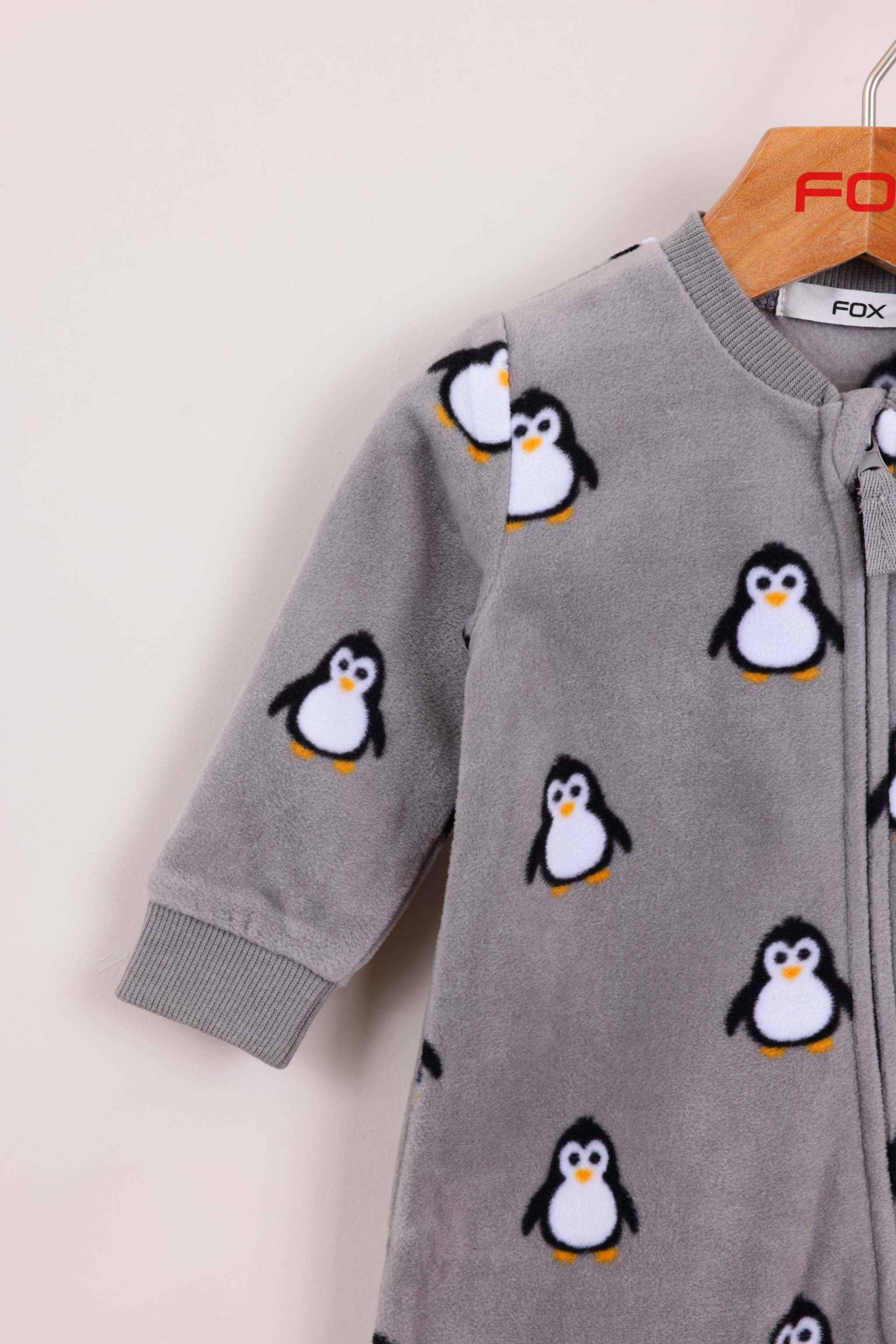 אוברול פליז לתינוק בהדפס פינגווינים מתוקים, עשוי מבד רך ומחמם במיוחד.