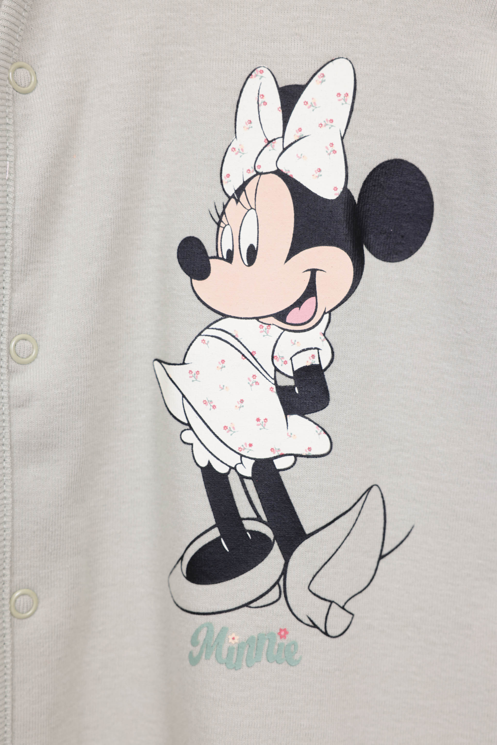 אוברול 100% כותנה עם רגליות, ממותג מיני מאוס דיסני עם כפתורים לאורך הגוף והדפס קדמי.