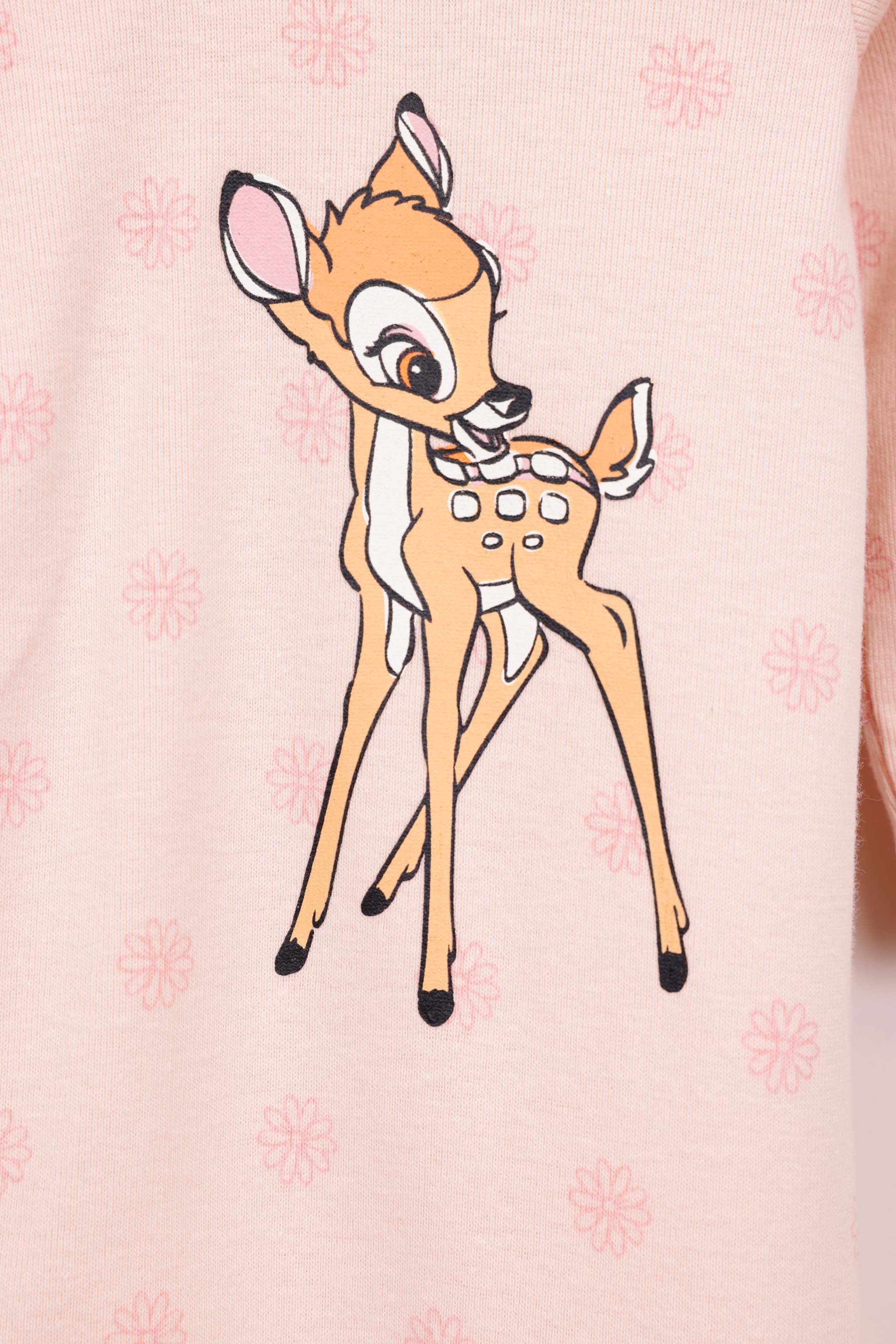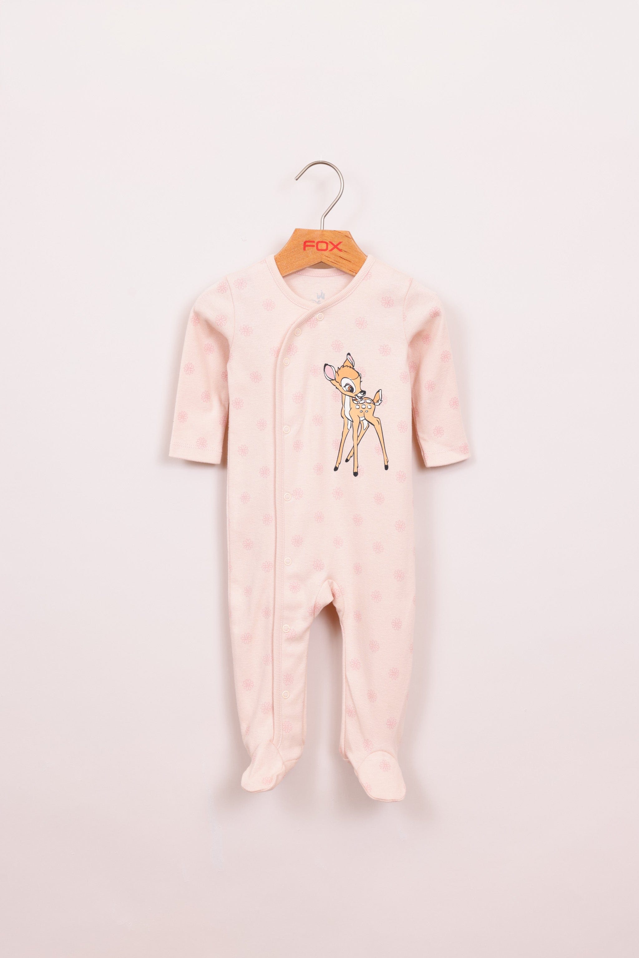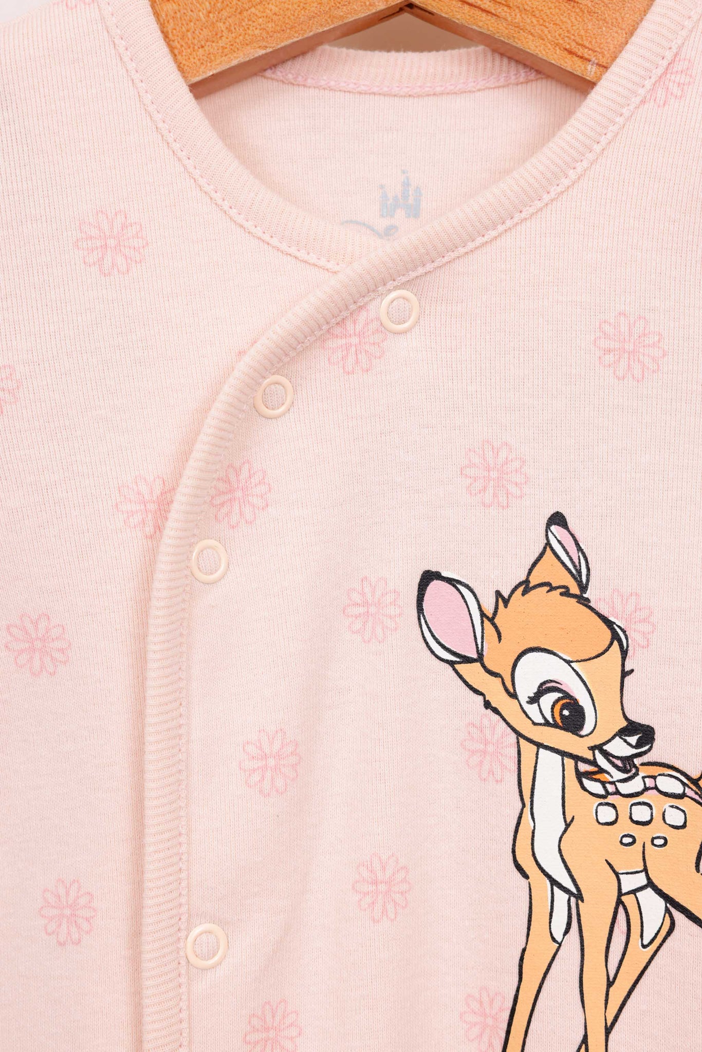 אוברול 100% כותנה עם רגליות, ממותג במבי דיסני עם כפתורים לאורך הגוף והדפסים.