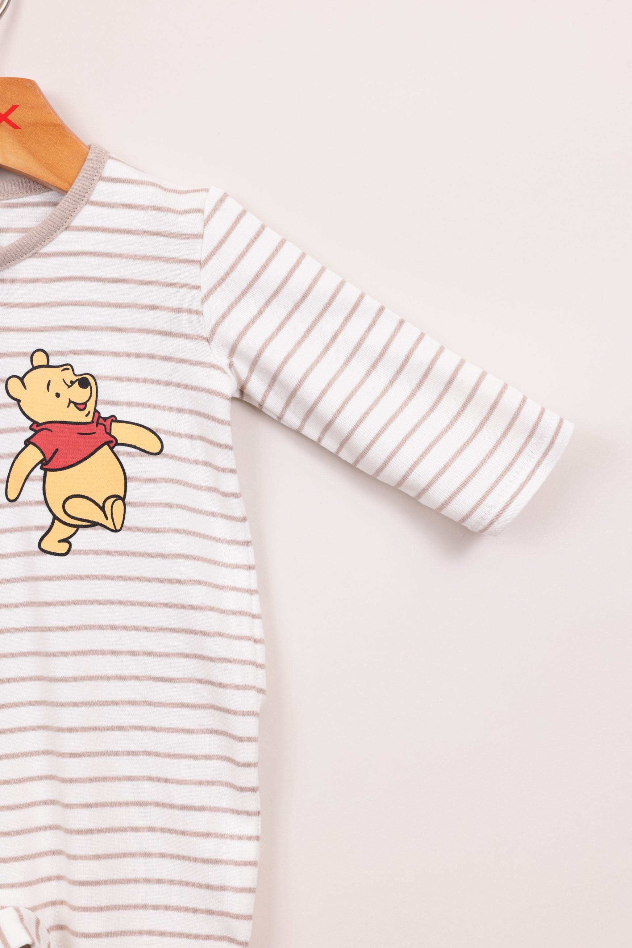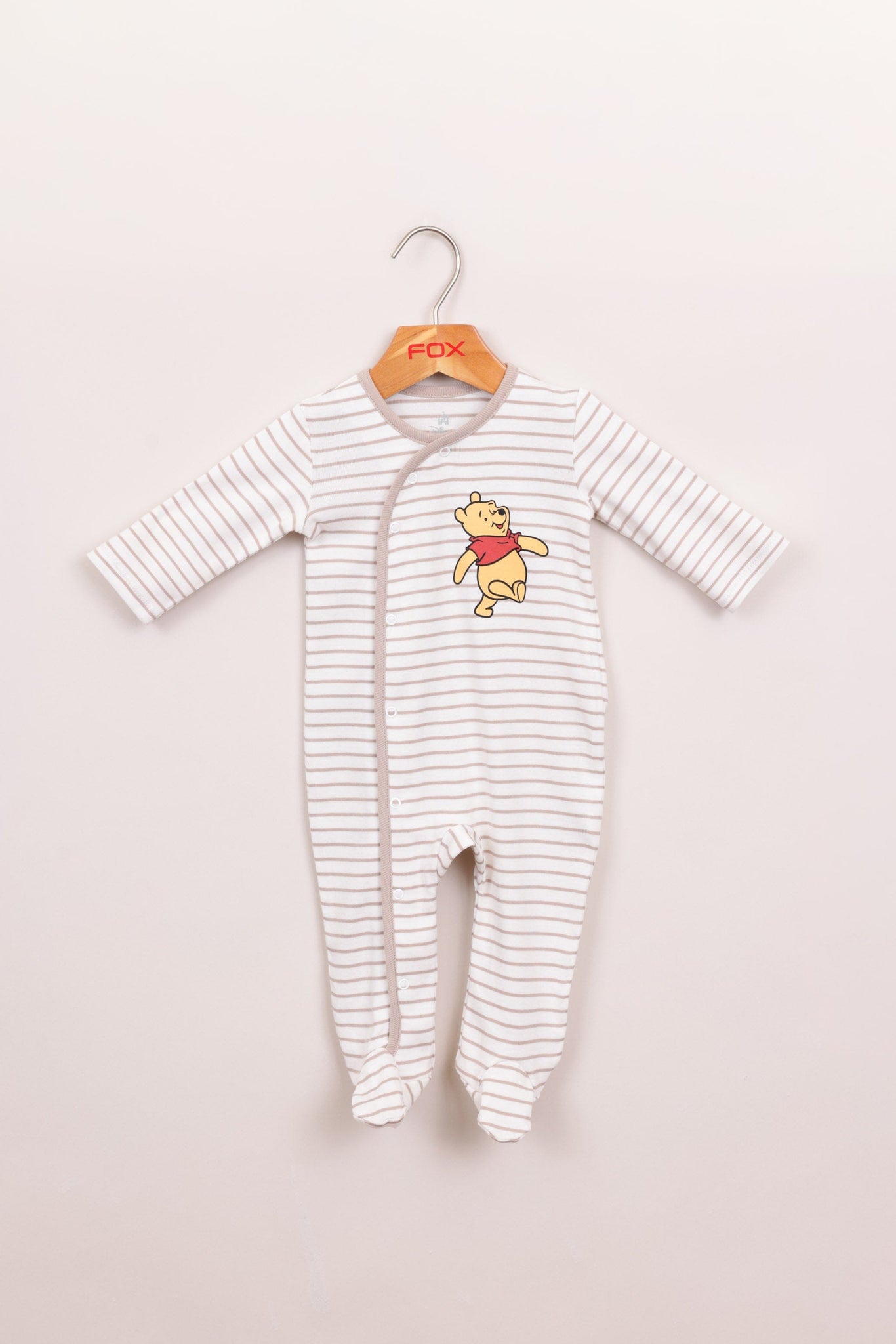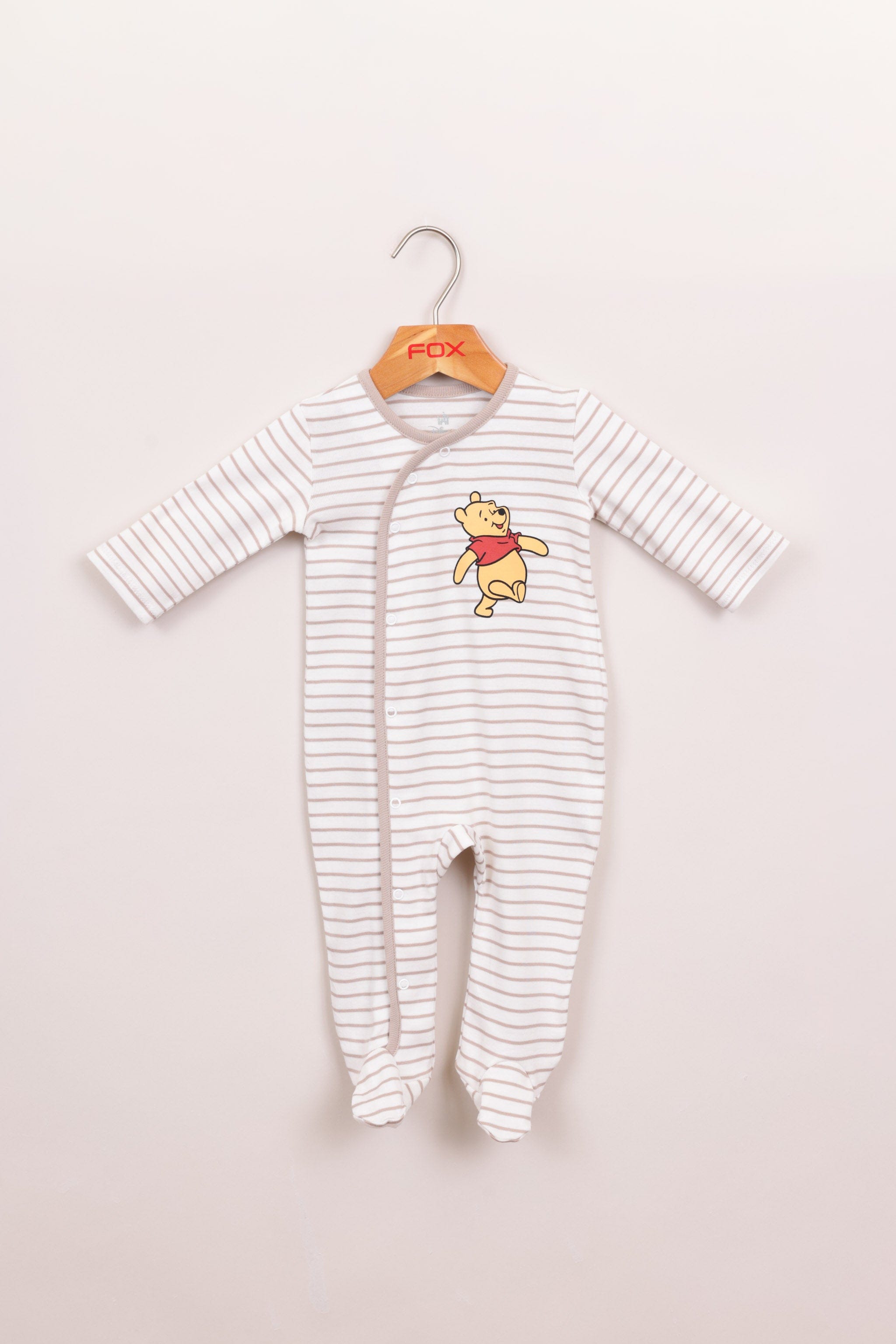 אוברול פסים 100% כותנה עם רגליות, ממותג פו הדב דיסני עם כפתורים לאורך הגוף והדפסים.