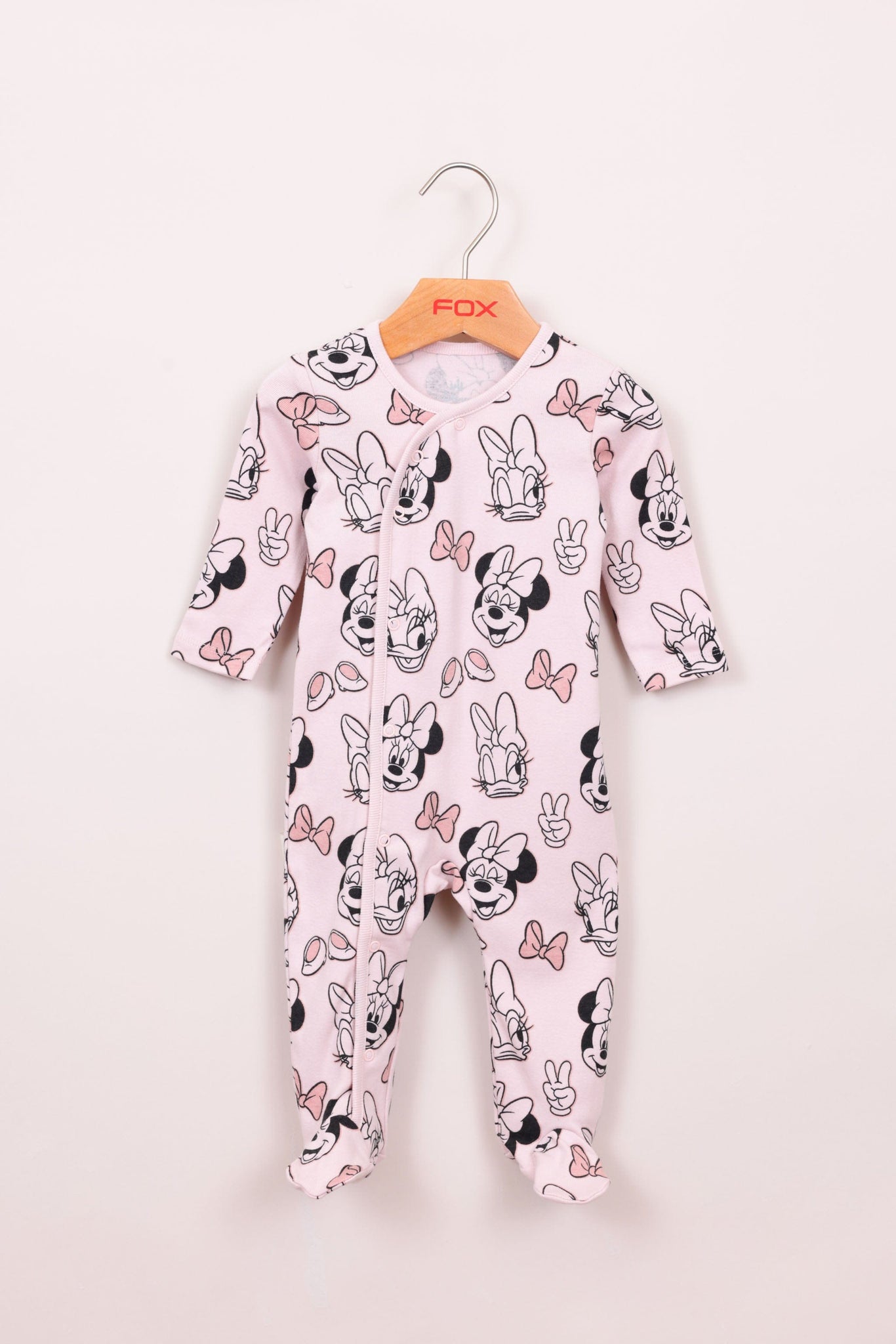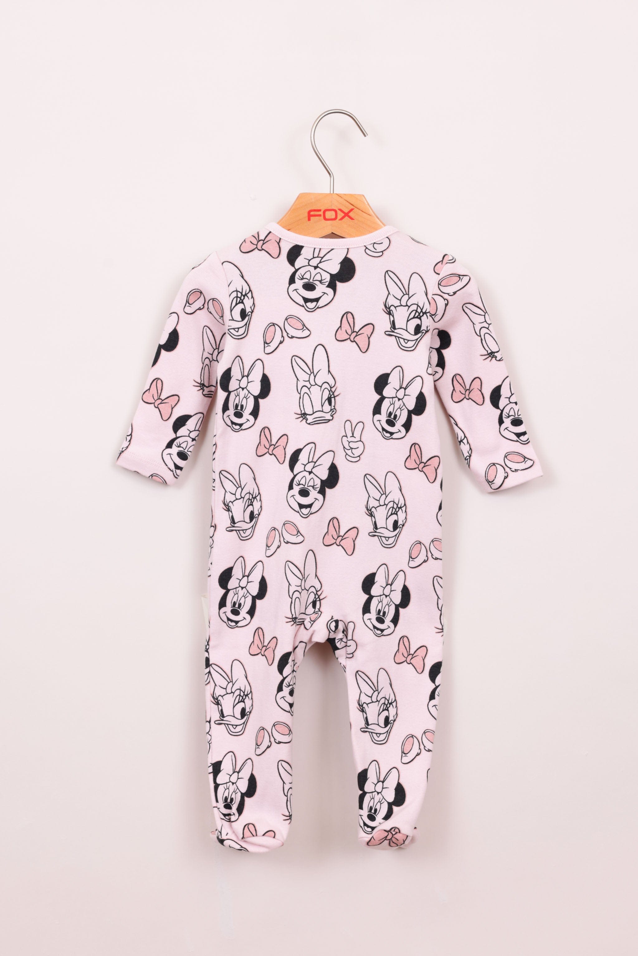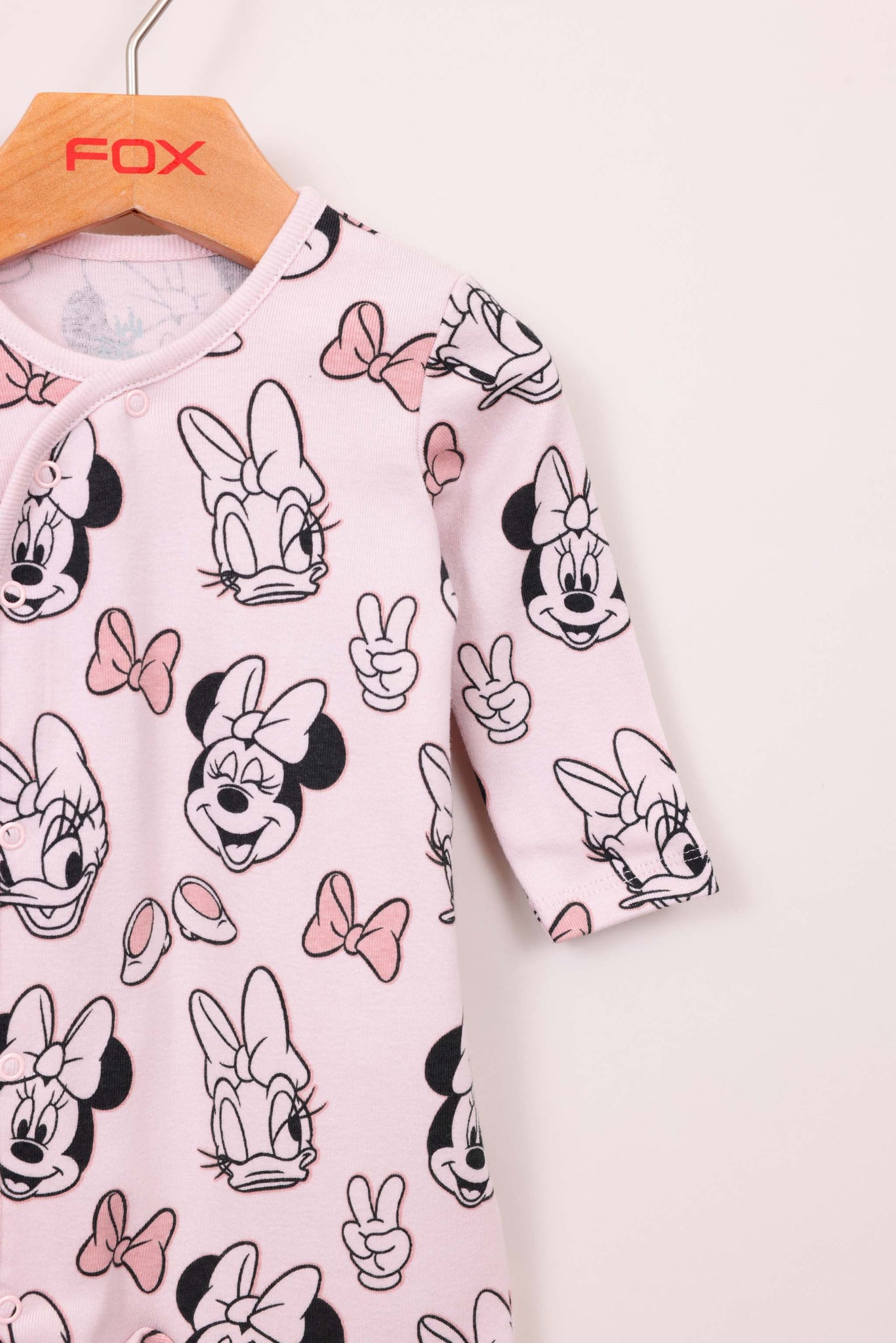 אוברול ריב 100% כותנה עם רגליות, ממותג מיני מאוס דיסני עם כפתורים לאורך הגוף והדפסים.