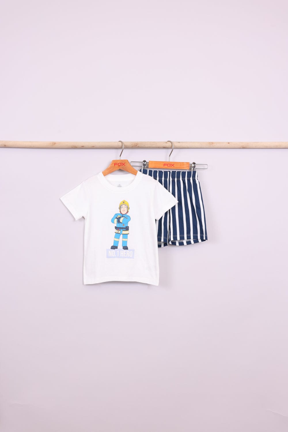פיג'מה קצרה ממותגת סמי הכבאי עם הדפסים