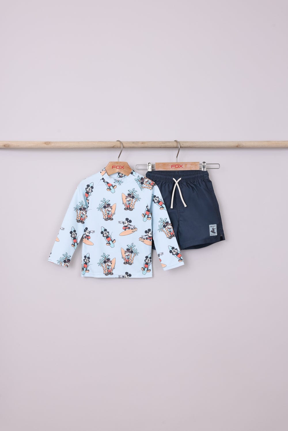 בגד ים שני חלקים מיקי מאוס דיסני , שורט עם גומי במותן ושרוך וחולצה ארוכה עם הדפסים