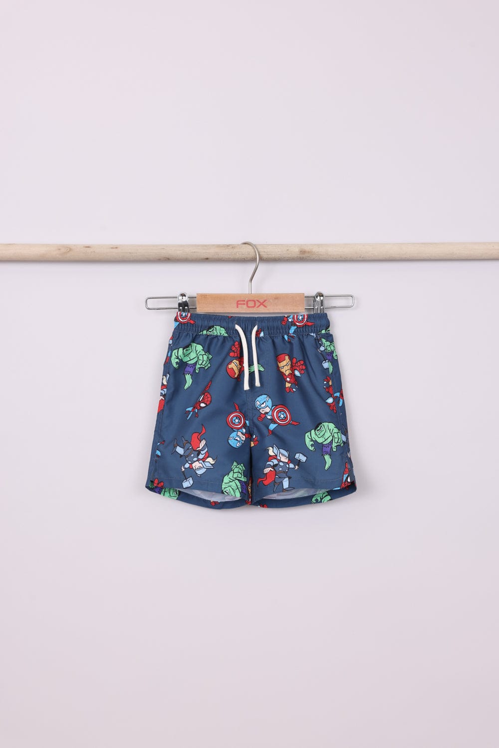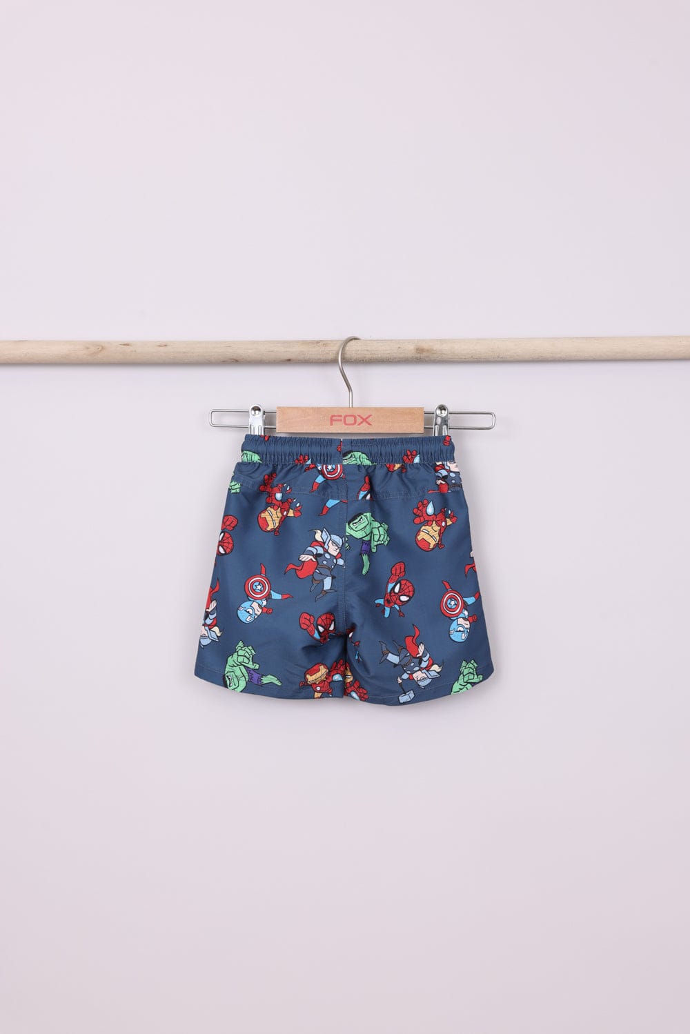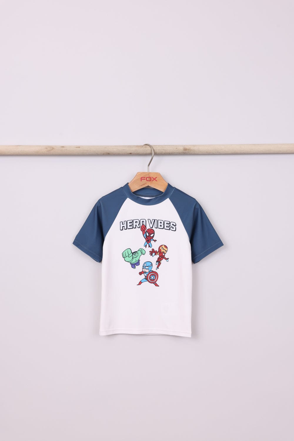 בגד ים שני חלקים מארוול ,שורט עם הדפסים וחולצה קצרה בשילוב צבעים עם הדפס קדמי