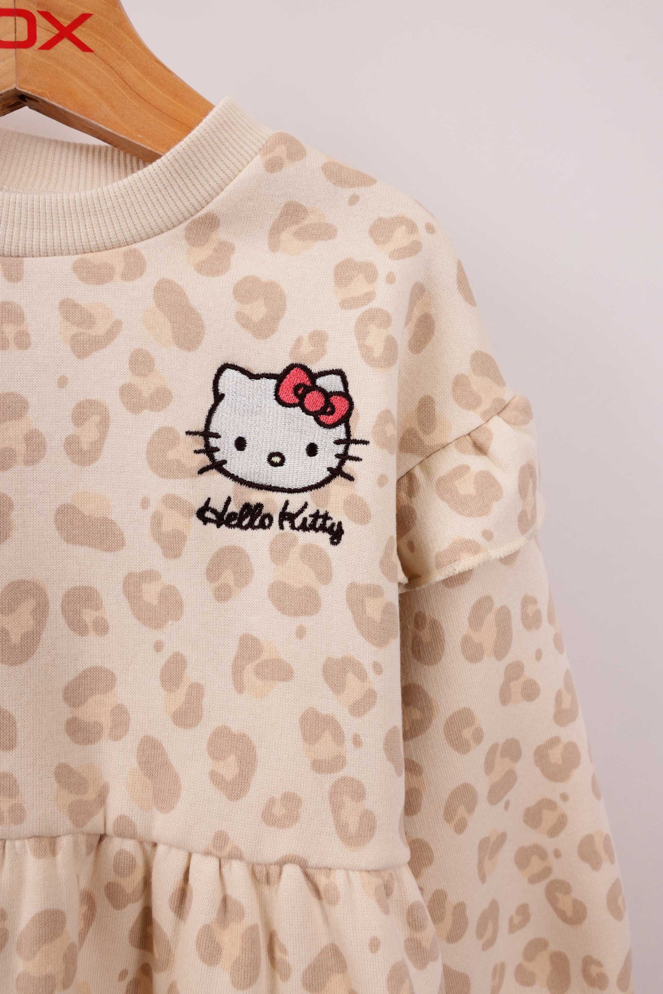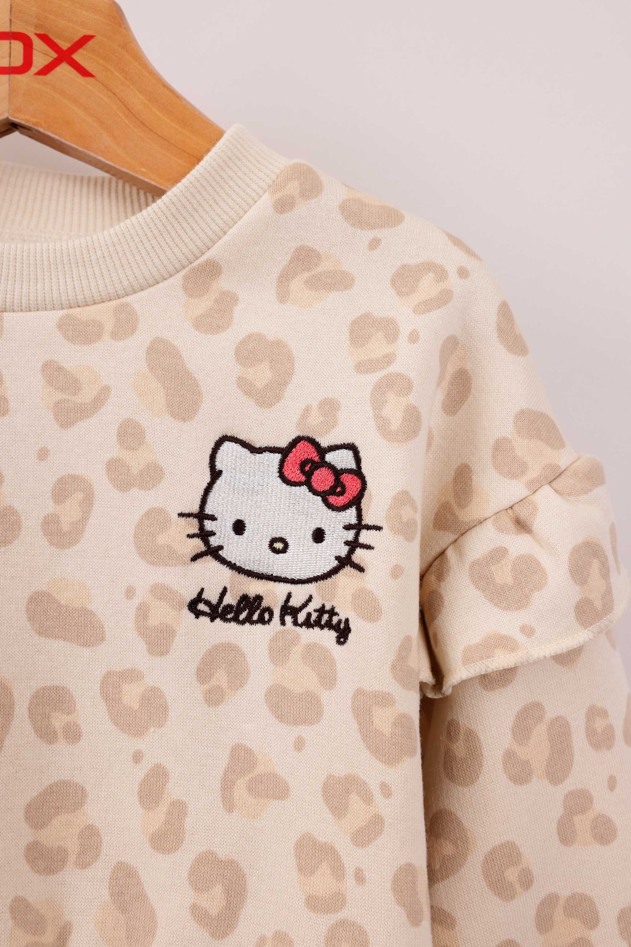 שמלה פוטר ממותגת הלו קיטי עם הדפסים ומלמלות בידיים