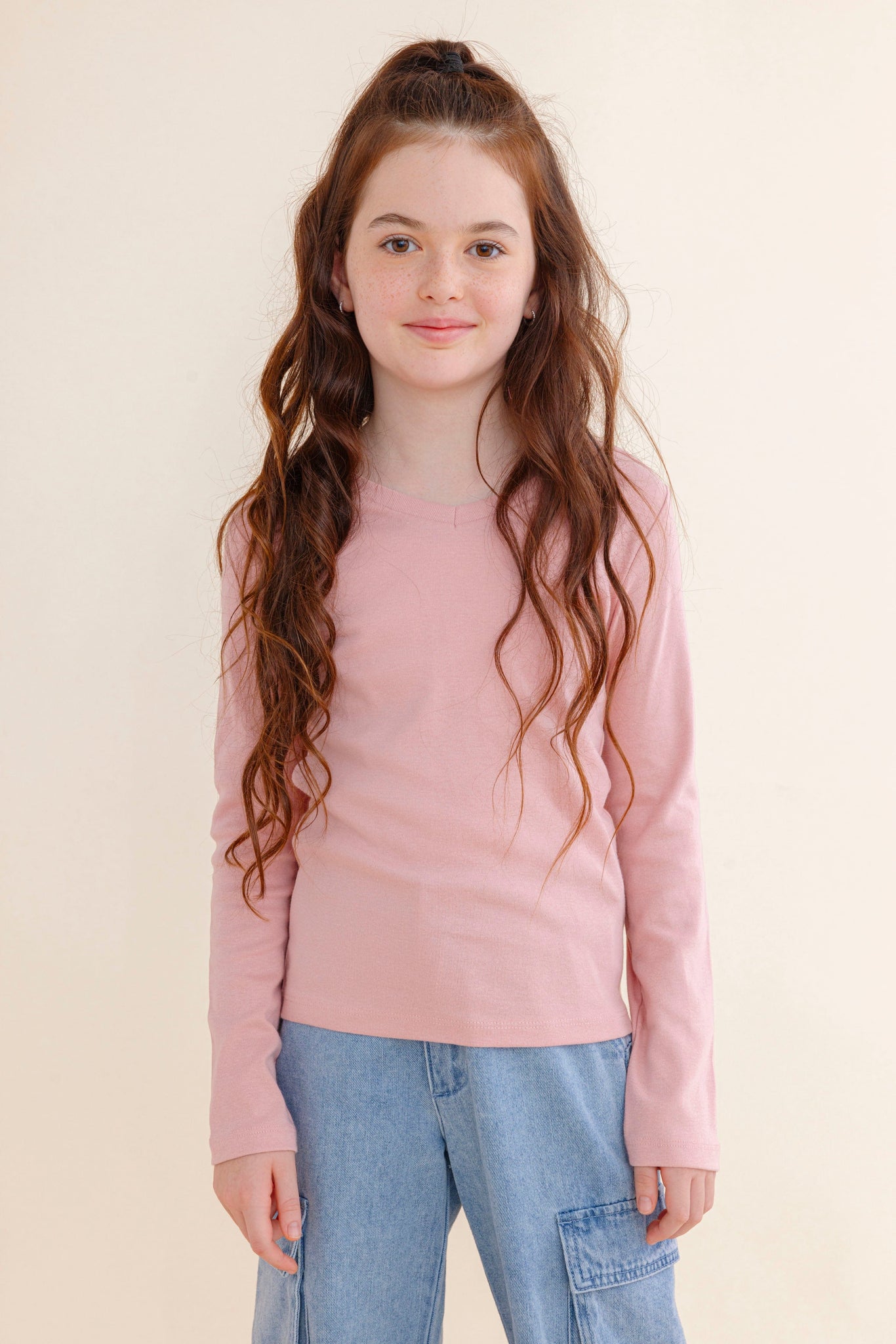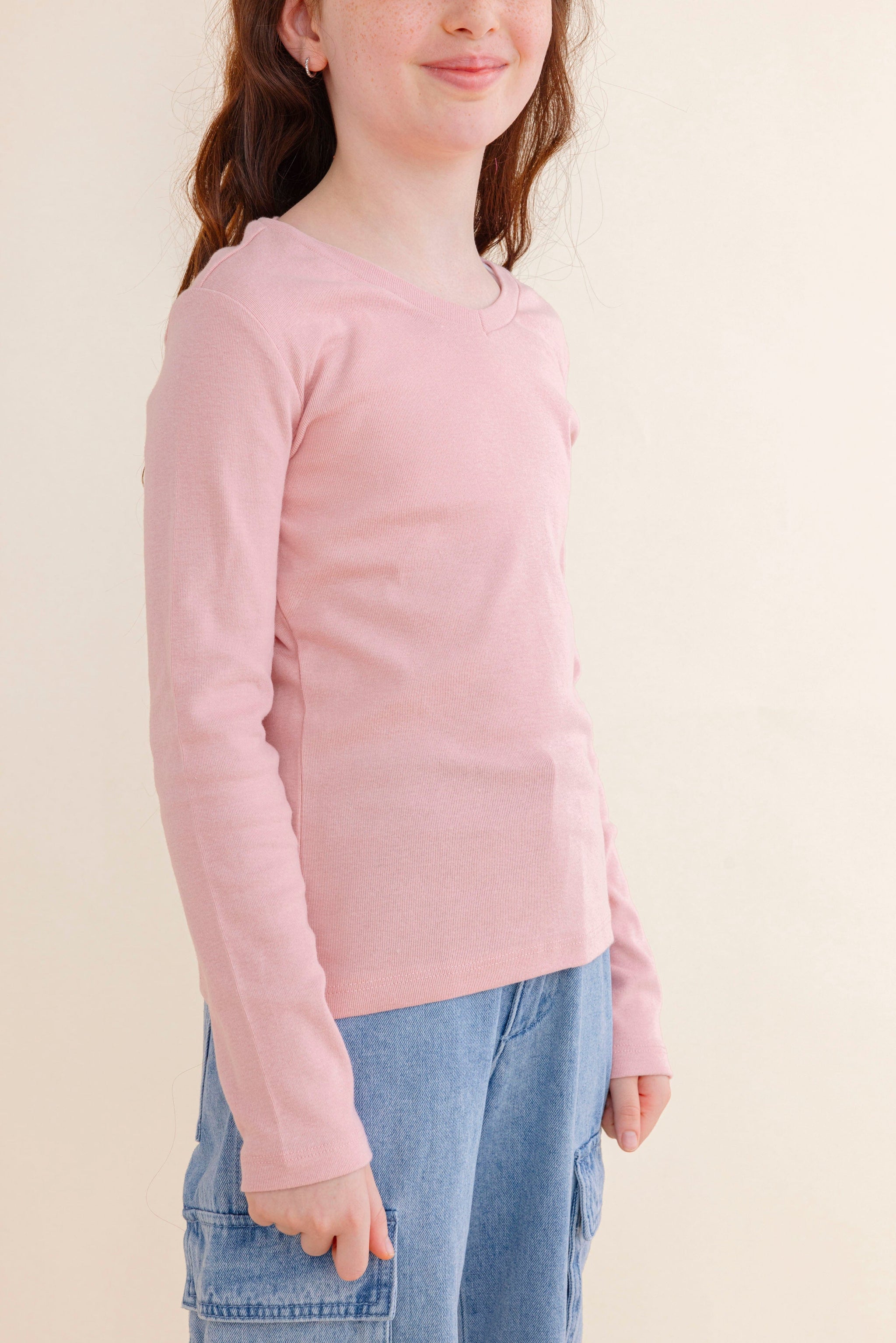 חולצה 100% כותנה צווארון V, שרוולים ארוכים