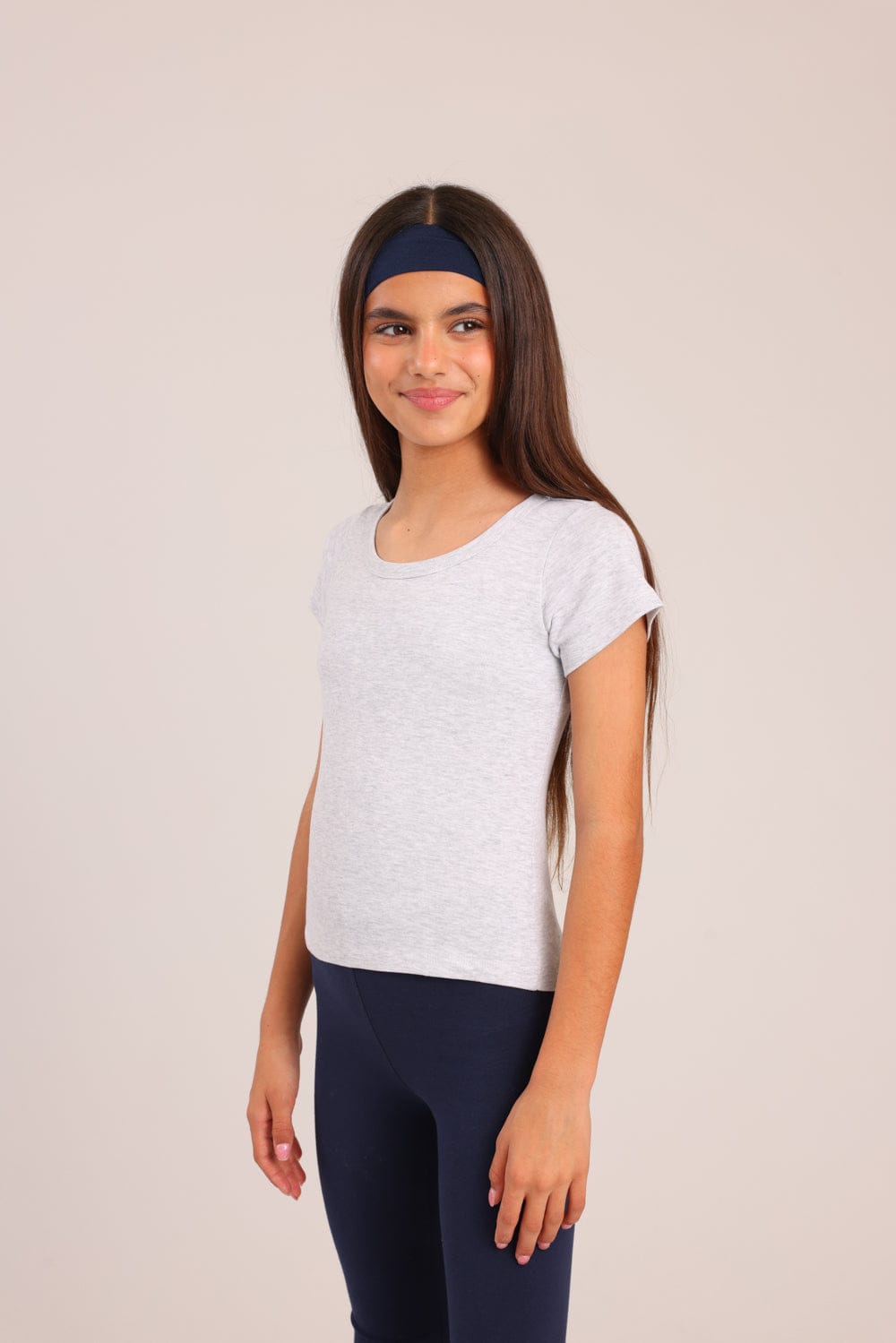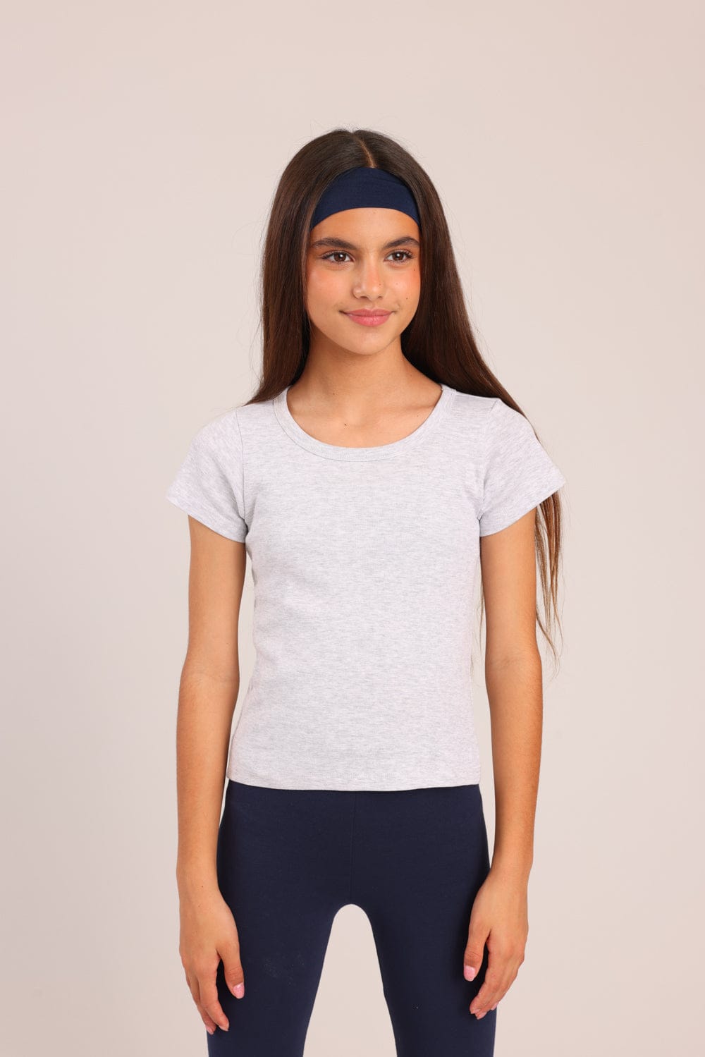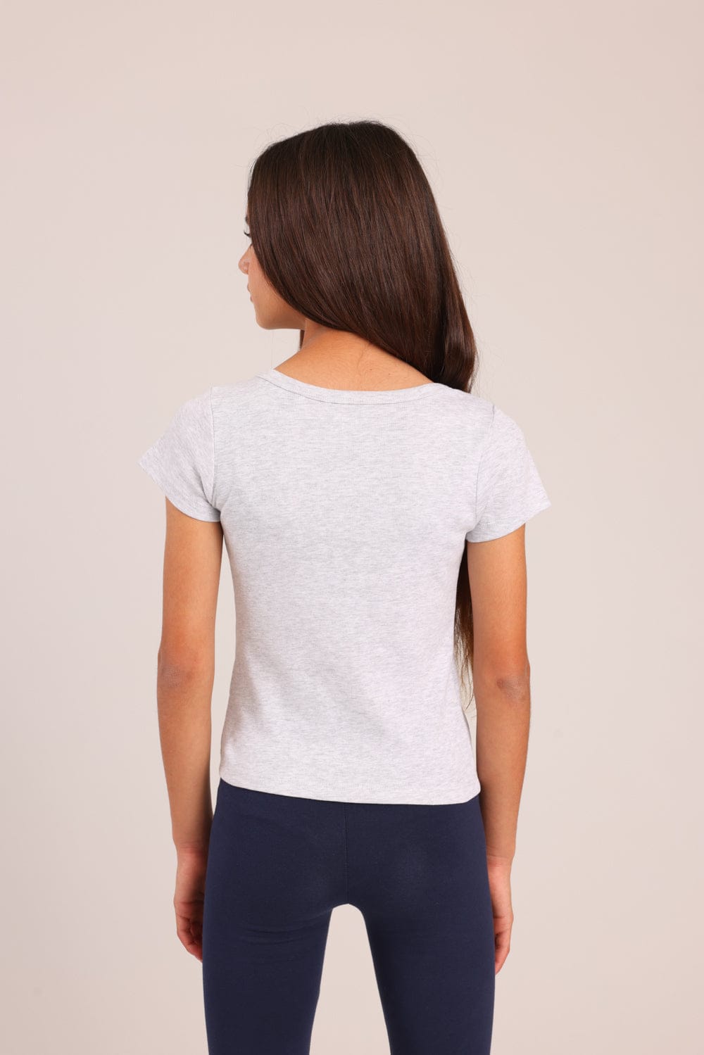 טישרט בייסיק צווארון עגול. גזרה צמודה, שרוולים קצרים, מבד ריב