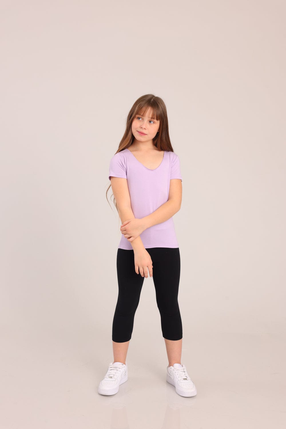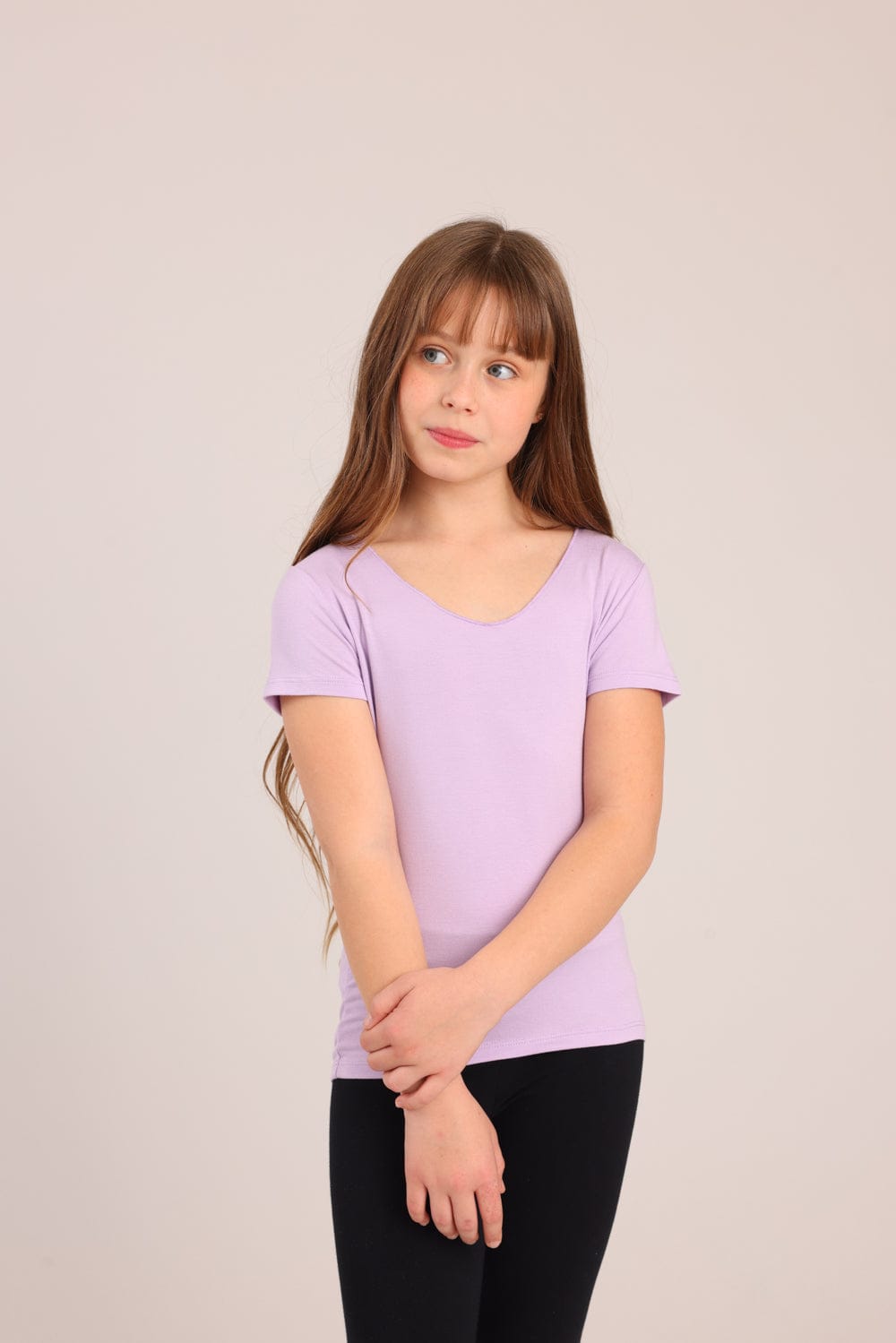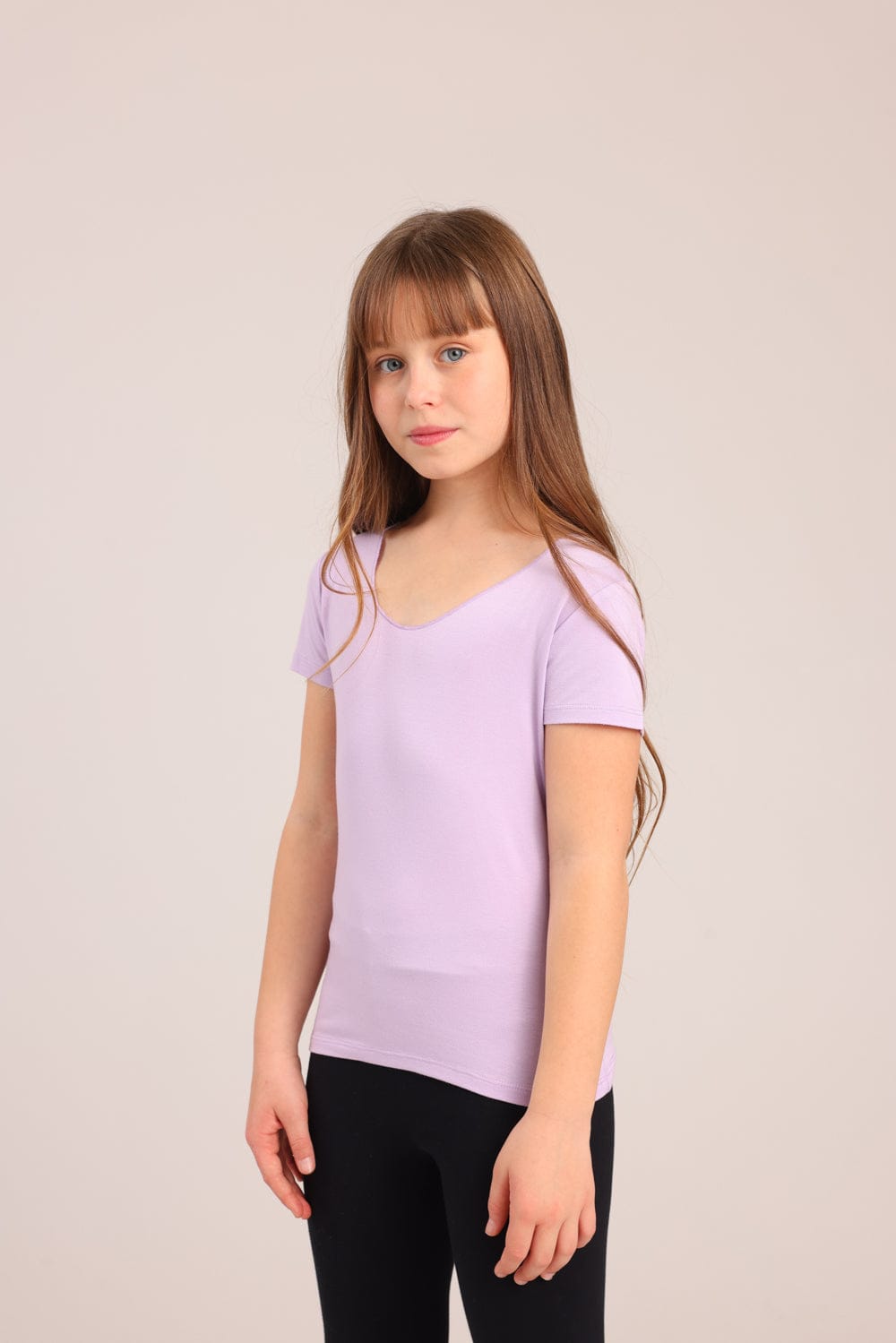 טישרט בייסיק צווארון V עם סיומת גזורה. שרוולים קצרים מבד ויסקוזה, בגזרה צמודה