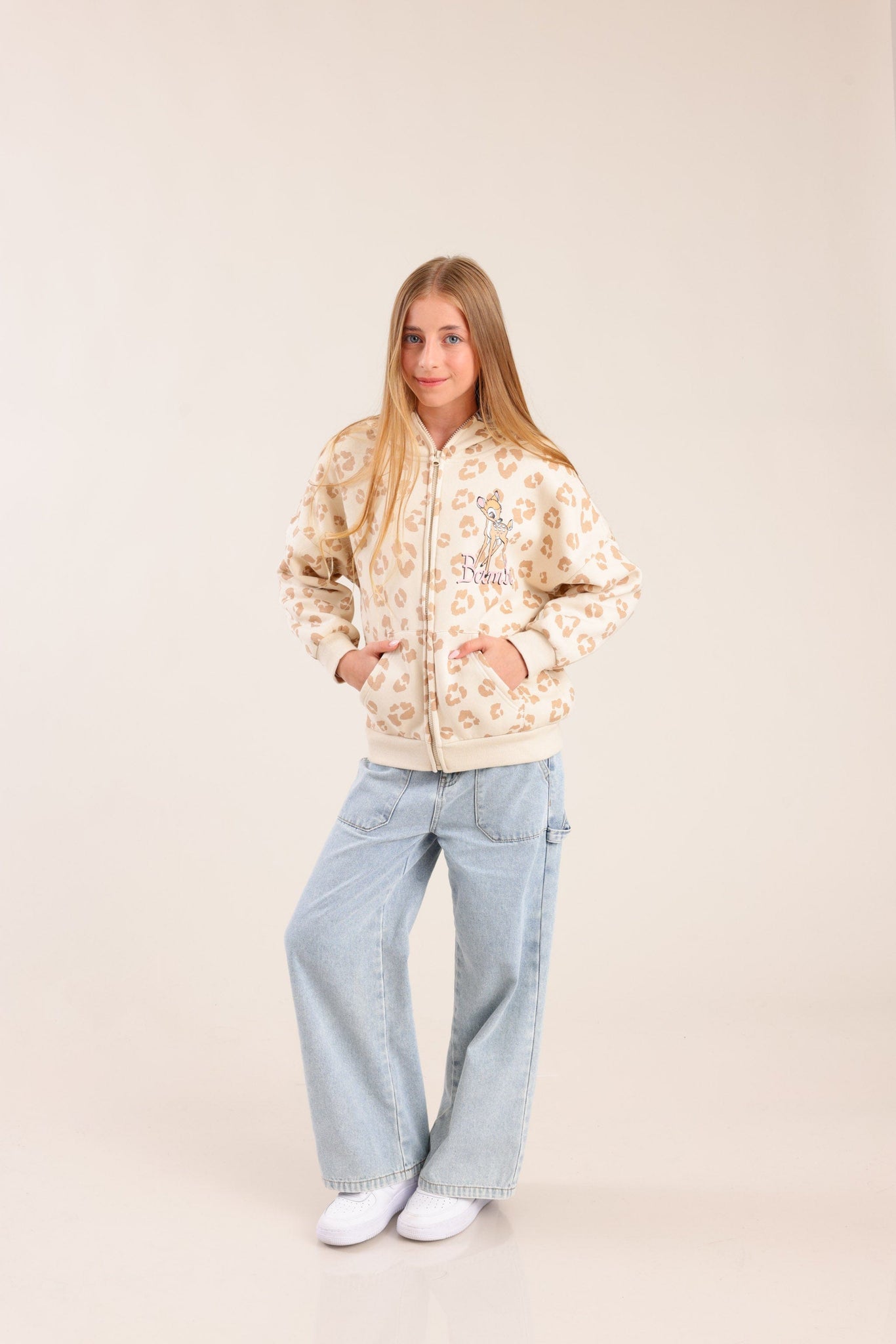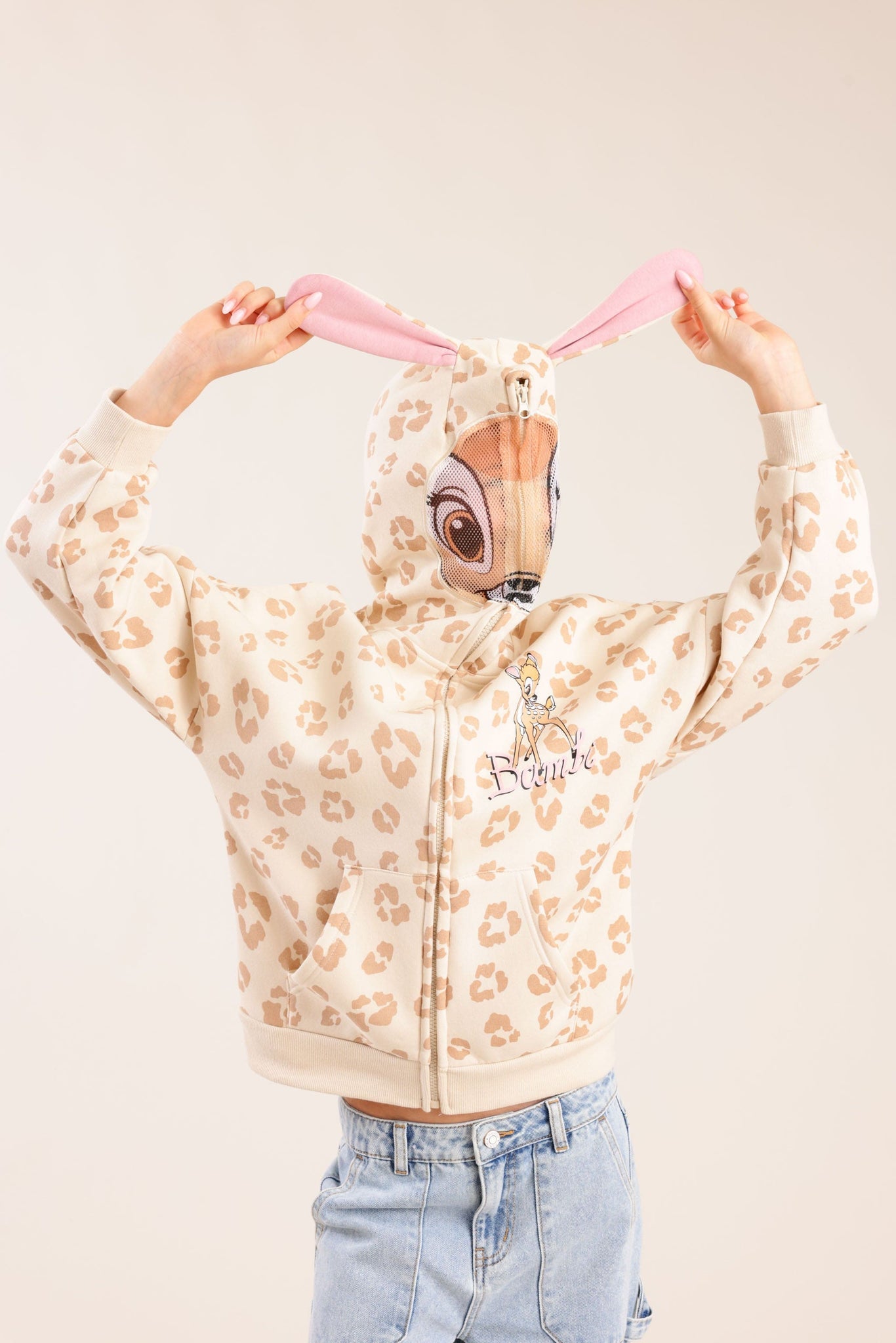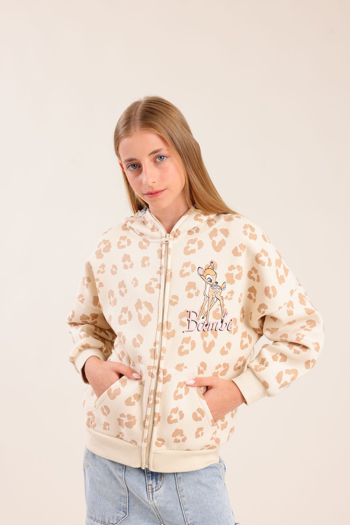קפוצ'ון פוטר ממותג במבי בצבע שמנת