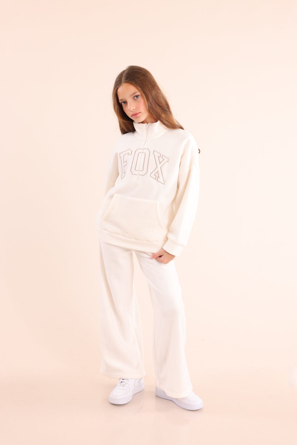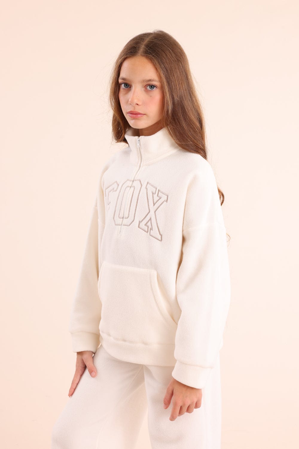 פוטר פליז חצי רוכסן לילדות עם הדפס לוגו פוקס