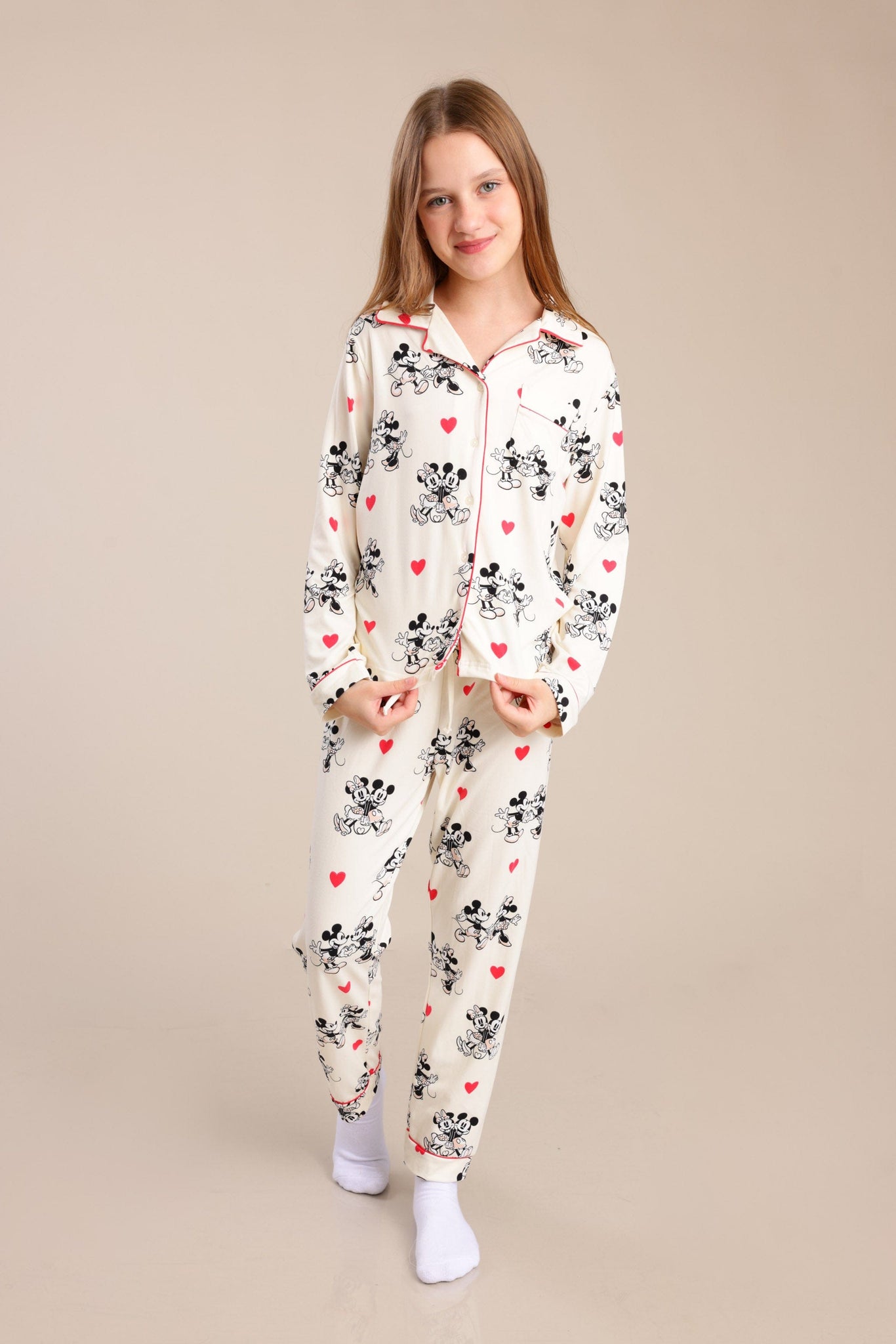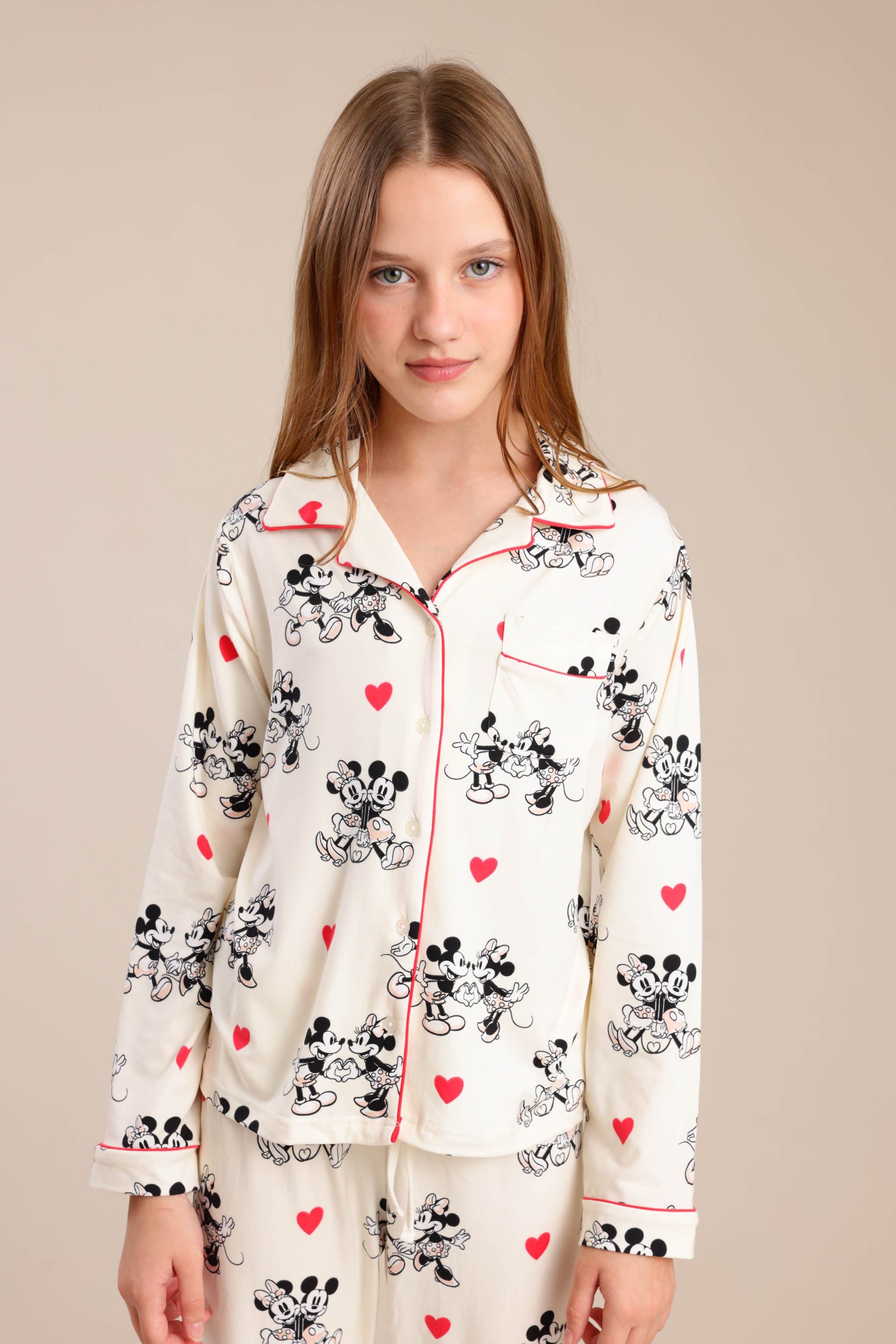 פיג'מה מכופתרת ממותגת מיני&מיקי מאוס