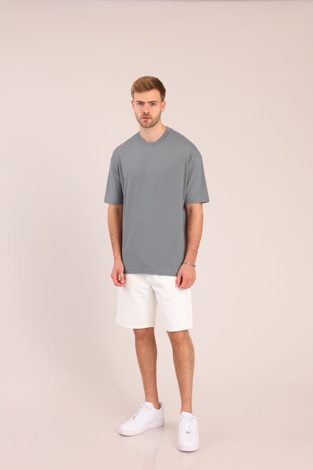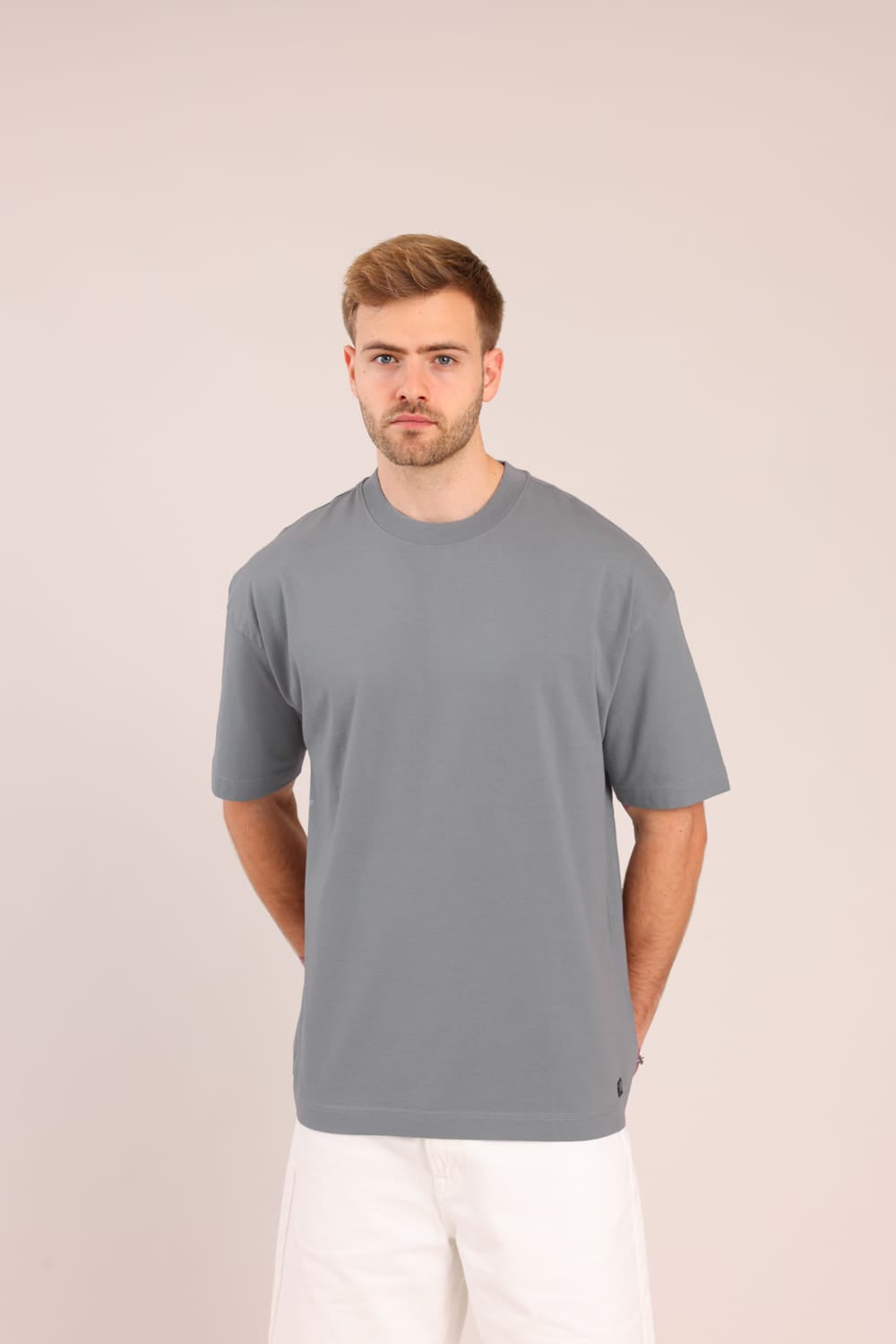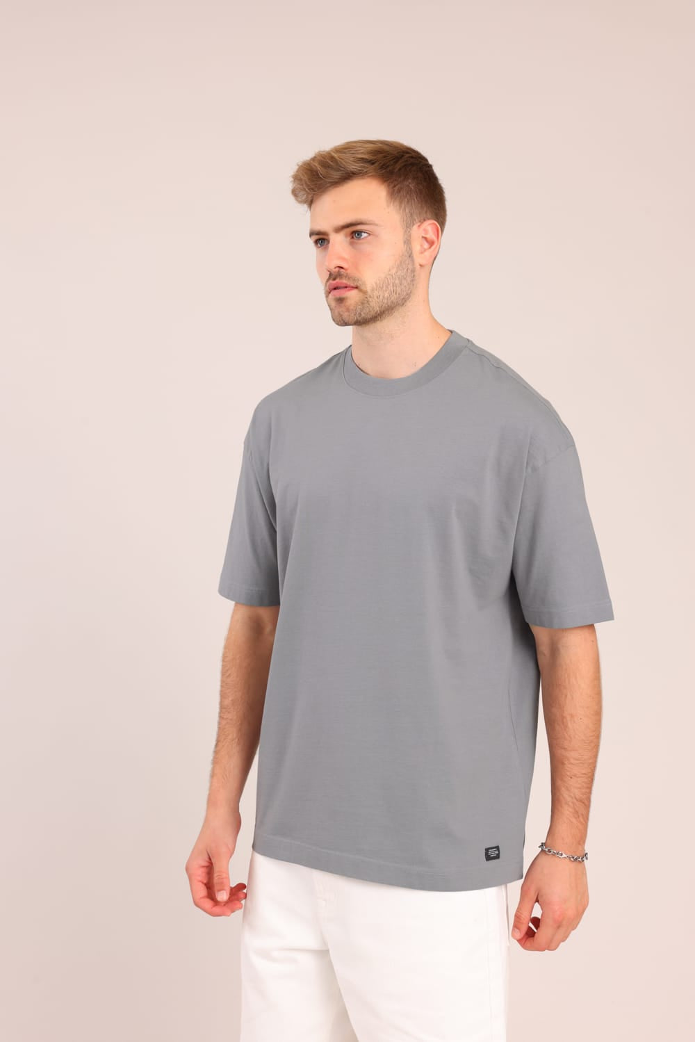 חולצת טריקו קצרה , בגזרת אוברסייז עם צווארון עגול.