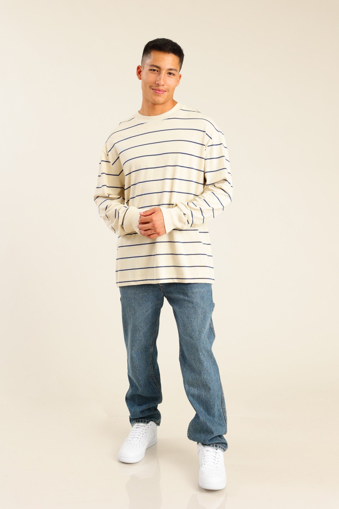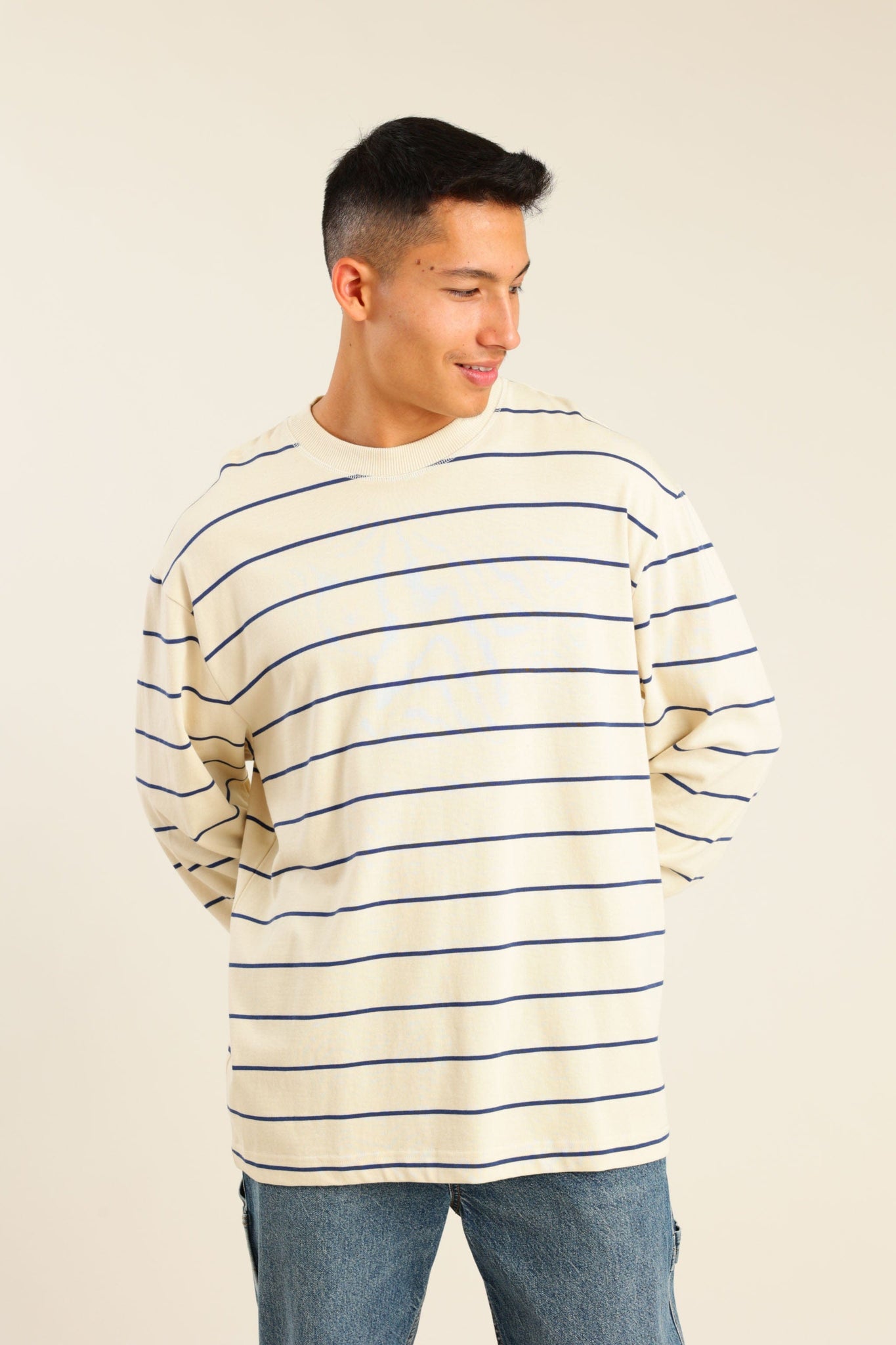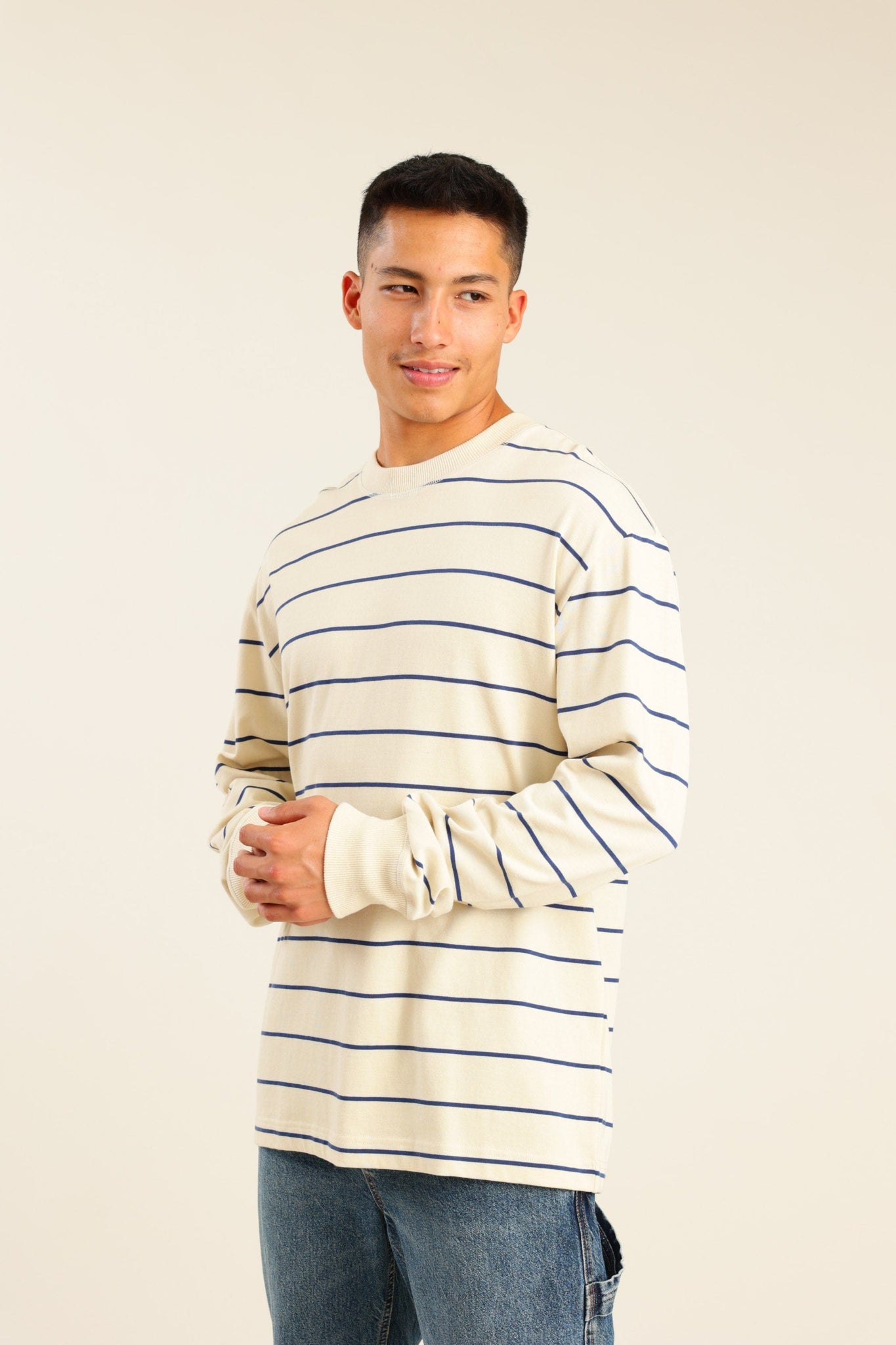 חולצת פסים ארוכה בגזרה רגילה מבד נעים ונמתח