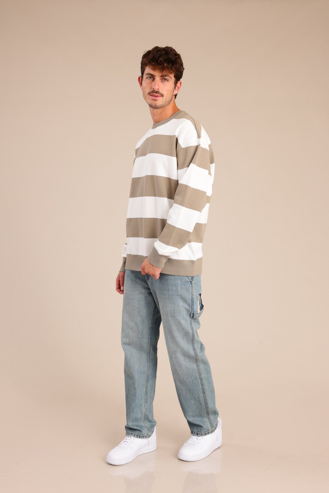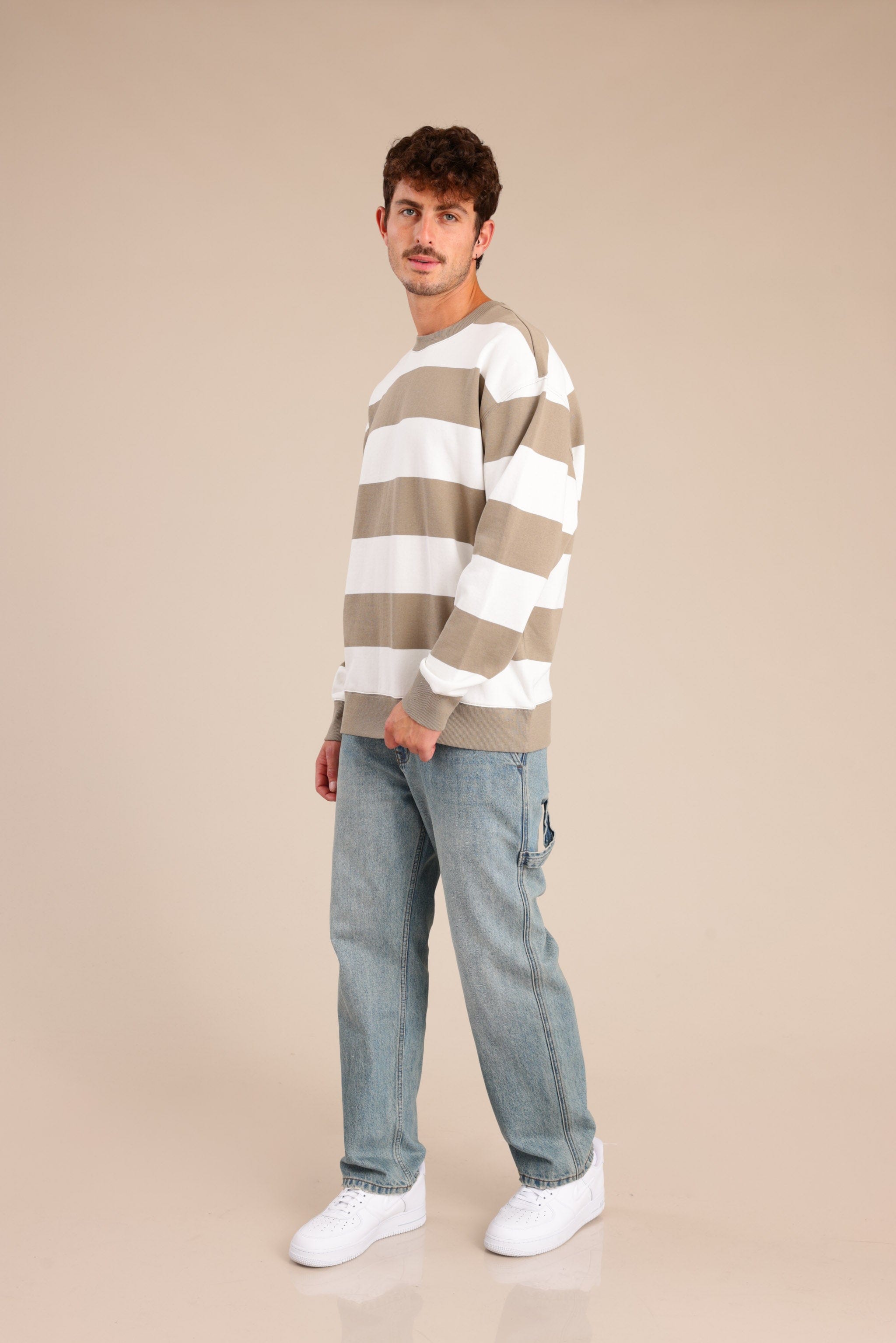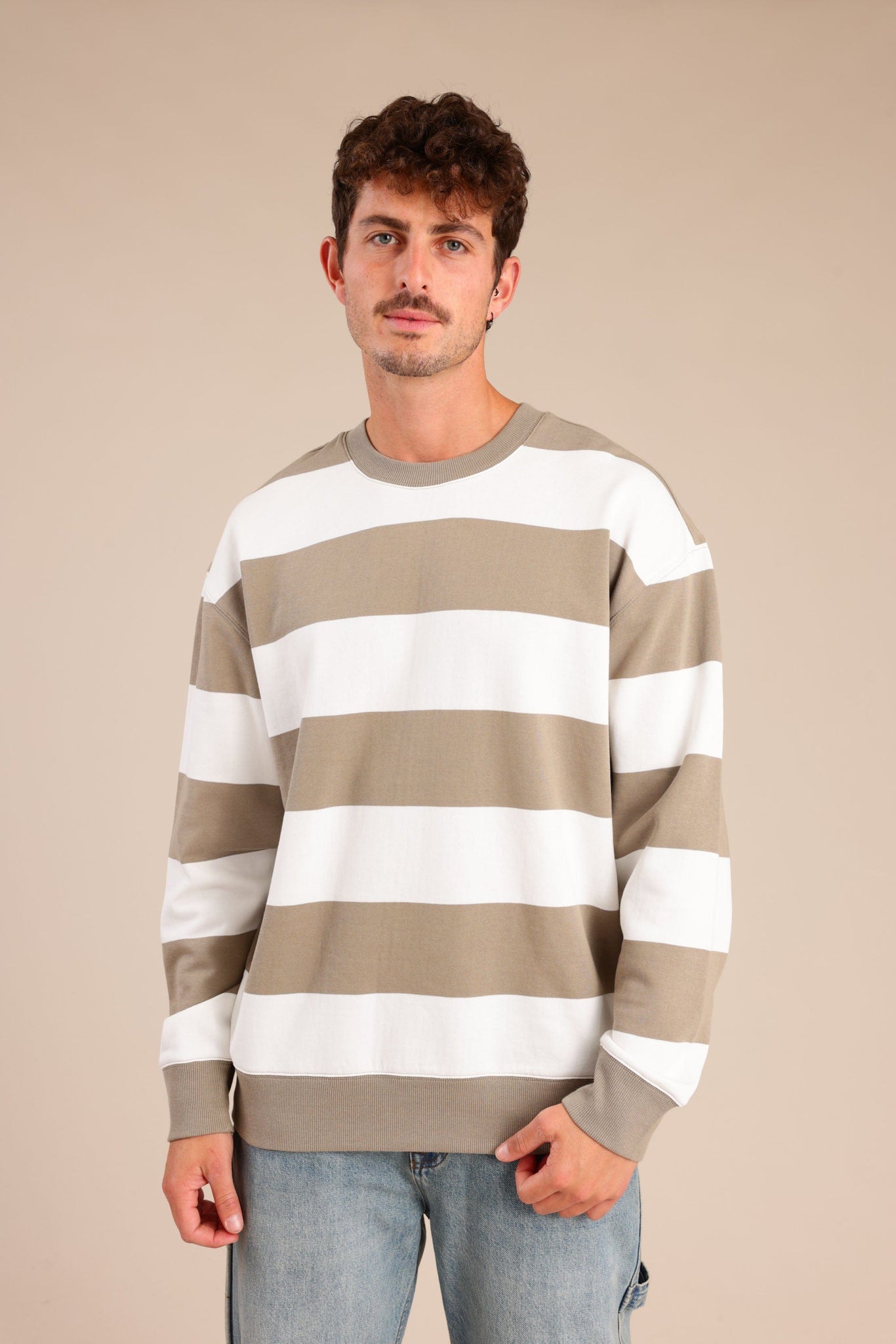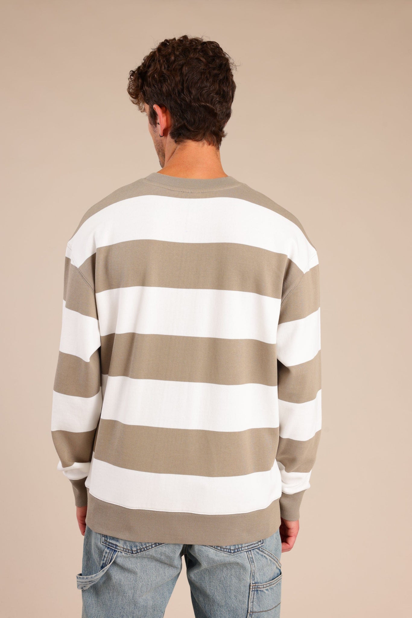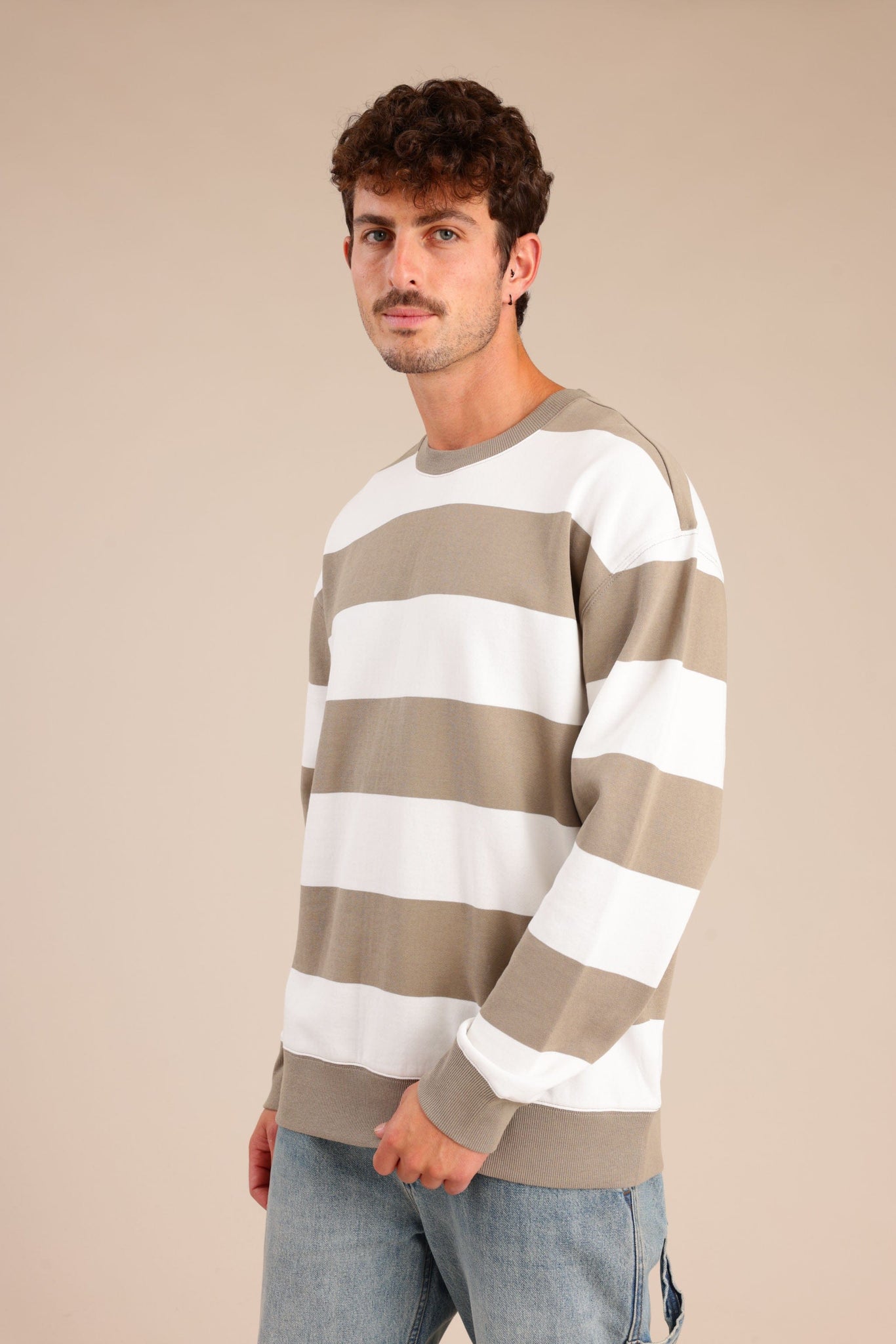 פוטר גברים עם צווארון עגול ופסים לרוחב