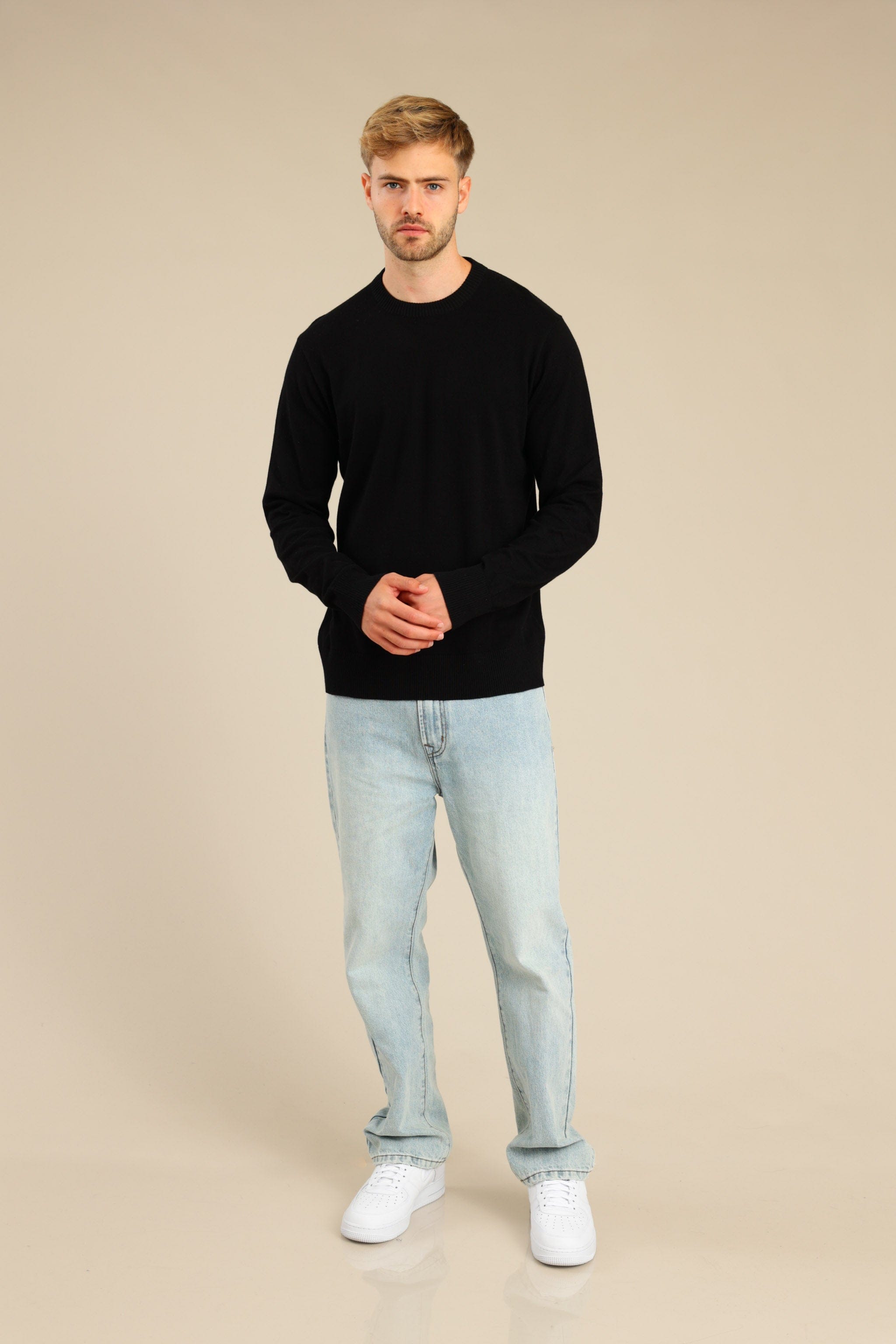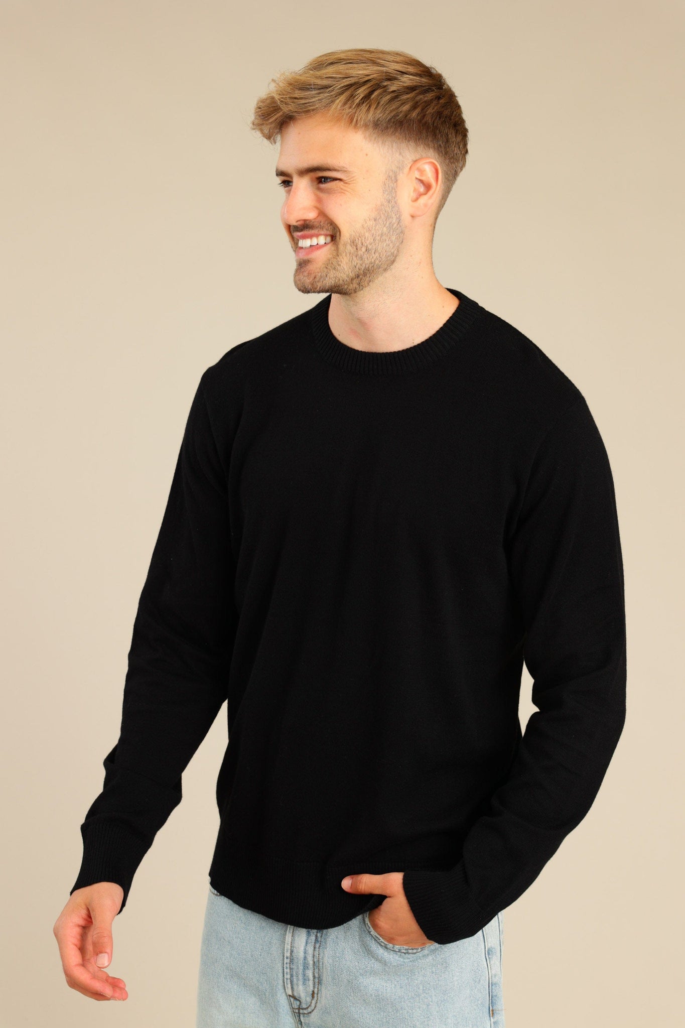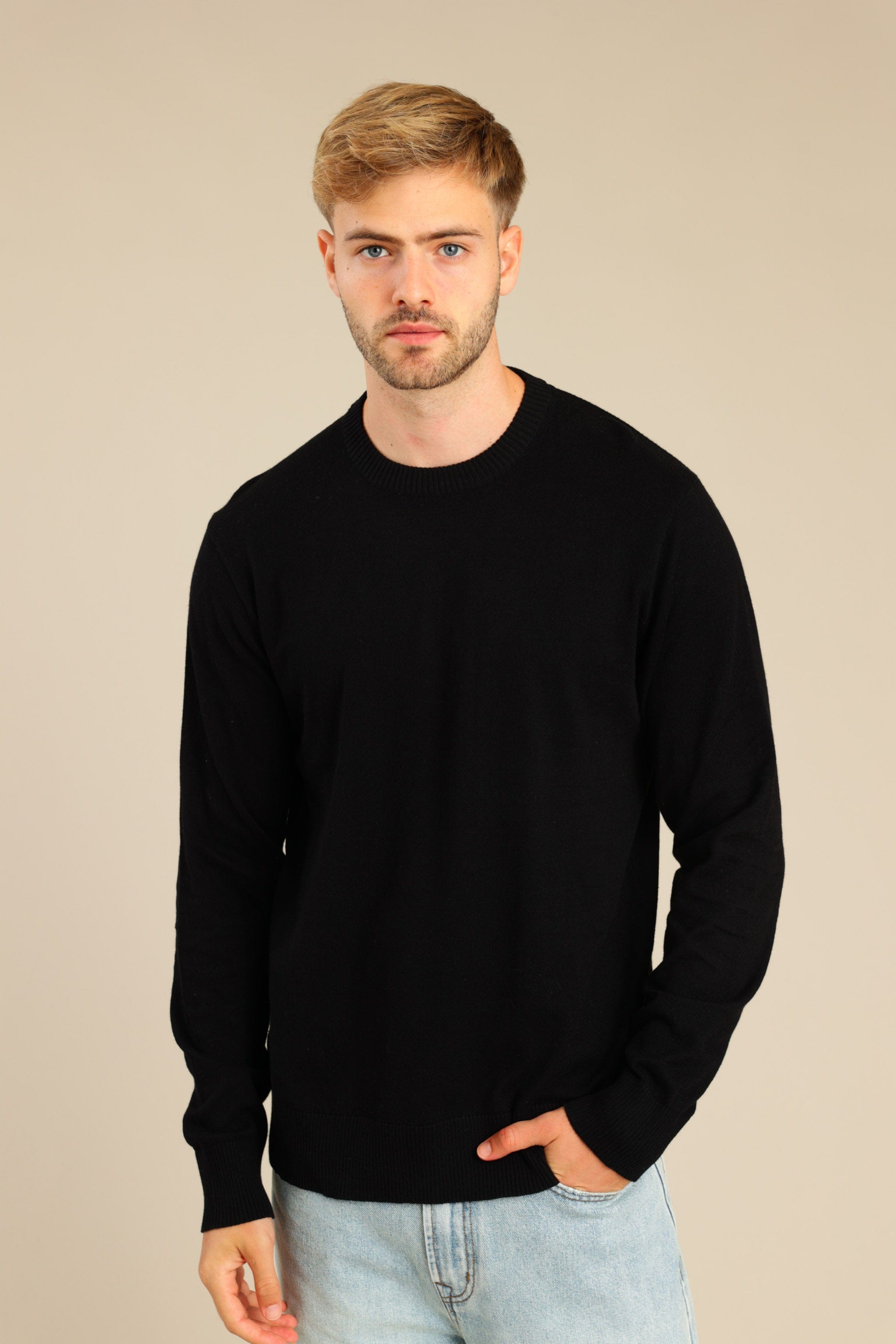 סריג גברים 100% כותנה עם צווארון עגול וגימור בידיים ובחלק התחתון.