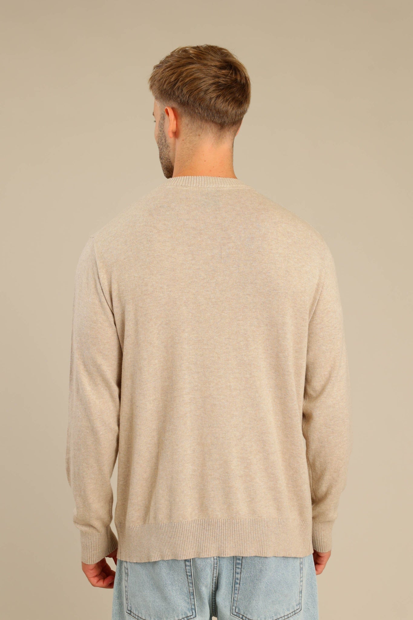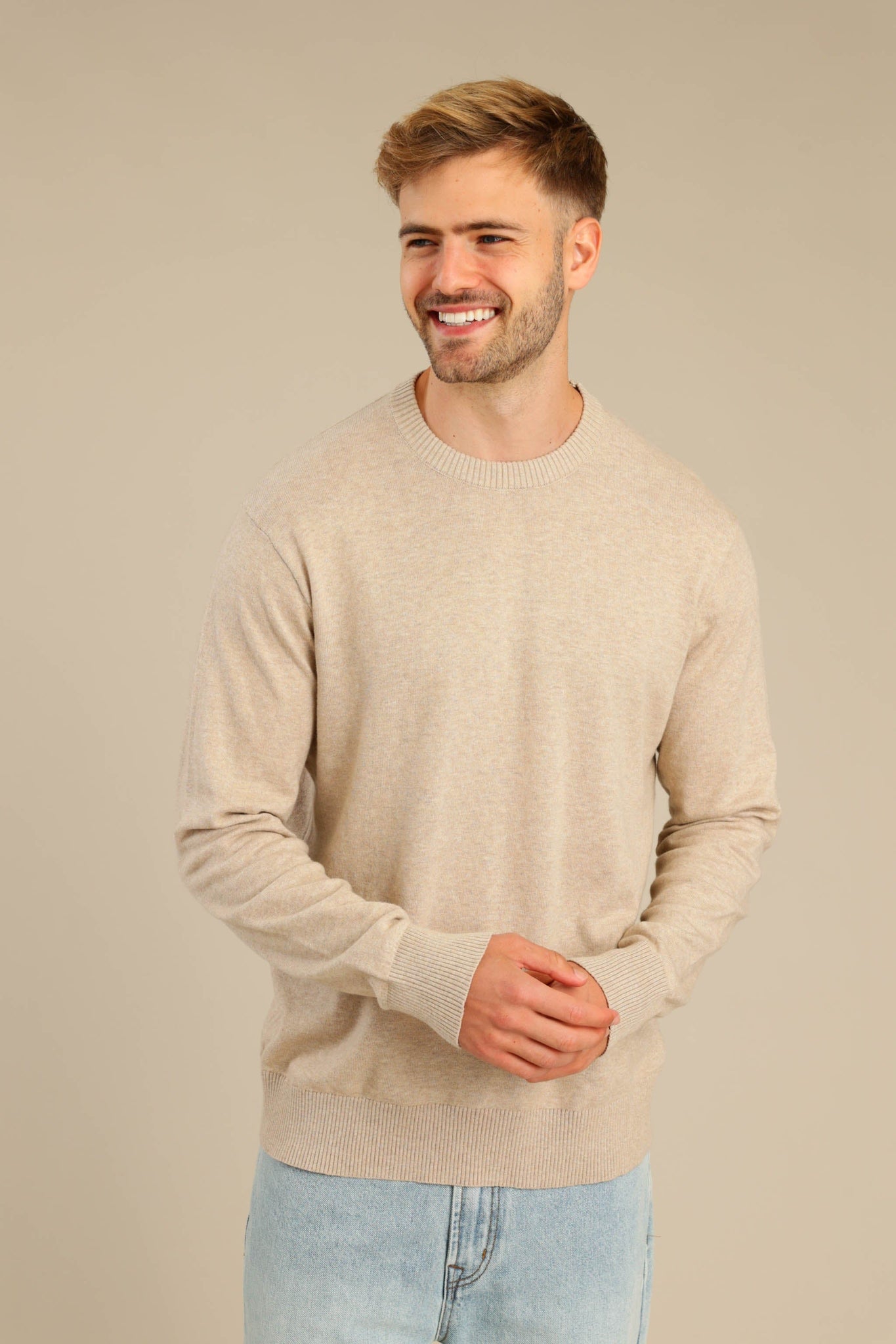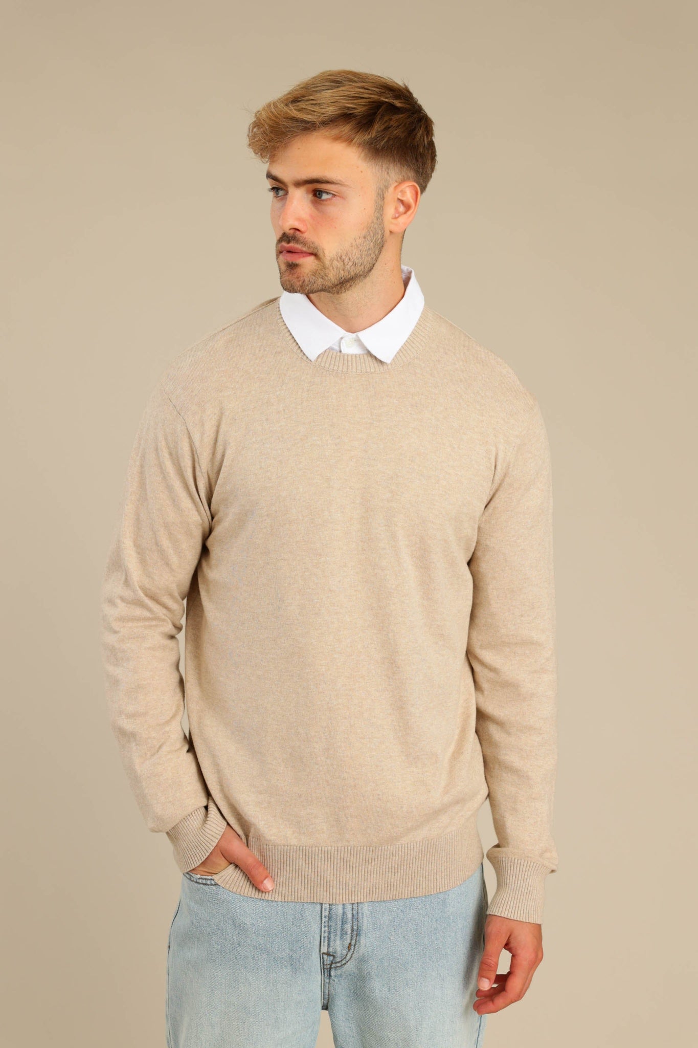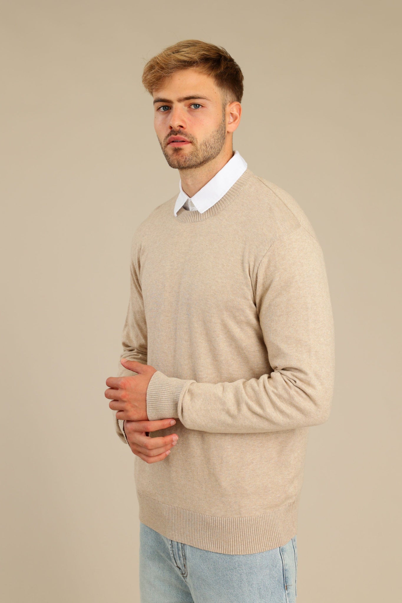 סריג גברים 100% כותנה עם צווארון עגול וגימור בידיים ובחלק התחתון.