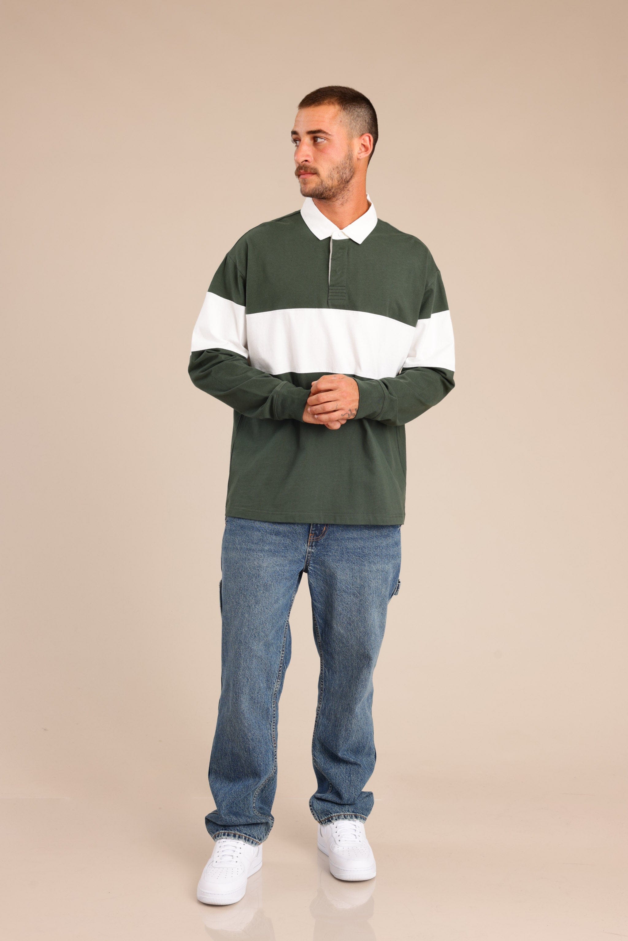 חולצת פולו 100% כותנה עם צווארון ופס לרוחב
