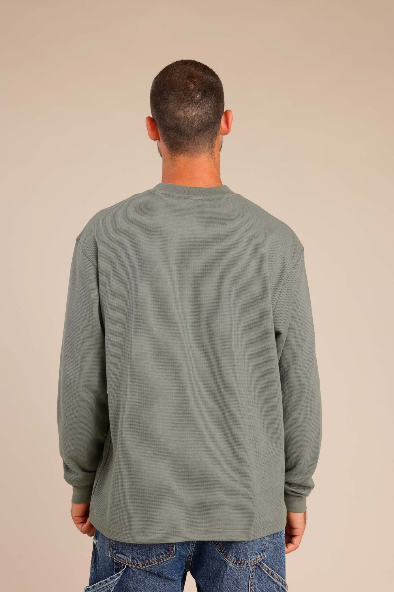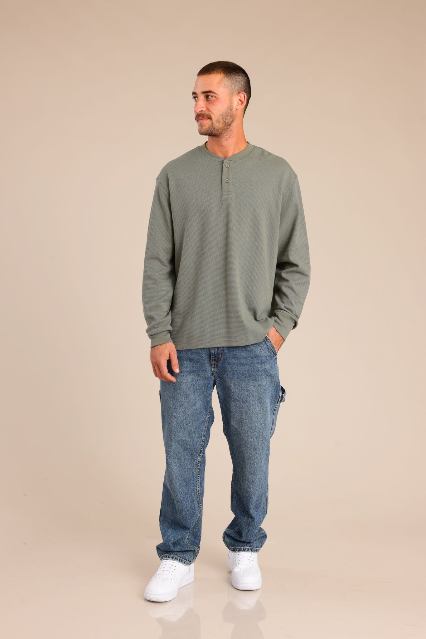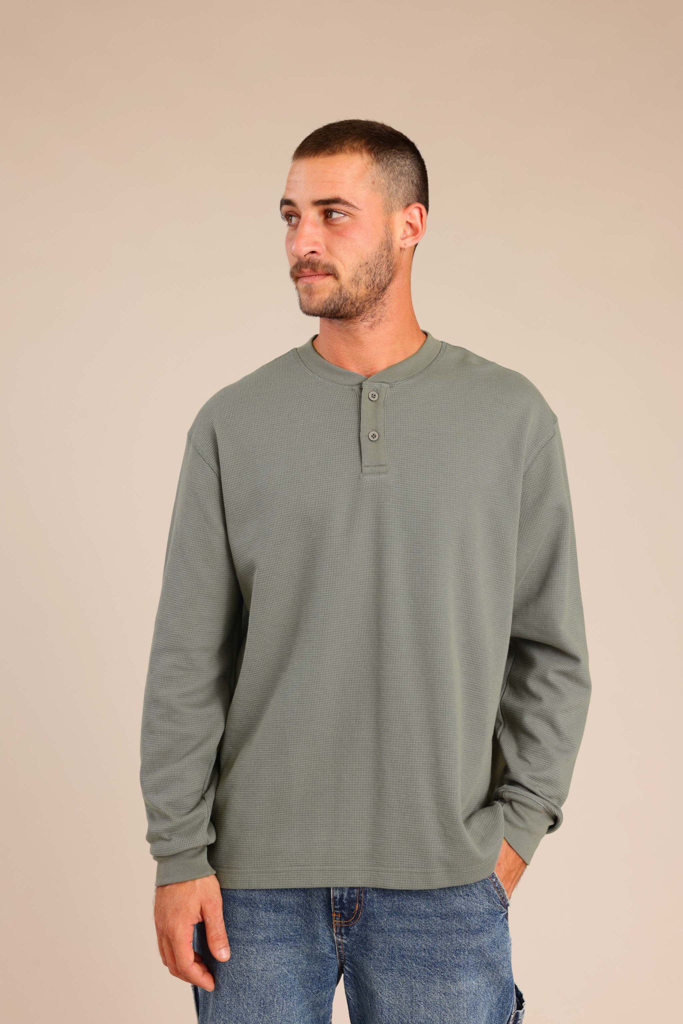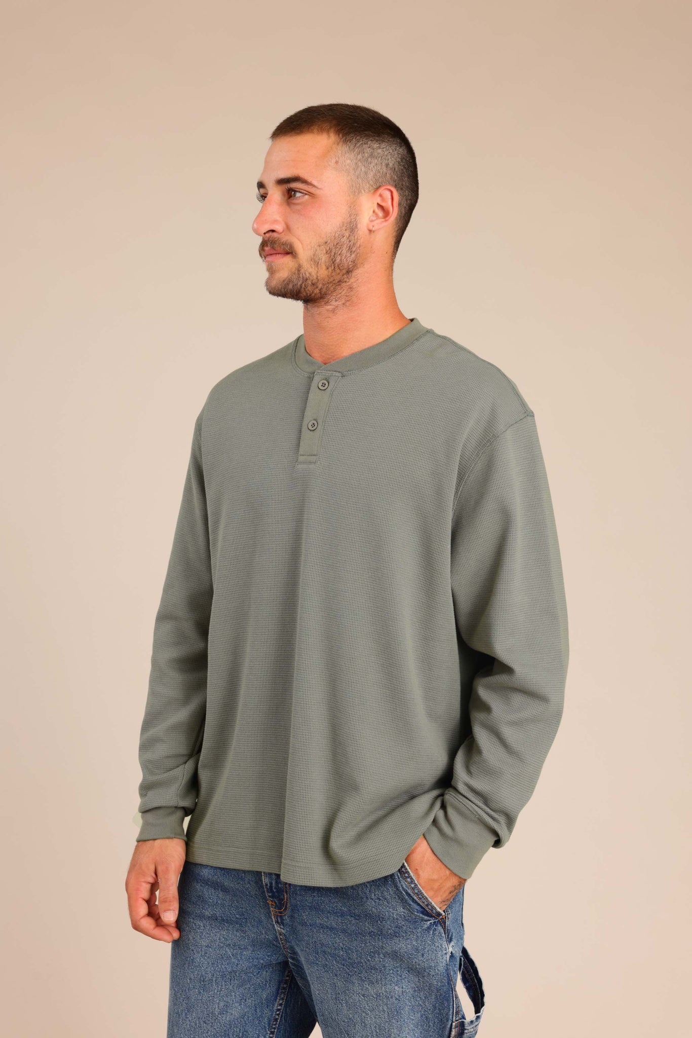 חולצת וופל חלקה עם 2 כפתורים קדמיים