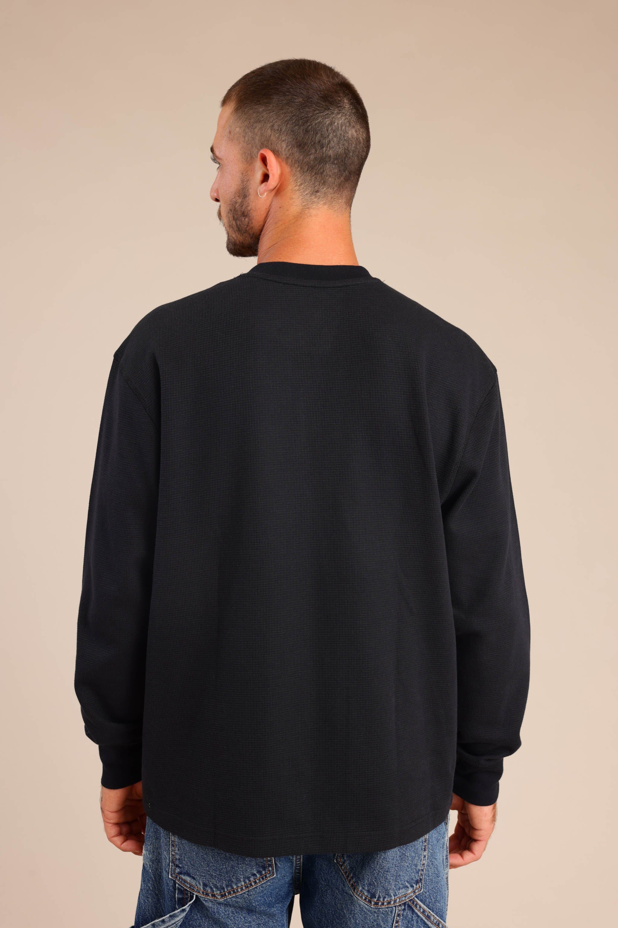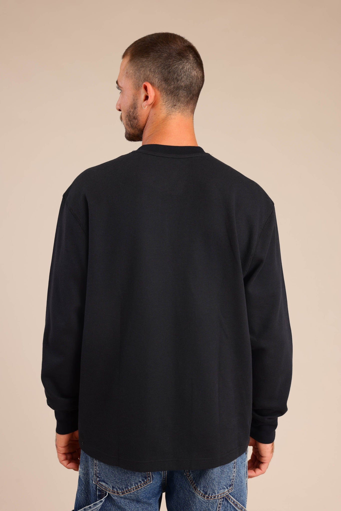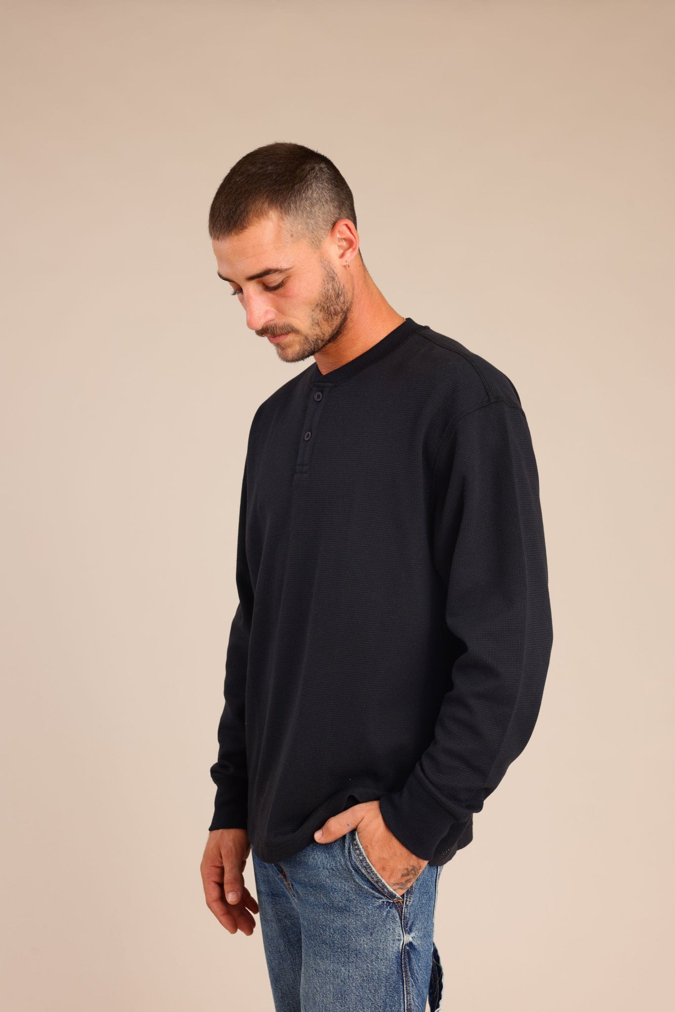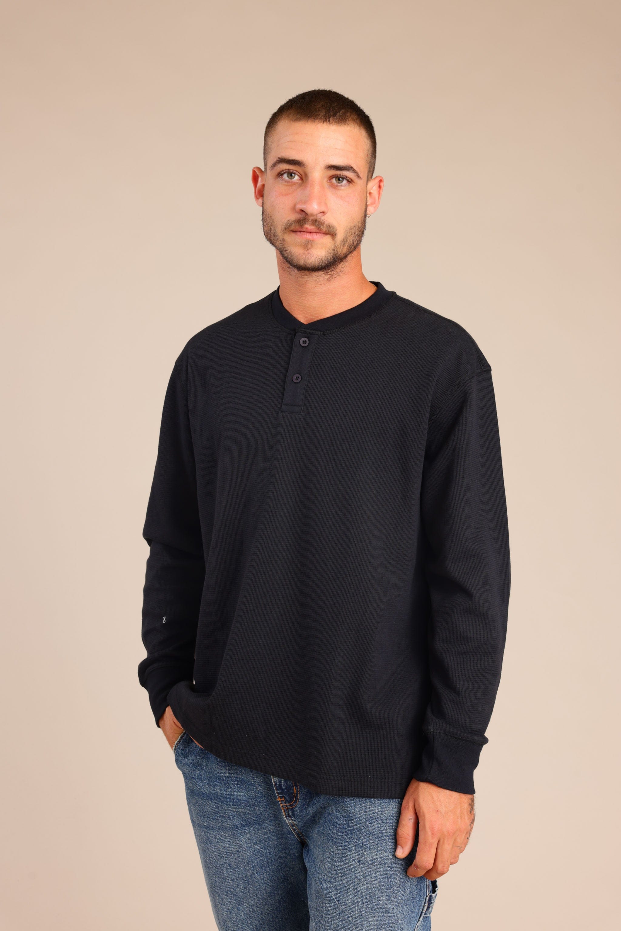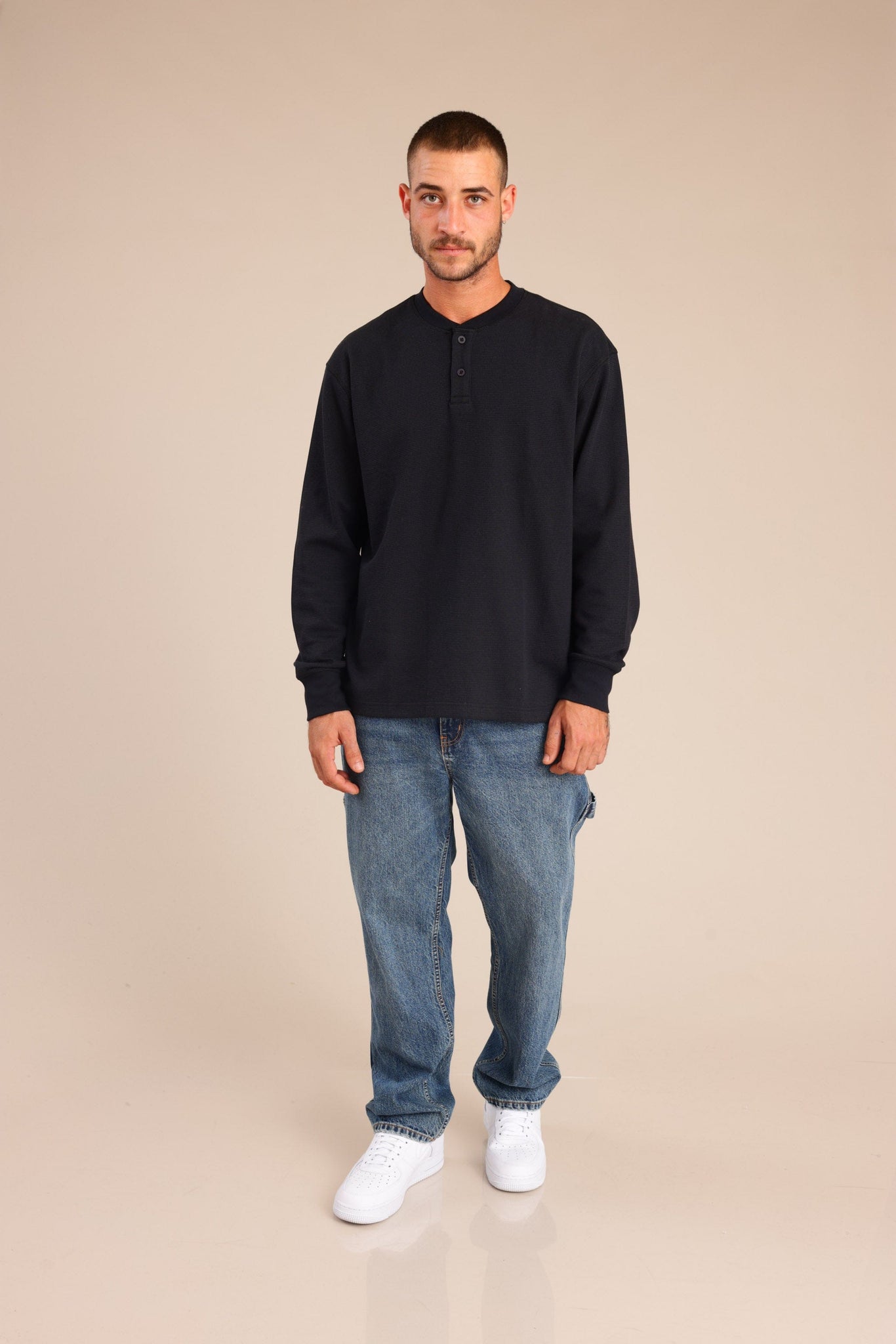 חולצת וופל חלקה עם 2 כפתורים קדמיים