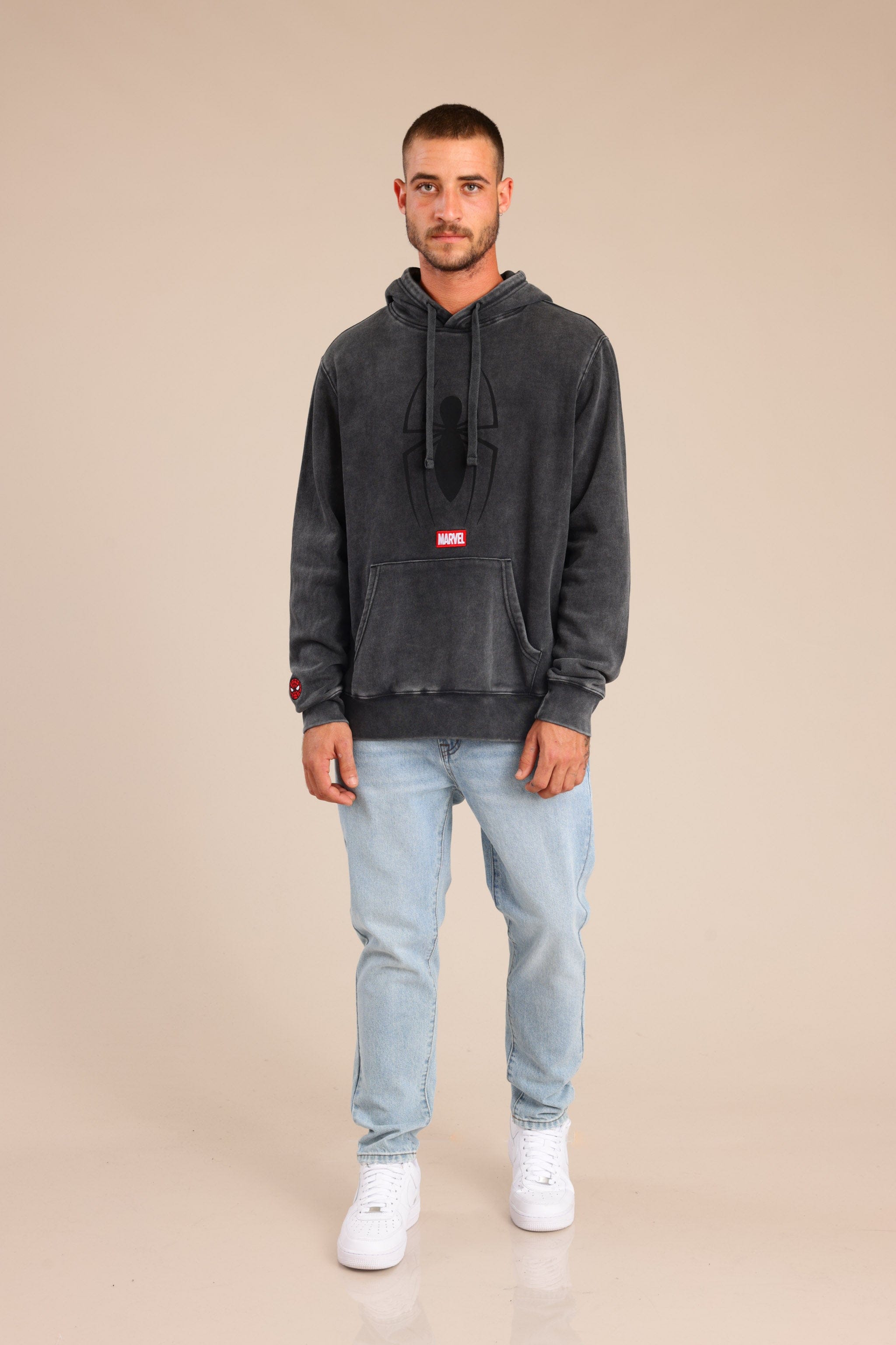 פוטר קפוצ'ון גברים ממותג ספיידרמן עם כובע והדפס קדמי