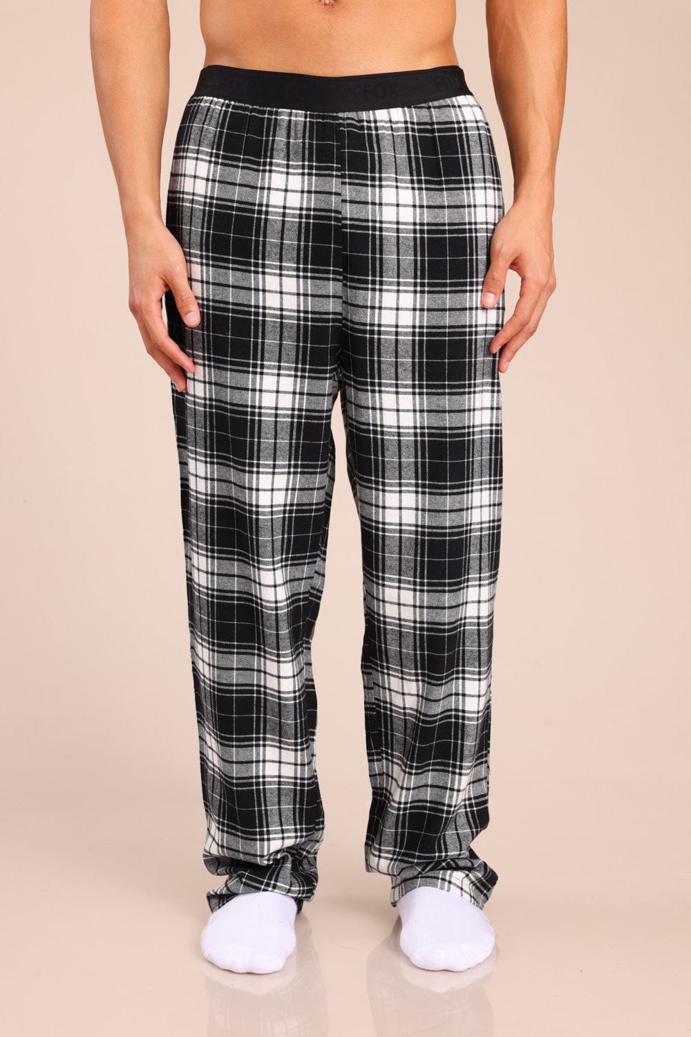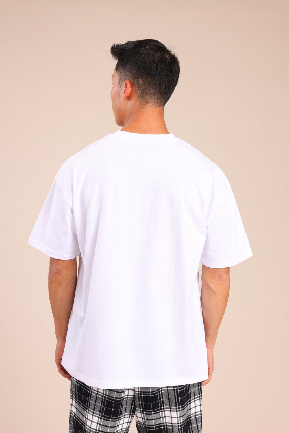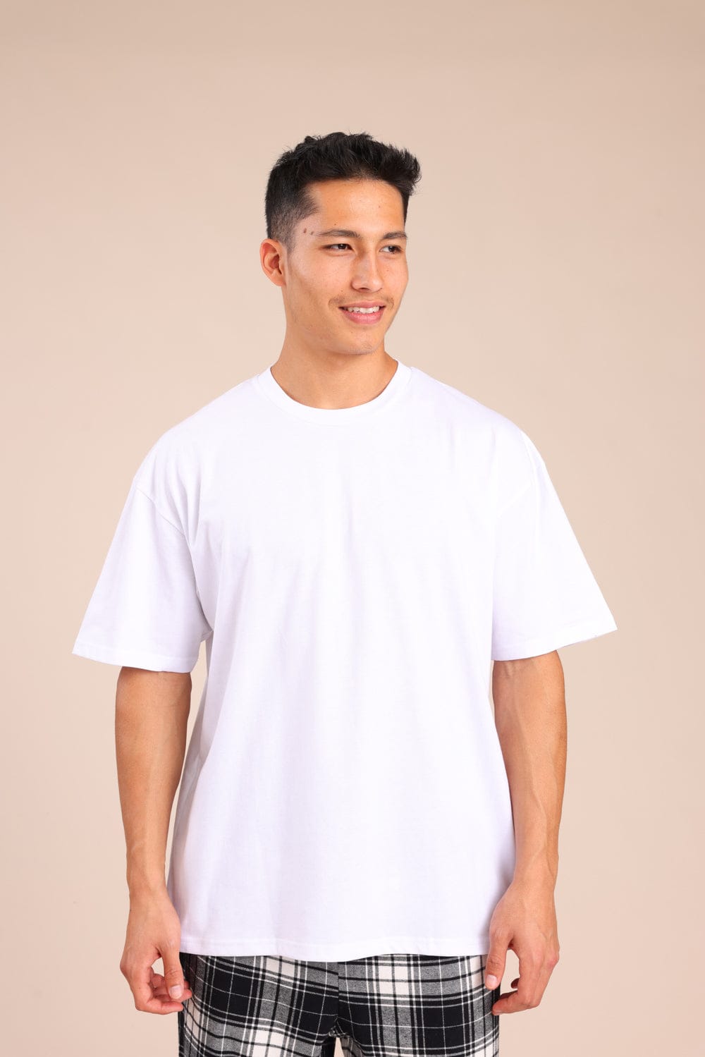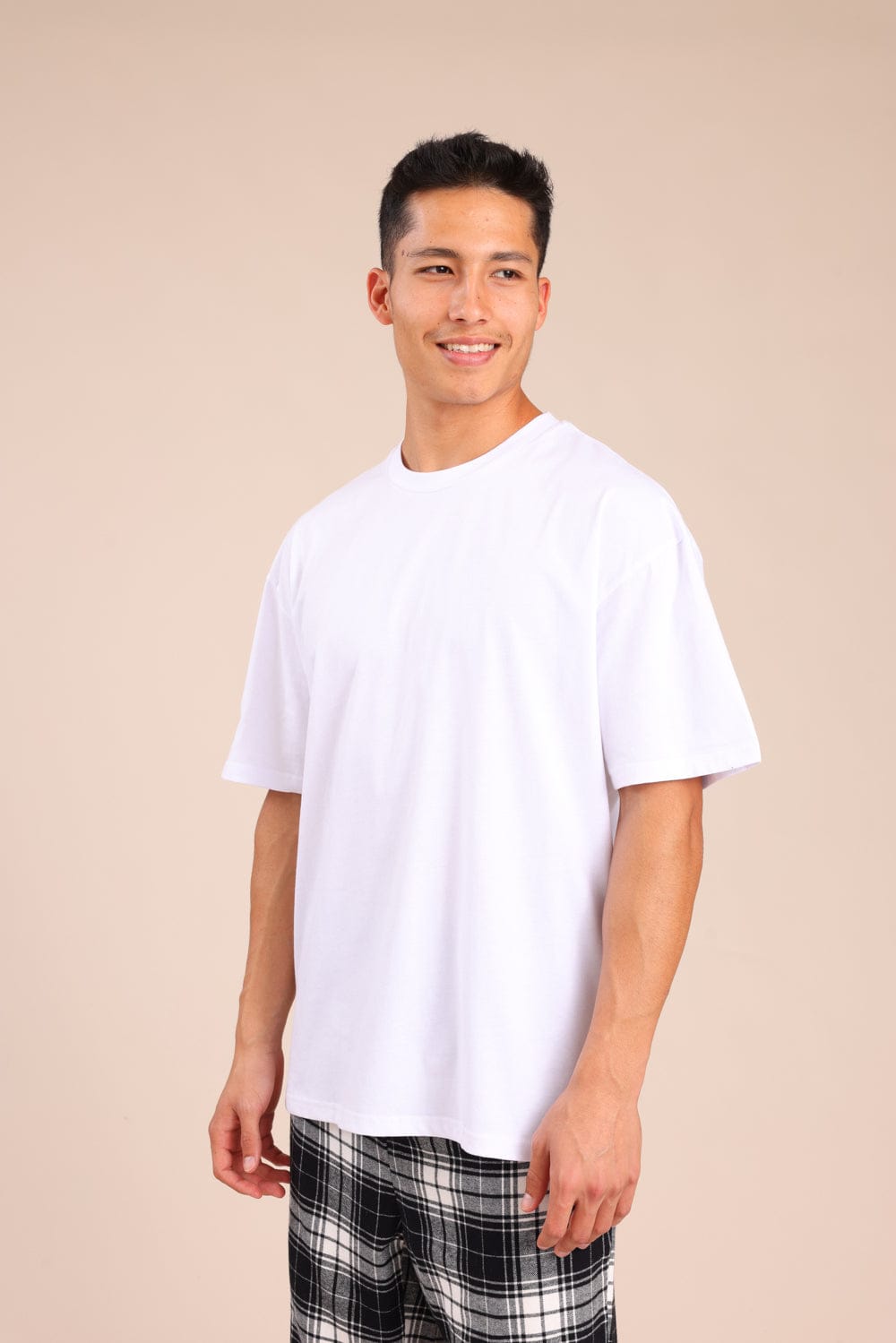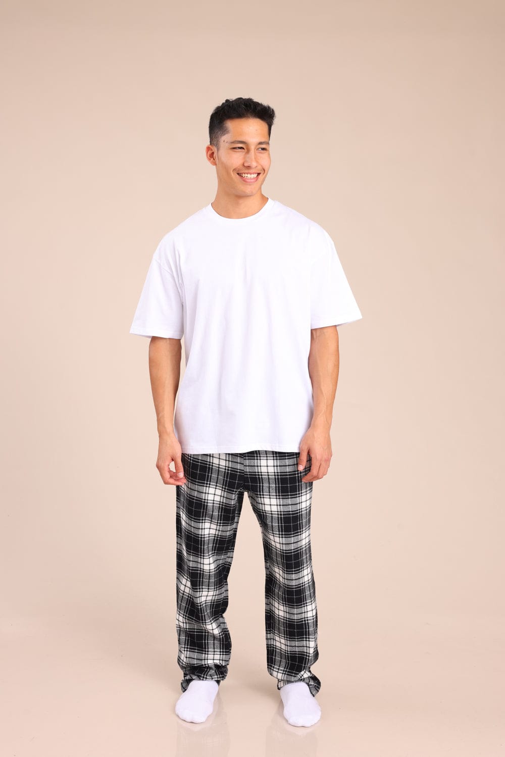 פיג'מה גברים טישרט חלקה ומכנס משובץ