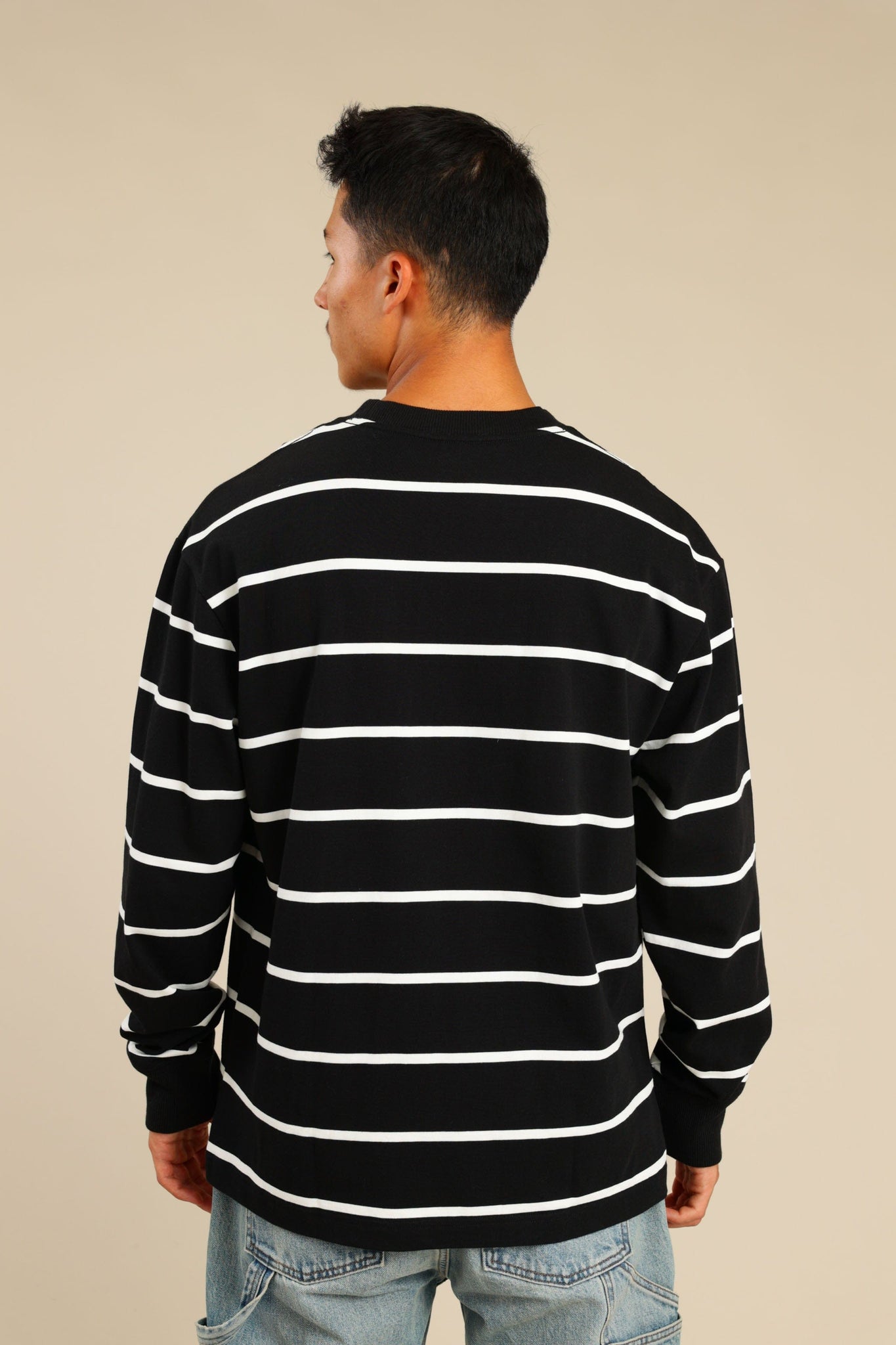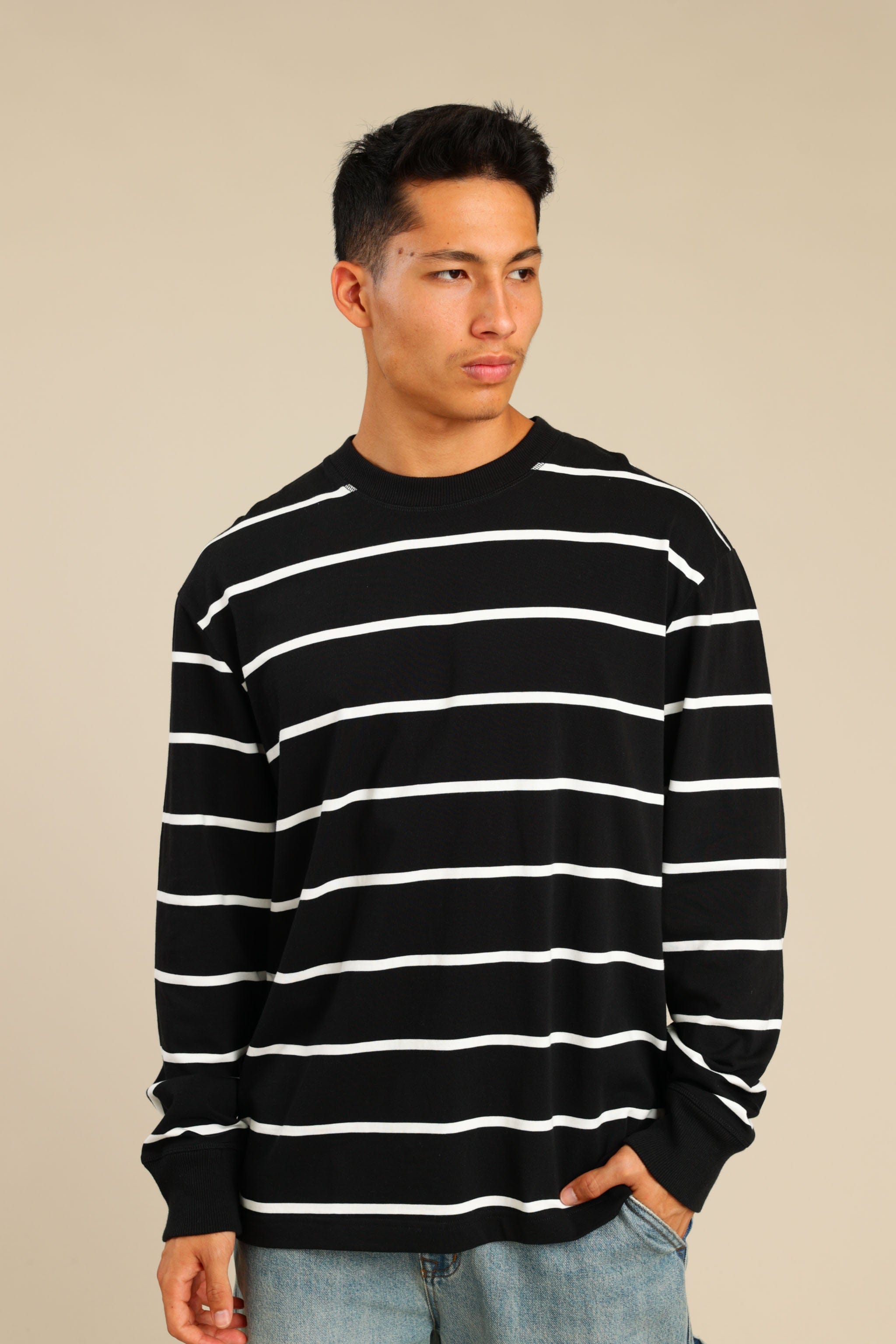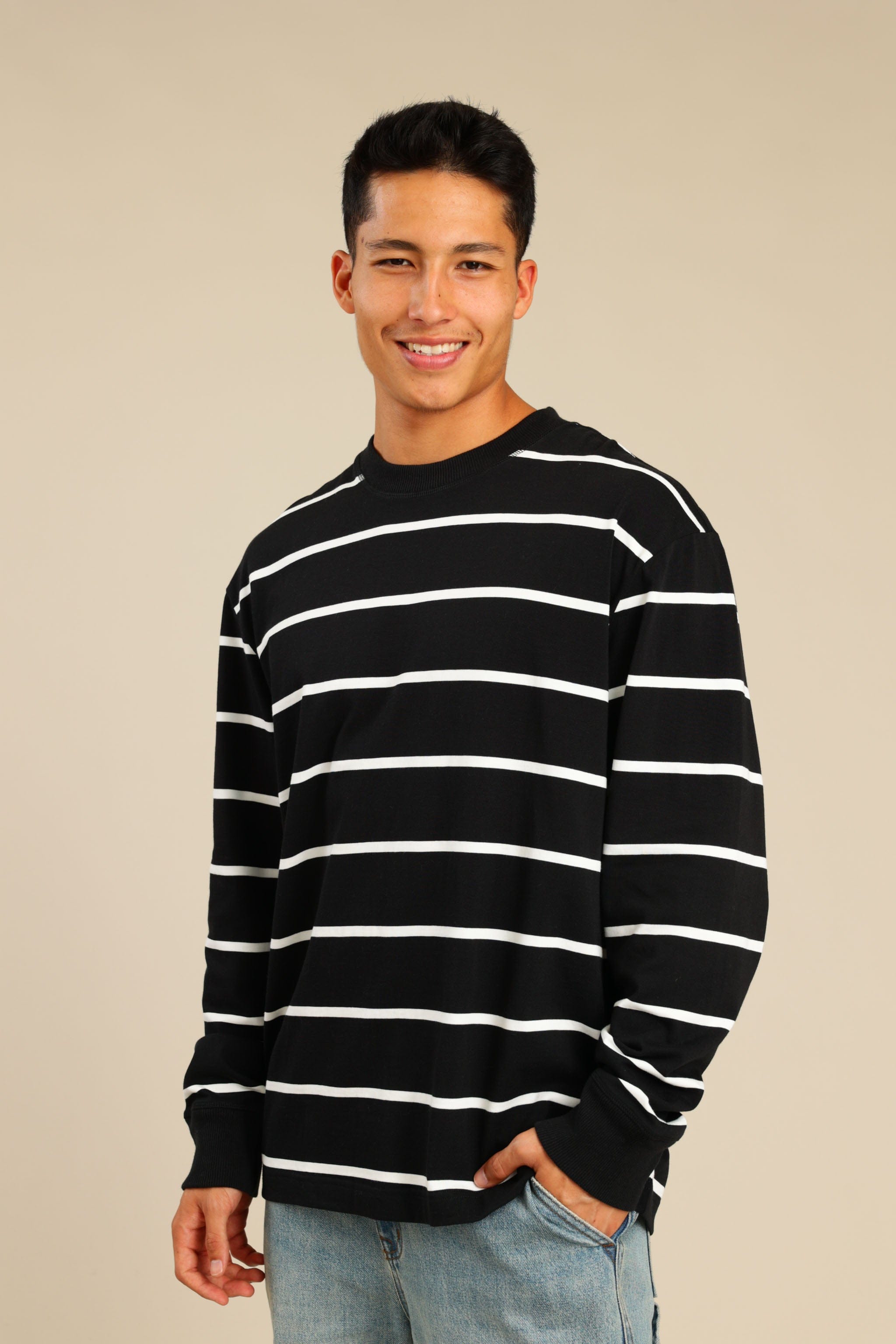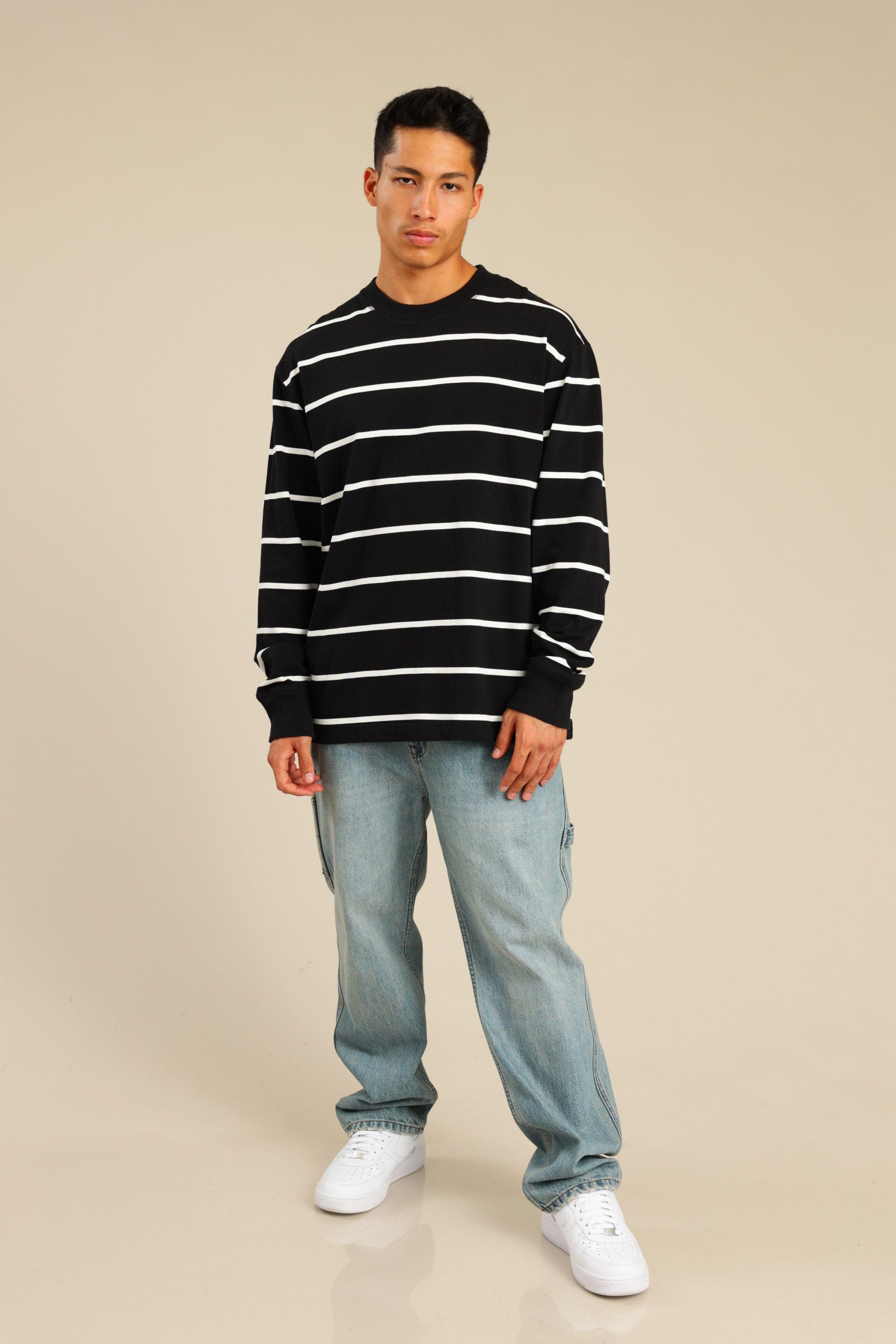 חולצת פסים ארוכה בגזרה רגילה מבד נעים ונמתח