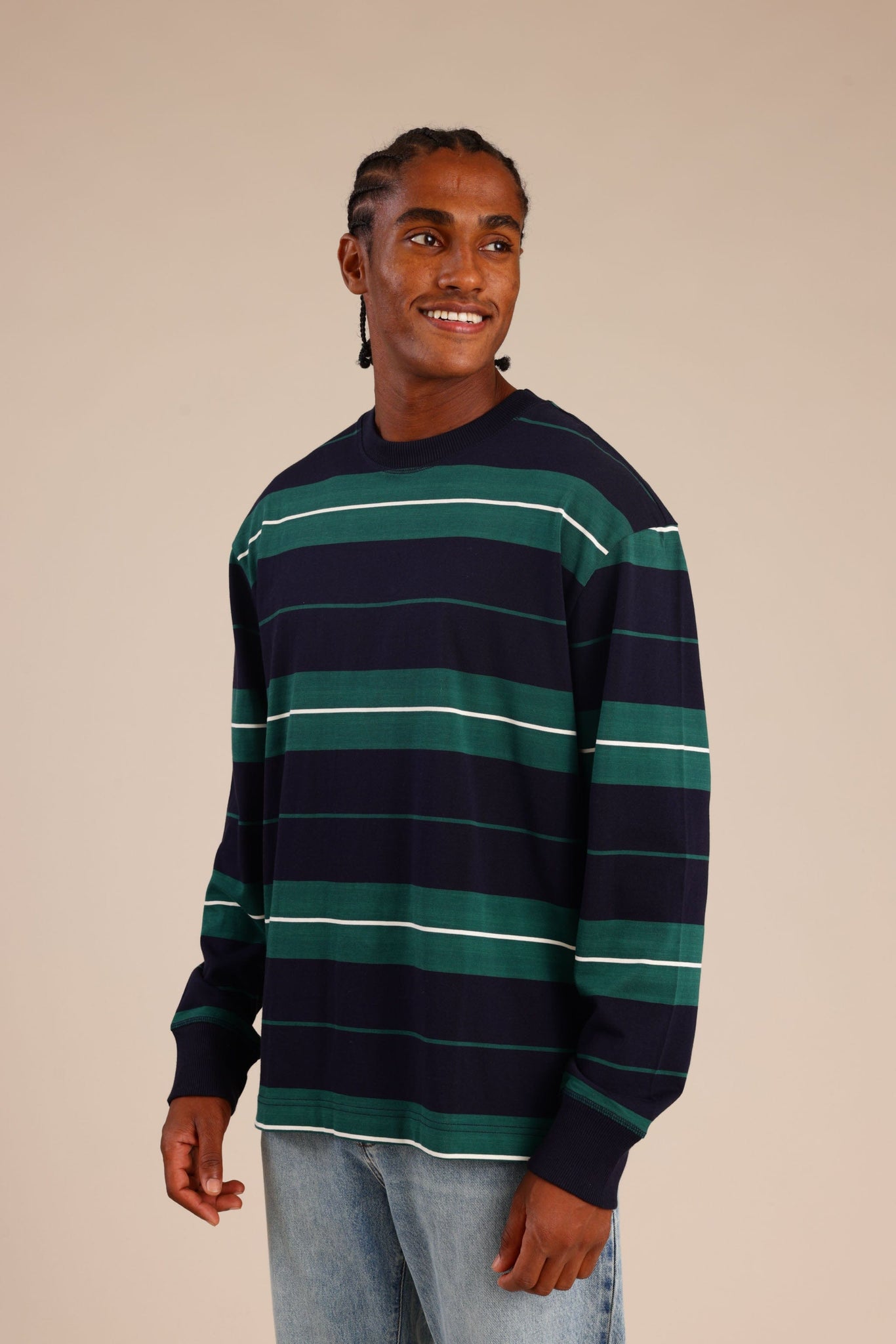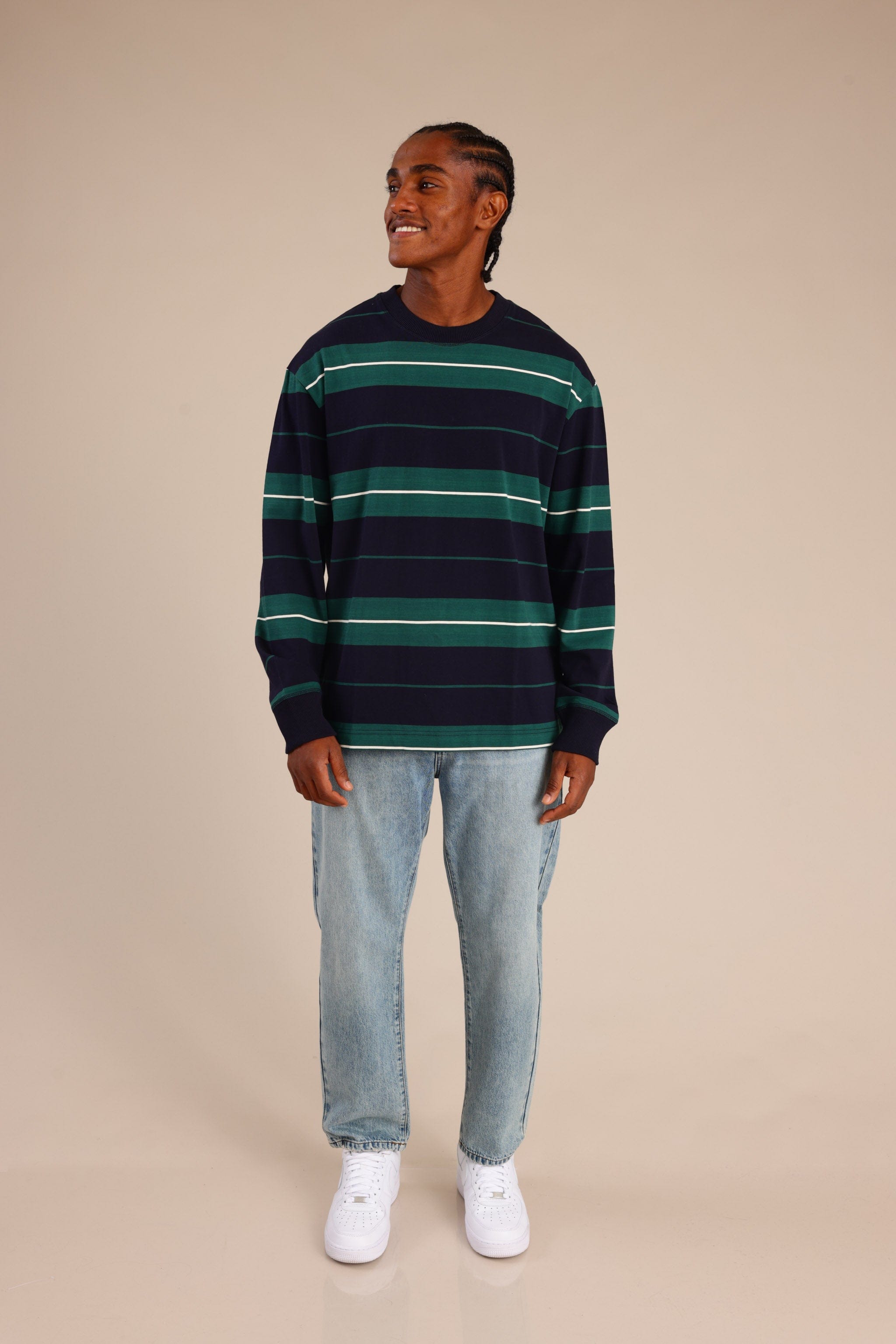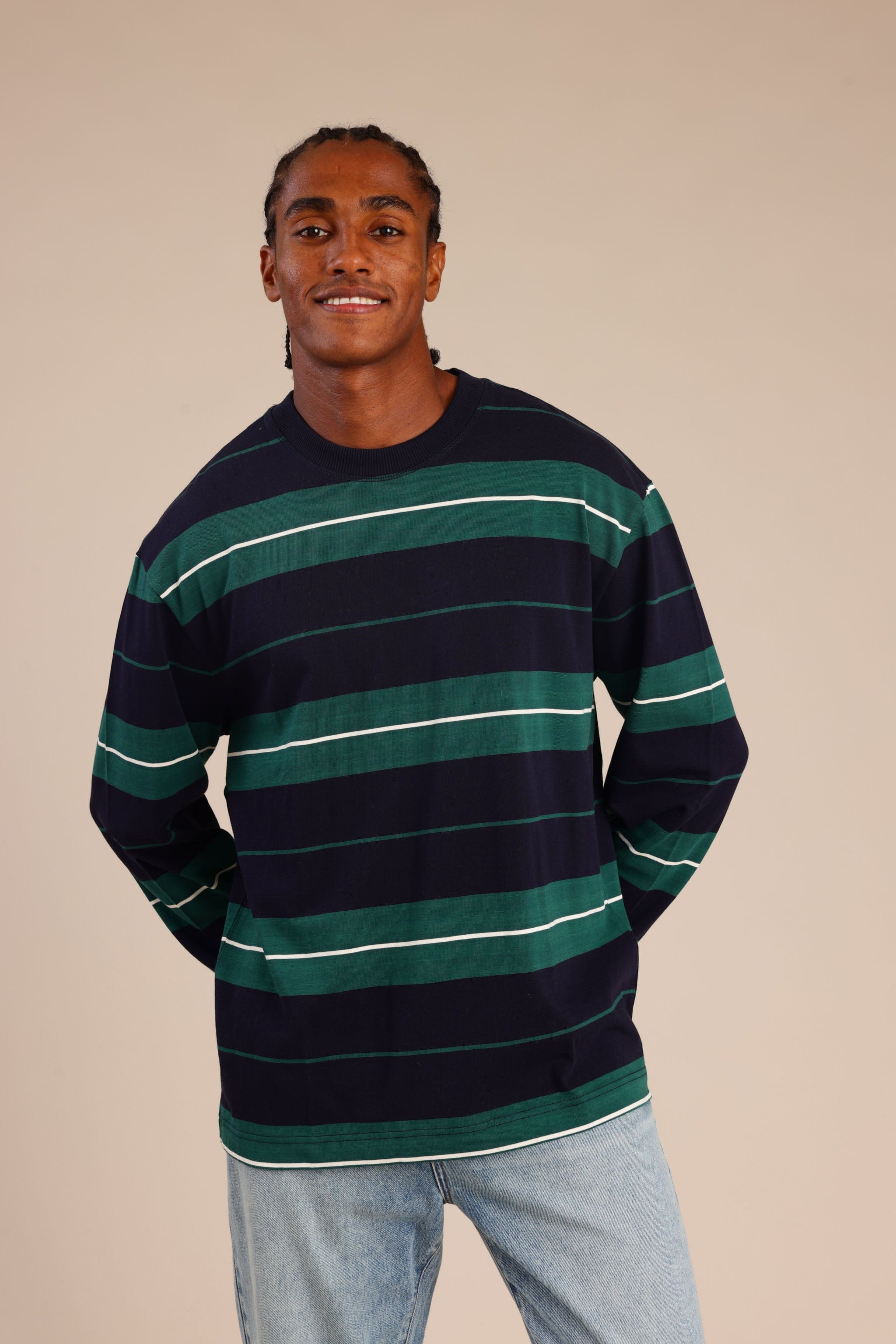 חולצת פסים ארוכה בגזרה רגילה מבד נעים ונמתח
