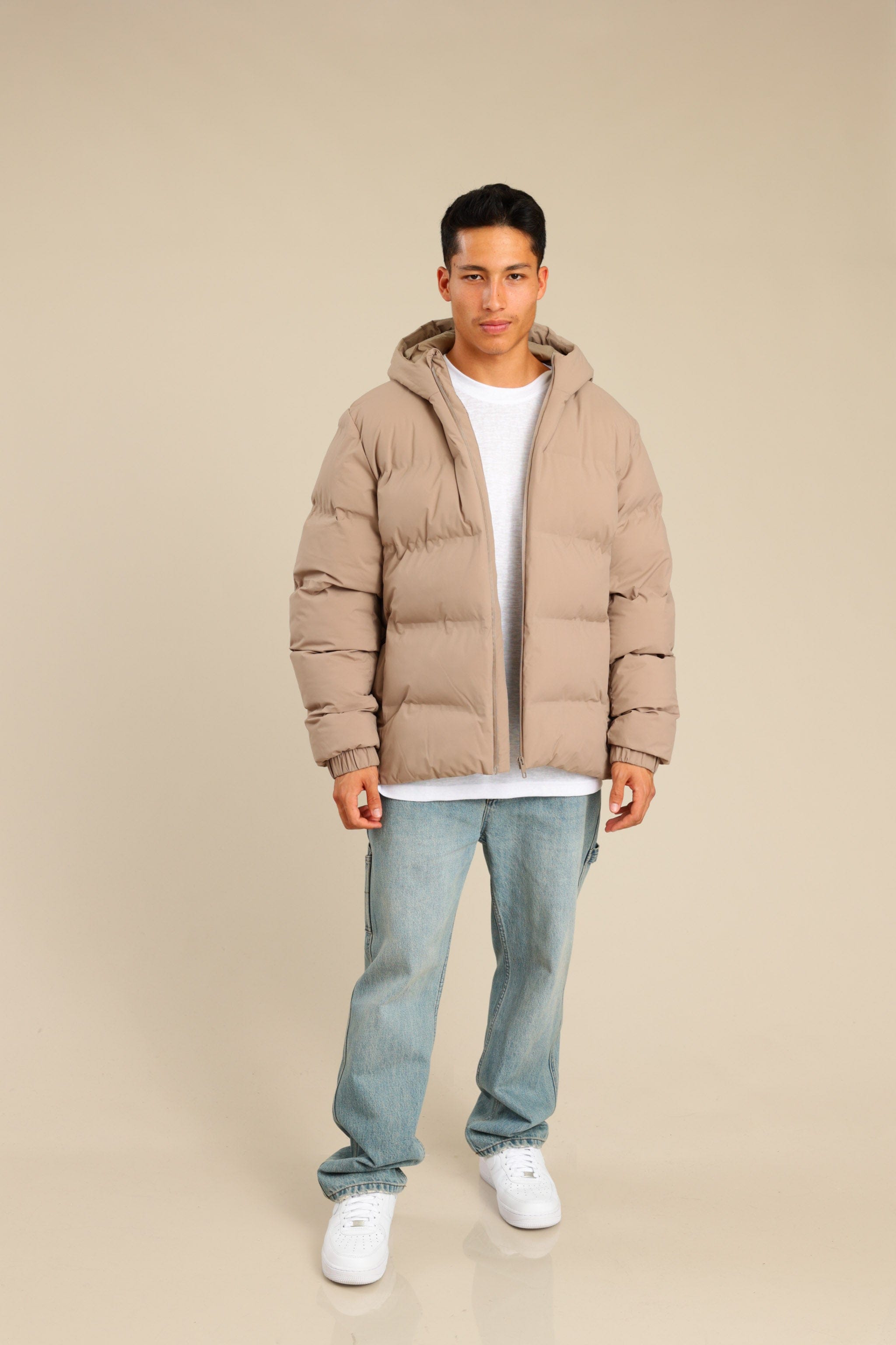 מעיל פוך לגבר עם רוכסן קדמי וכובע,