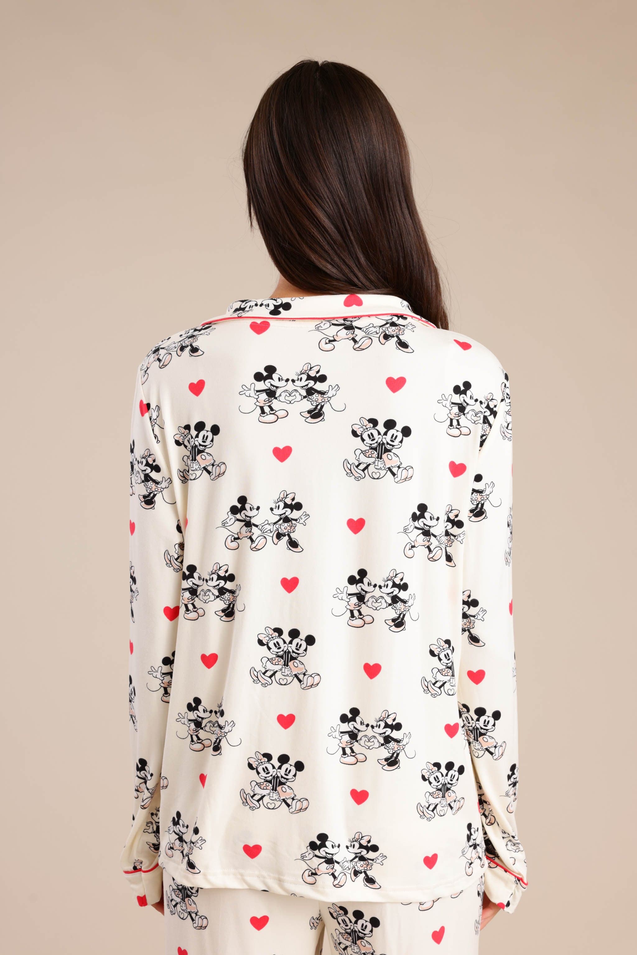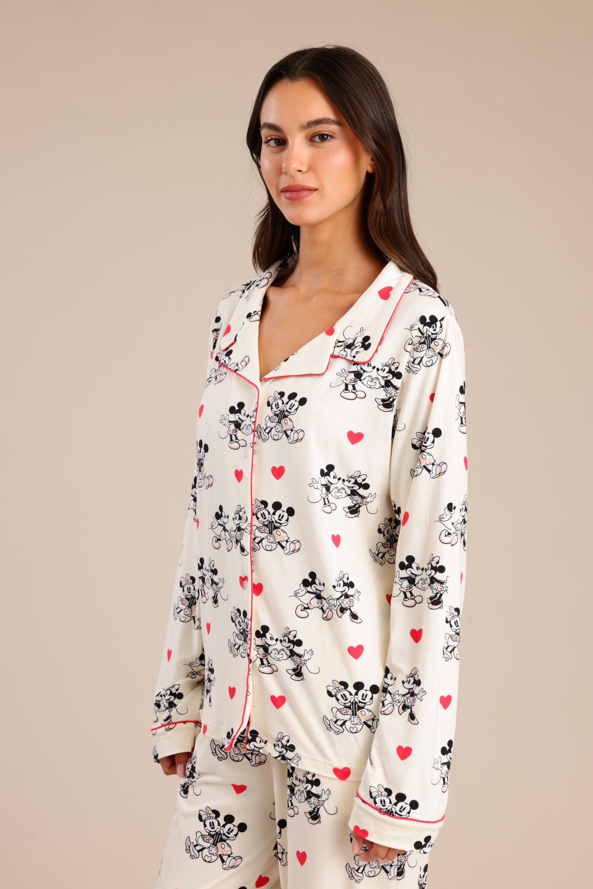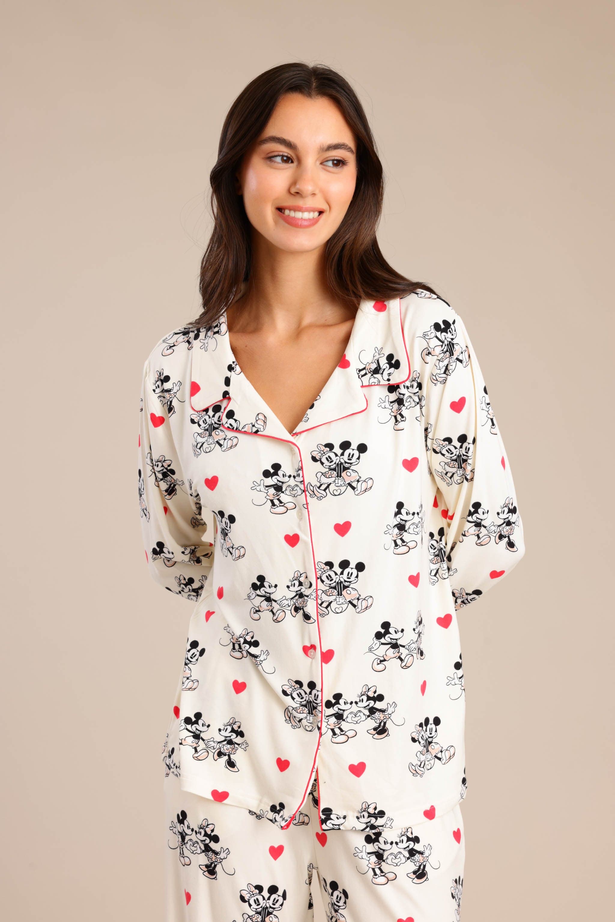 סט פיג'מה מיקי מאוס מקטיפה עם חולצה מכופתרת ומכנס משוחרר וקליל