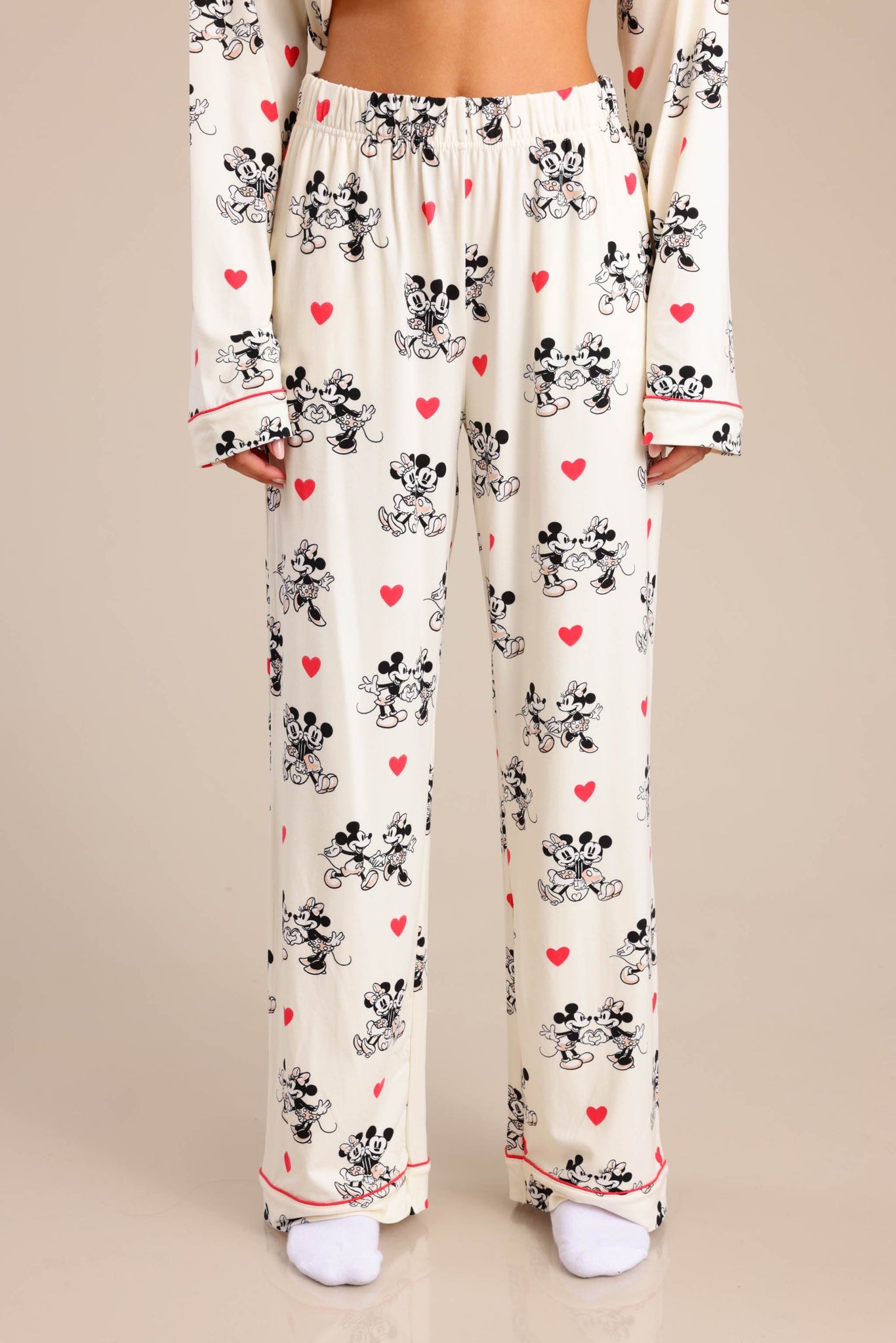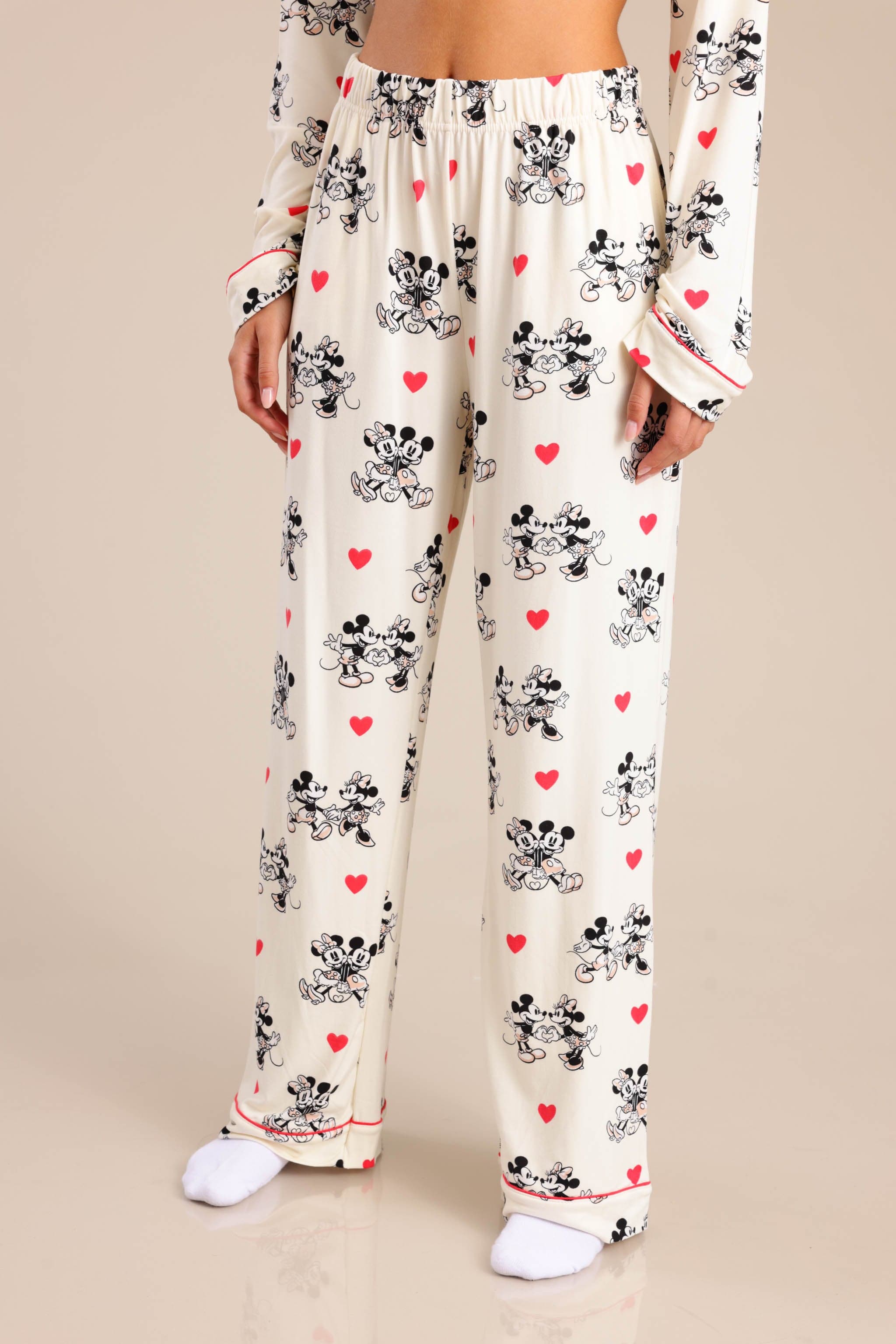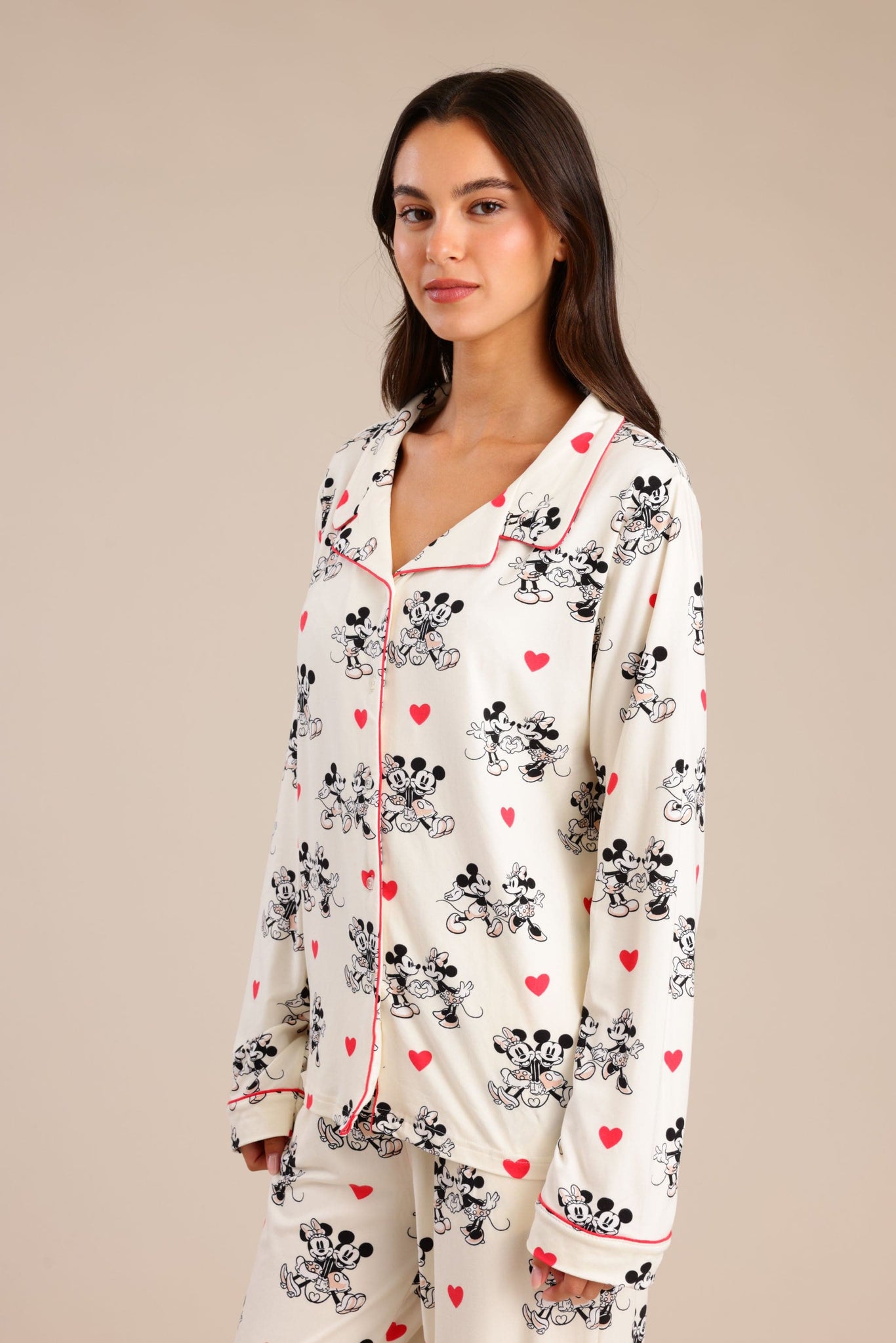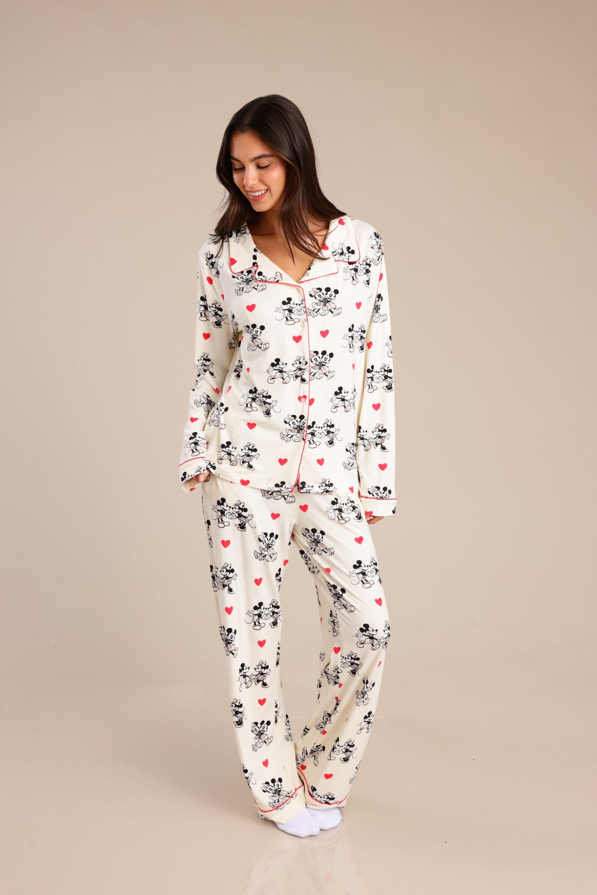 סט פיג'מה מיקי מאוס מקטיפה עם חולצה מכופתרת ומכנס משוחרר וקליל