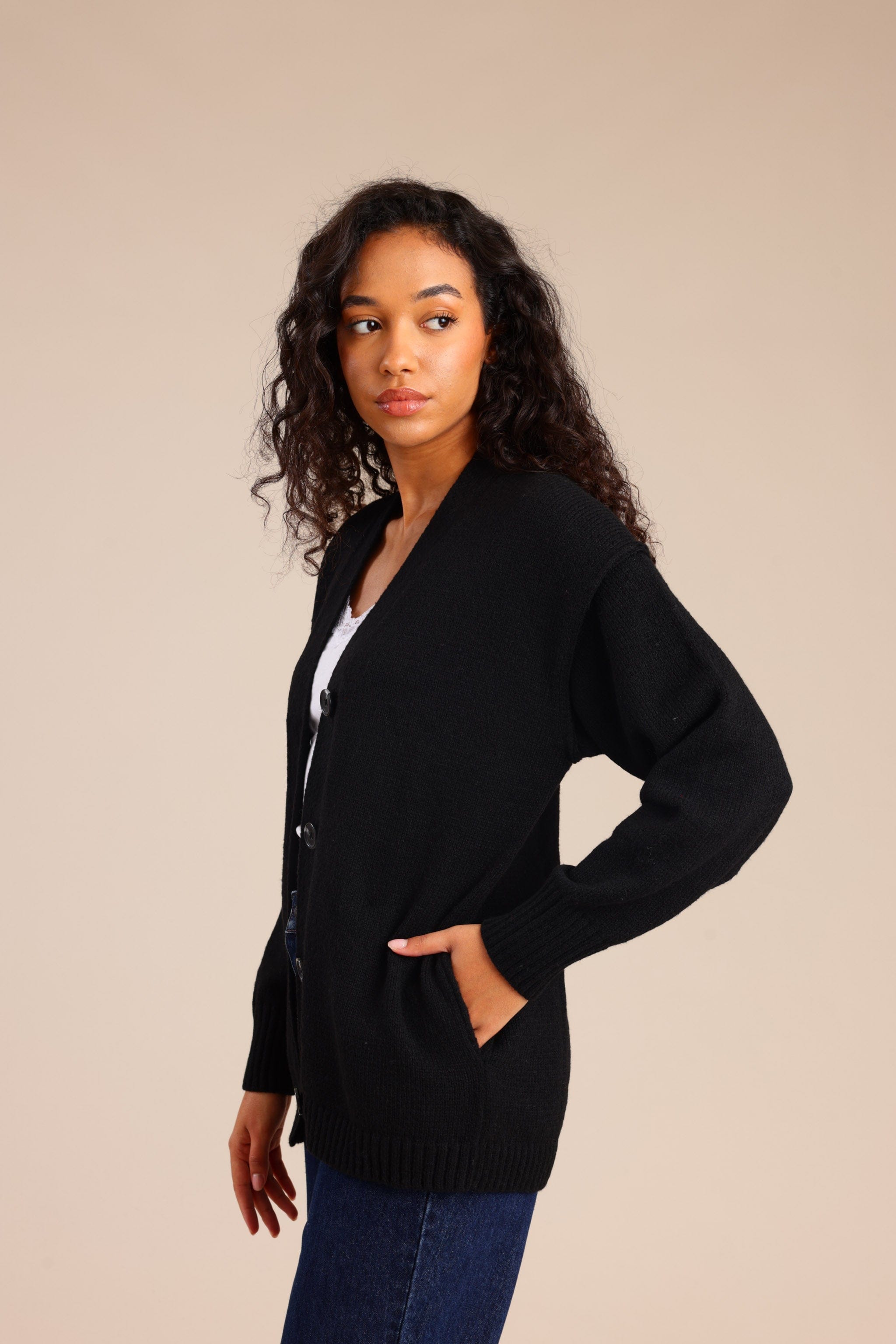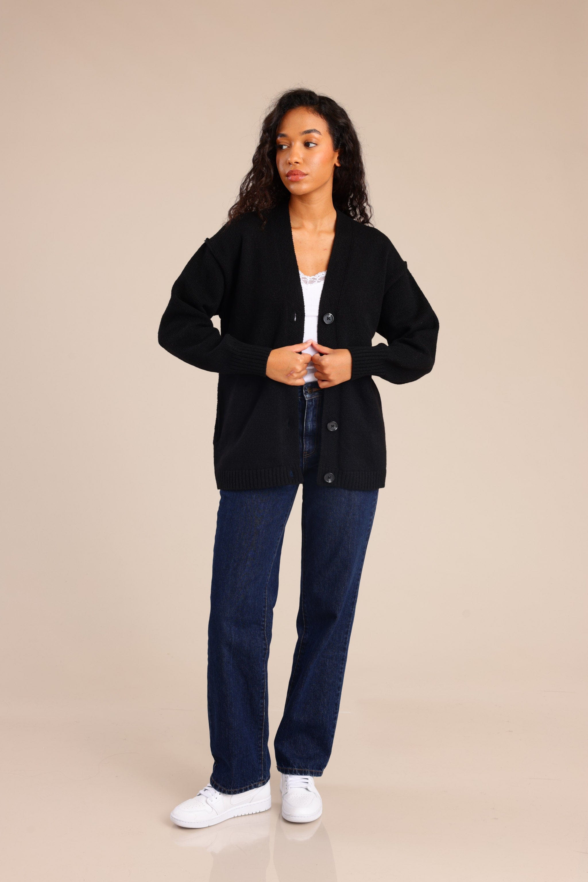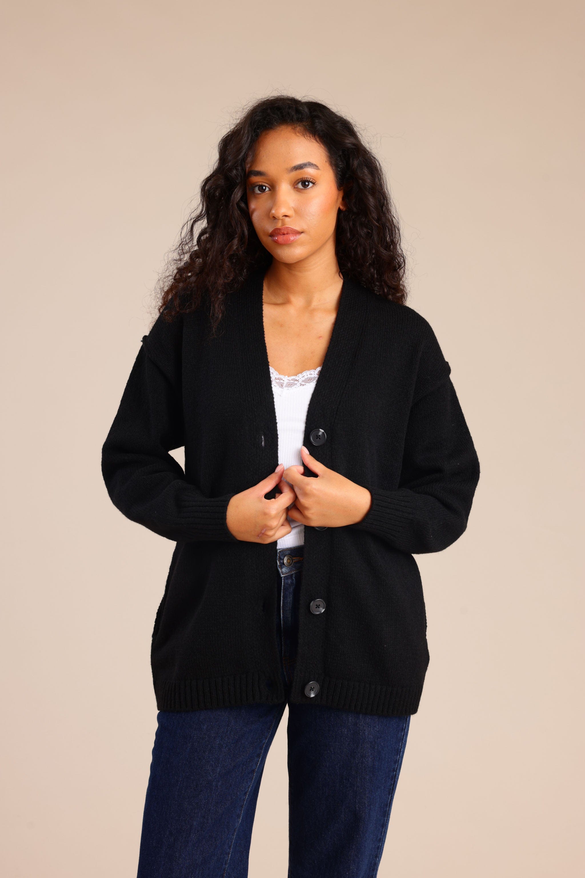 סריג קרדיגן עם כפתורים קדמיים