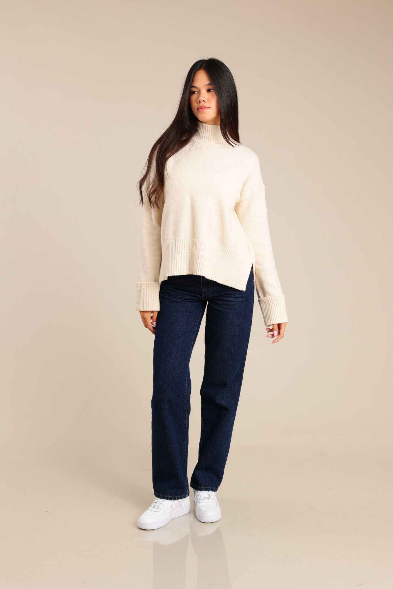 סריג רך ונעים לנשים עם צווארון גבוה וגזרה נוחה