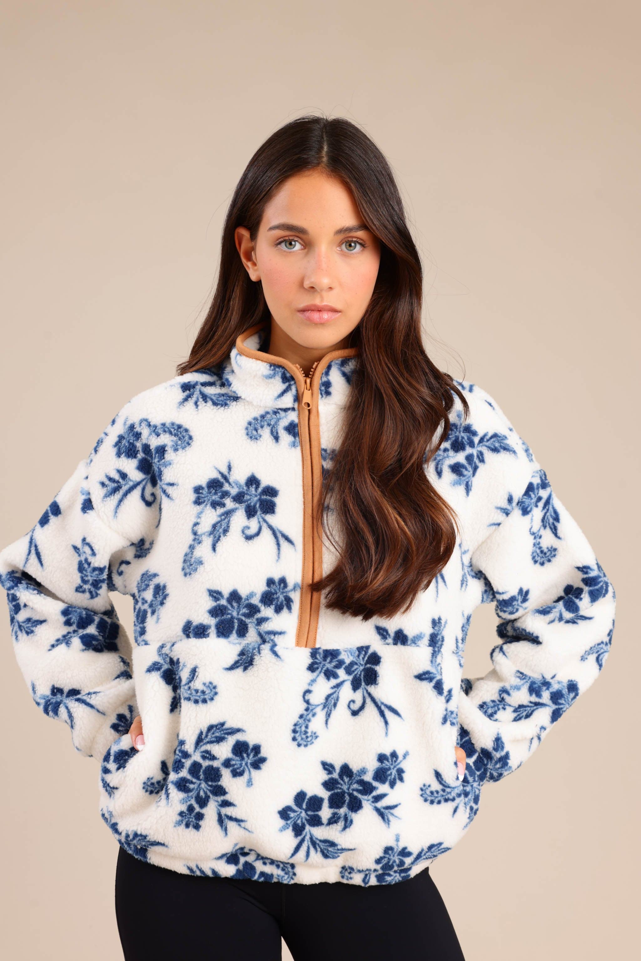 חולצת נשים חצי רוכסן וצווארון עולה