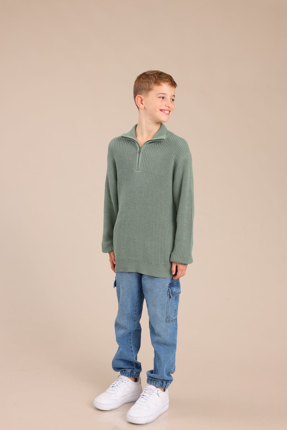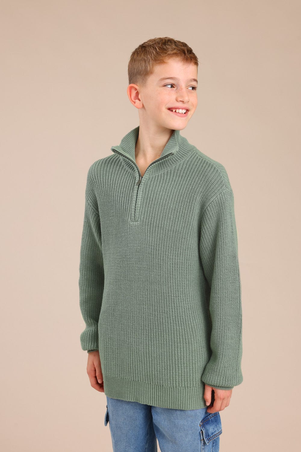 סריג עם צווארון וחצי רוכסן בחלק העליון