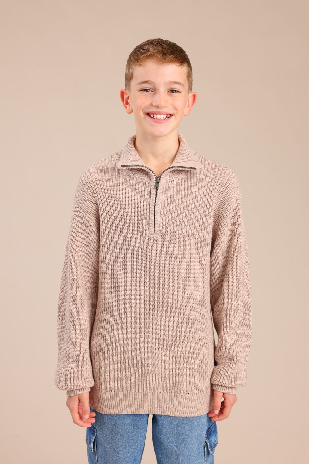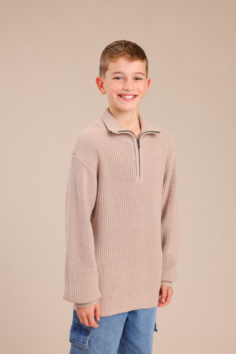 סריג עם צווארון וחצי רוכסן בחלק העליון