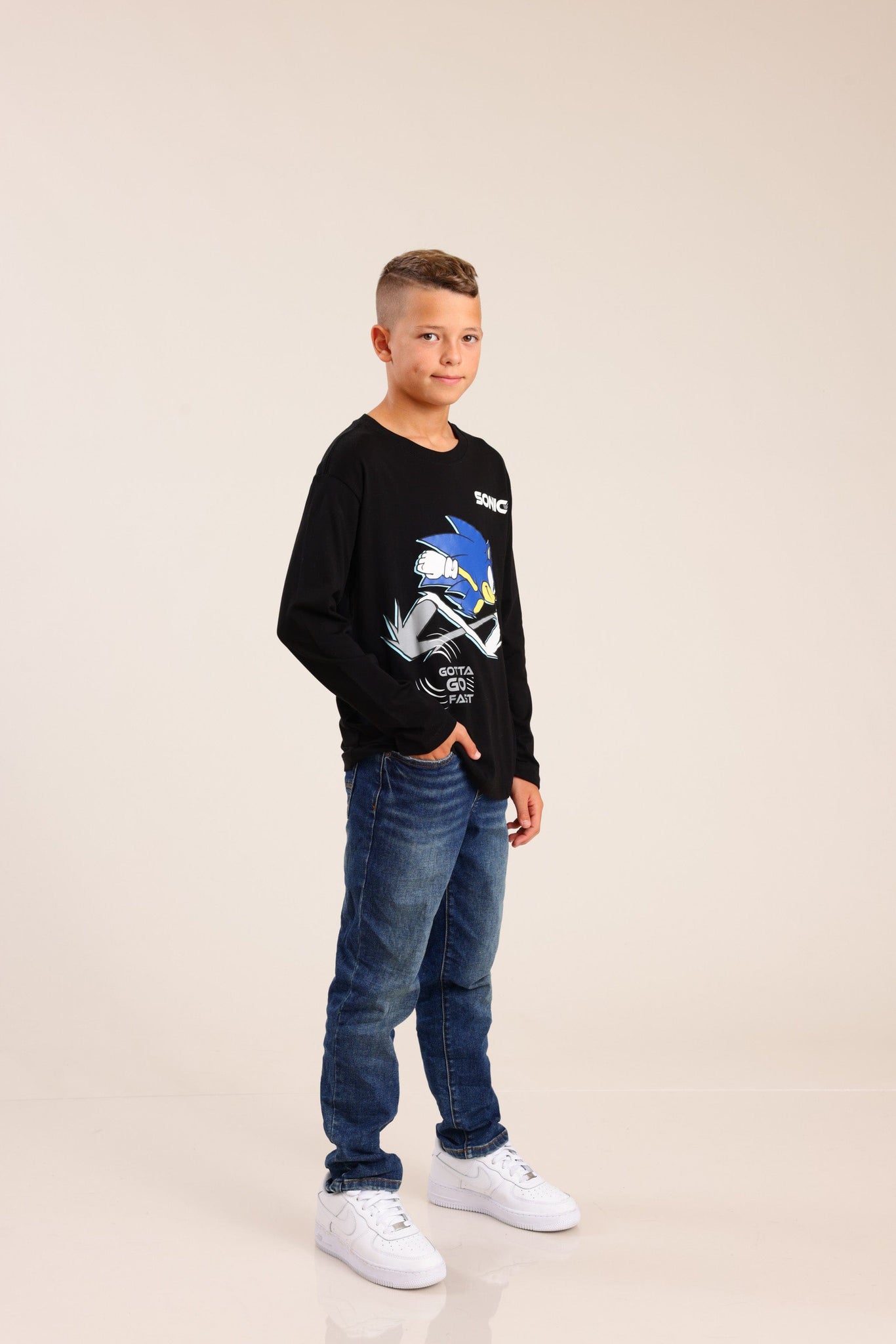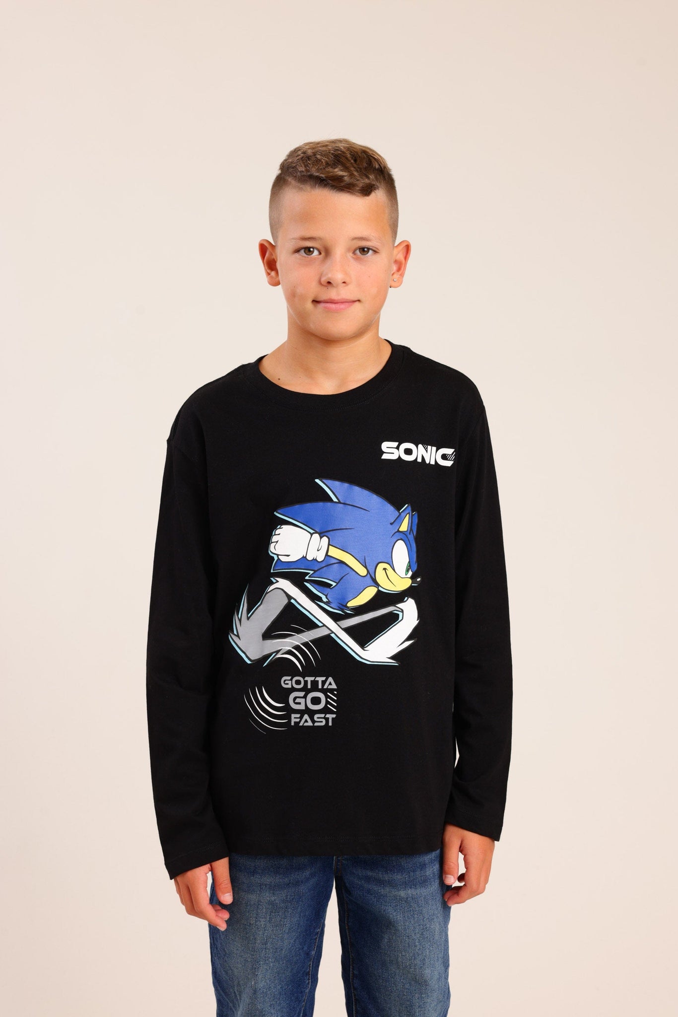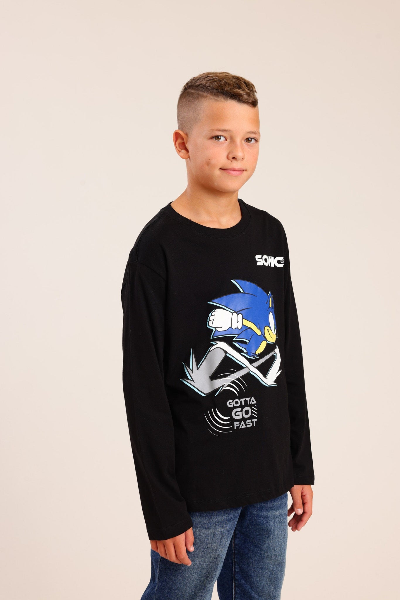 חולצה עם צווארון עגול והדפס קדמי סוניק
