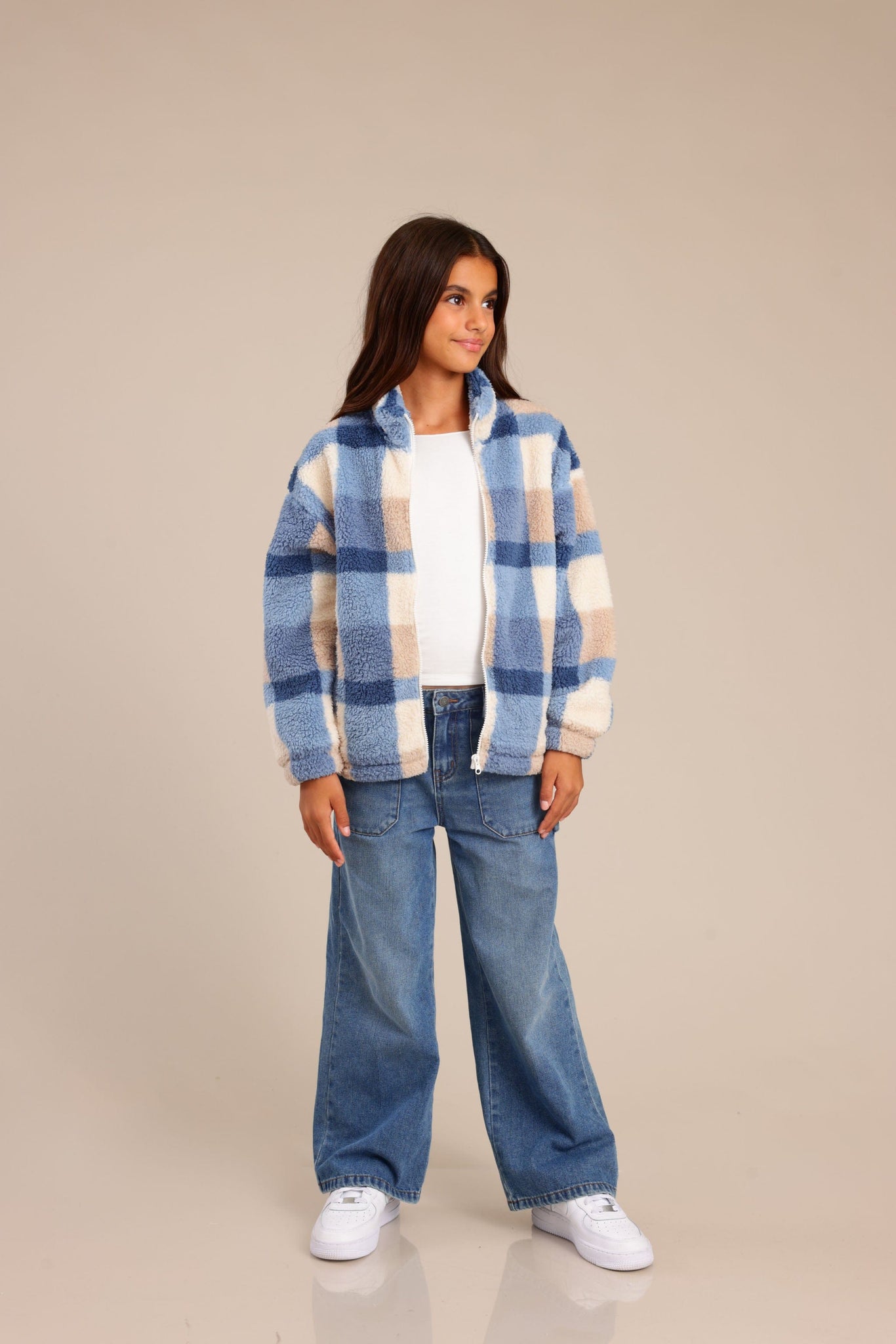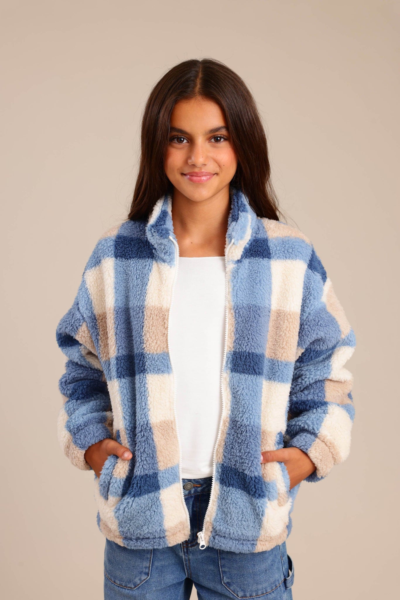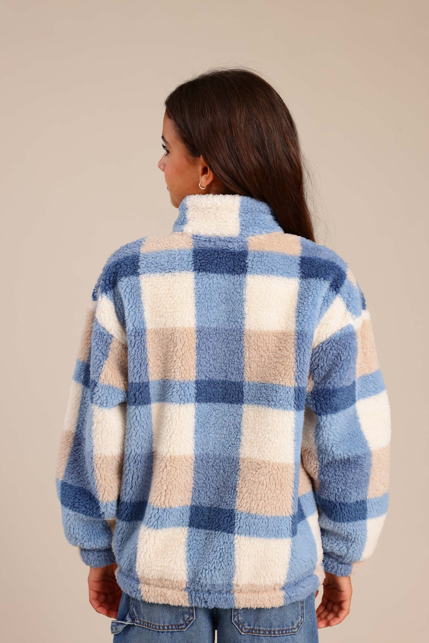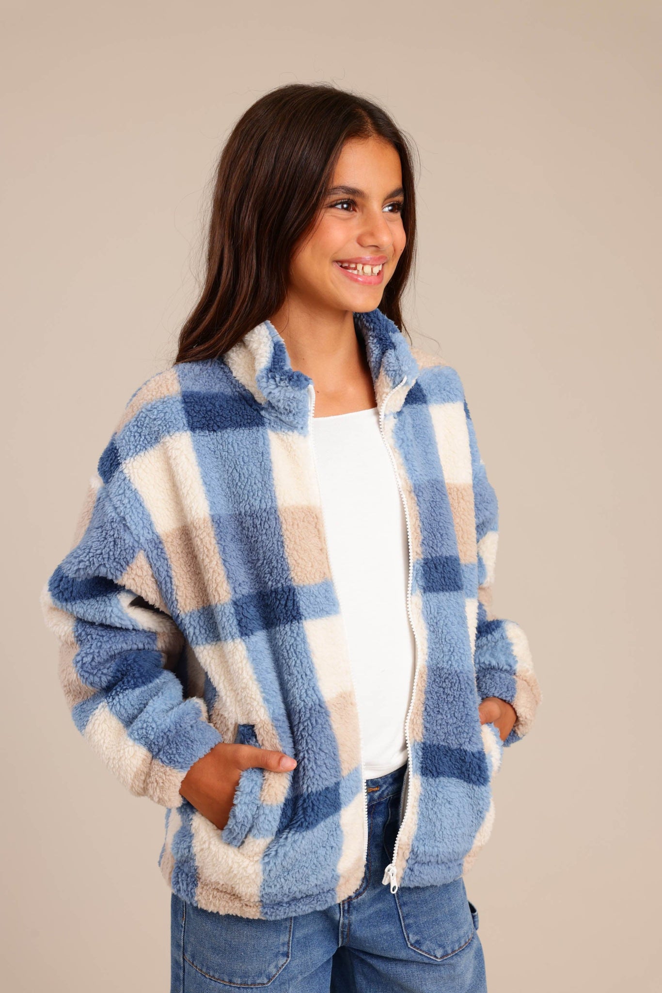 קרדיגן עם הדפס משובץ חמים ועם רוכסן קדמי