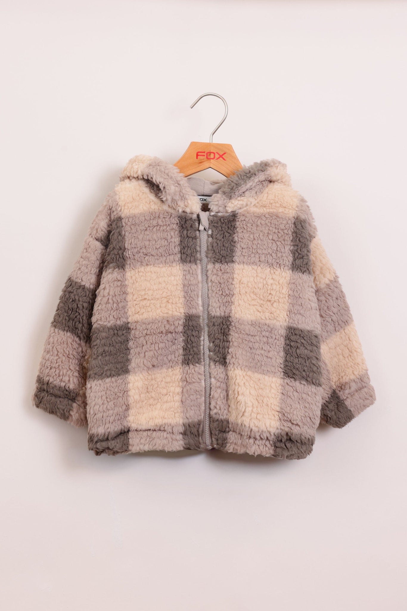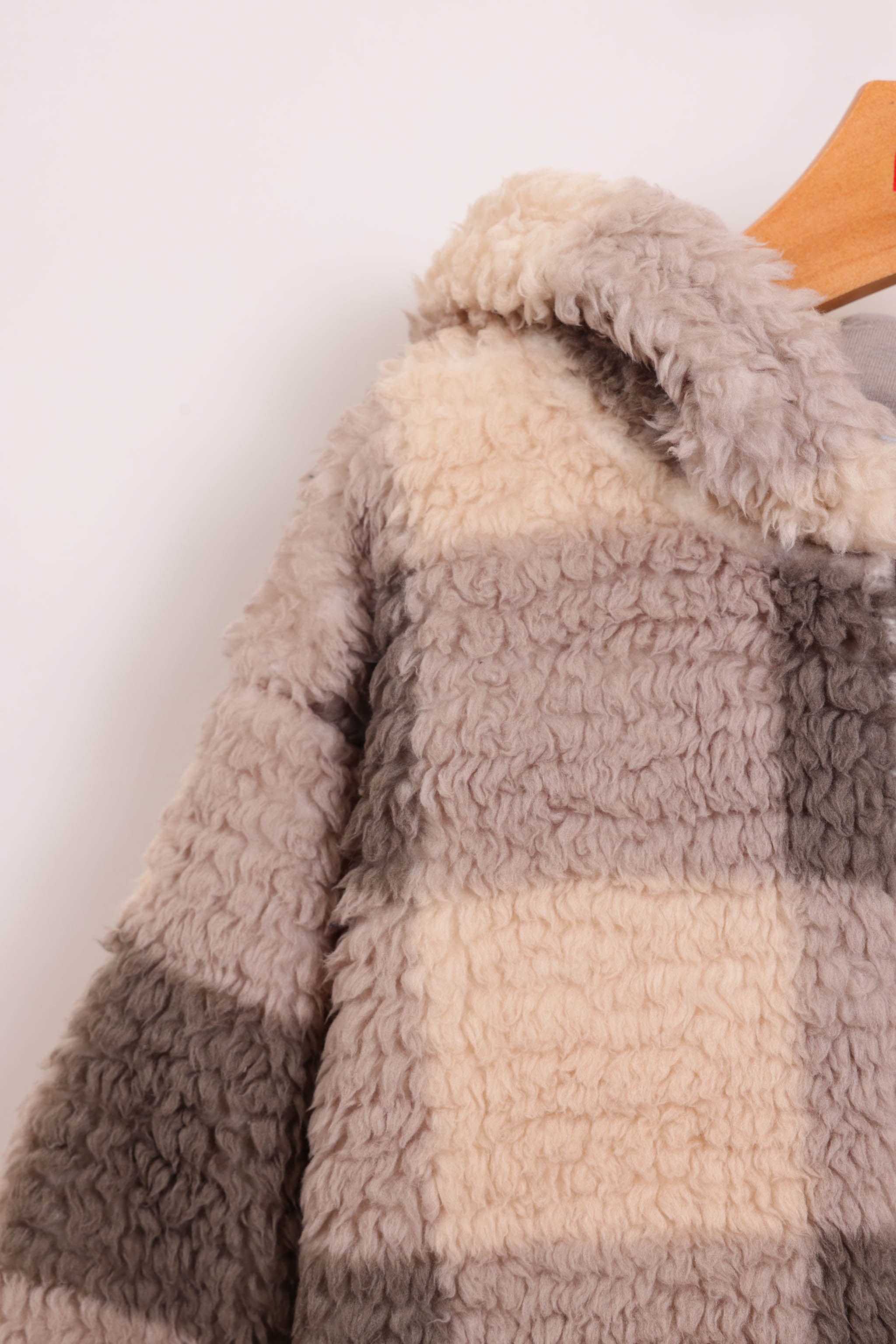 קרדיגן פליז משובץ עם רוכסן קדמי