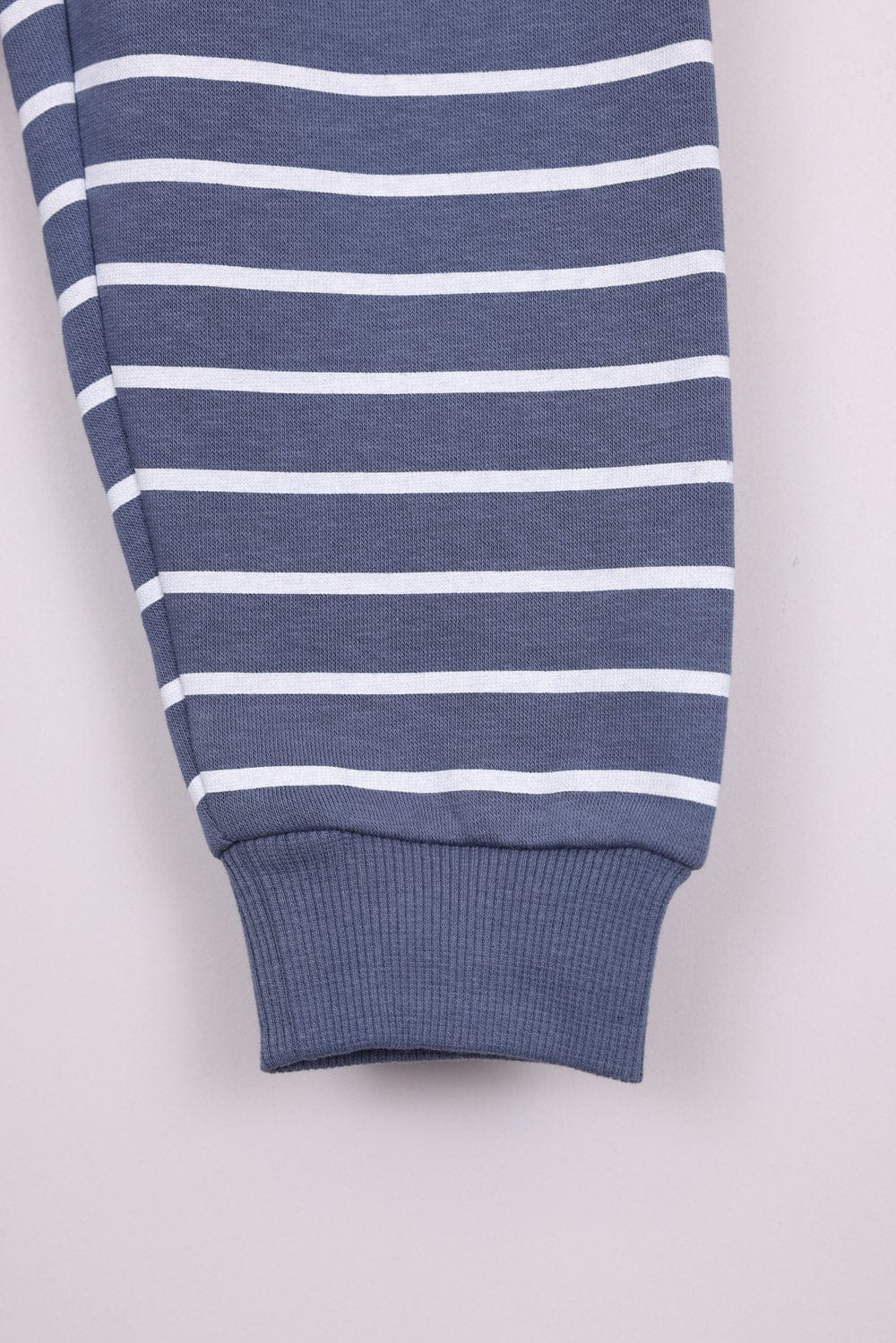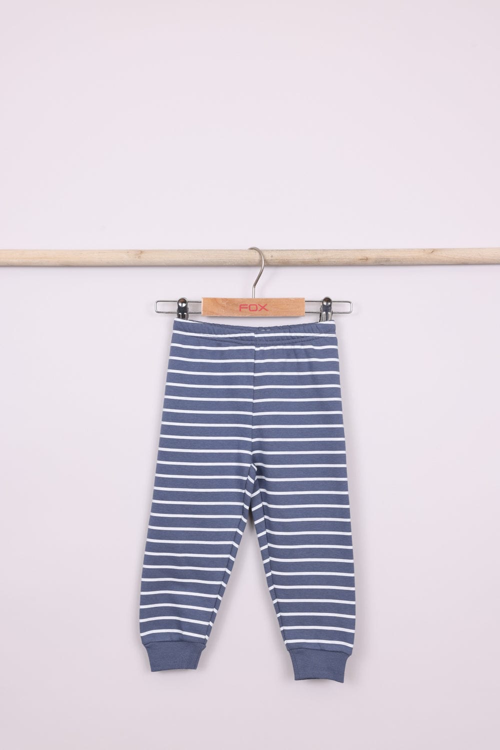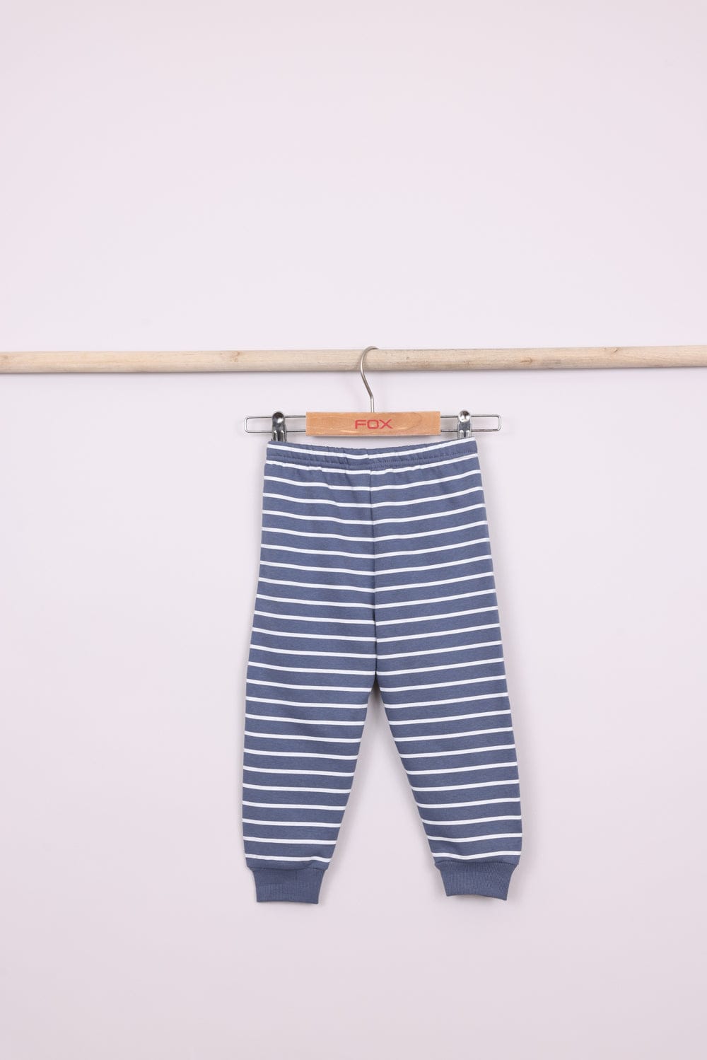 פיג'מה ממותגת מפרץ ההרפתקאות. חולצה עם הדפס קדמי ומכנס פסים