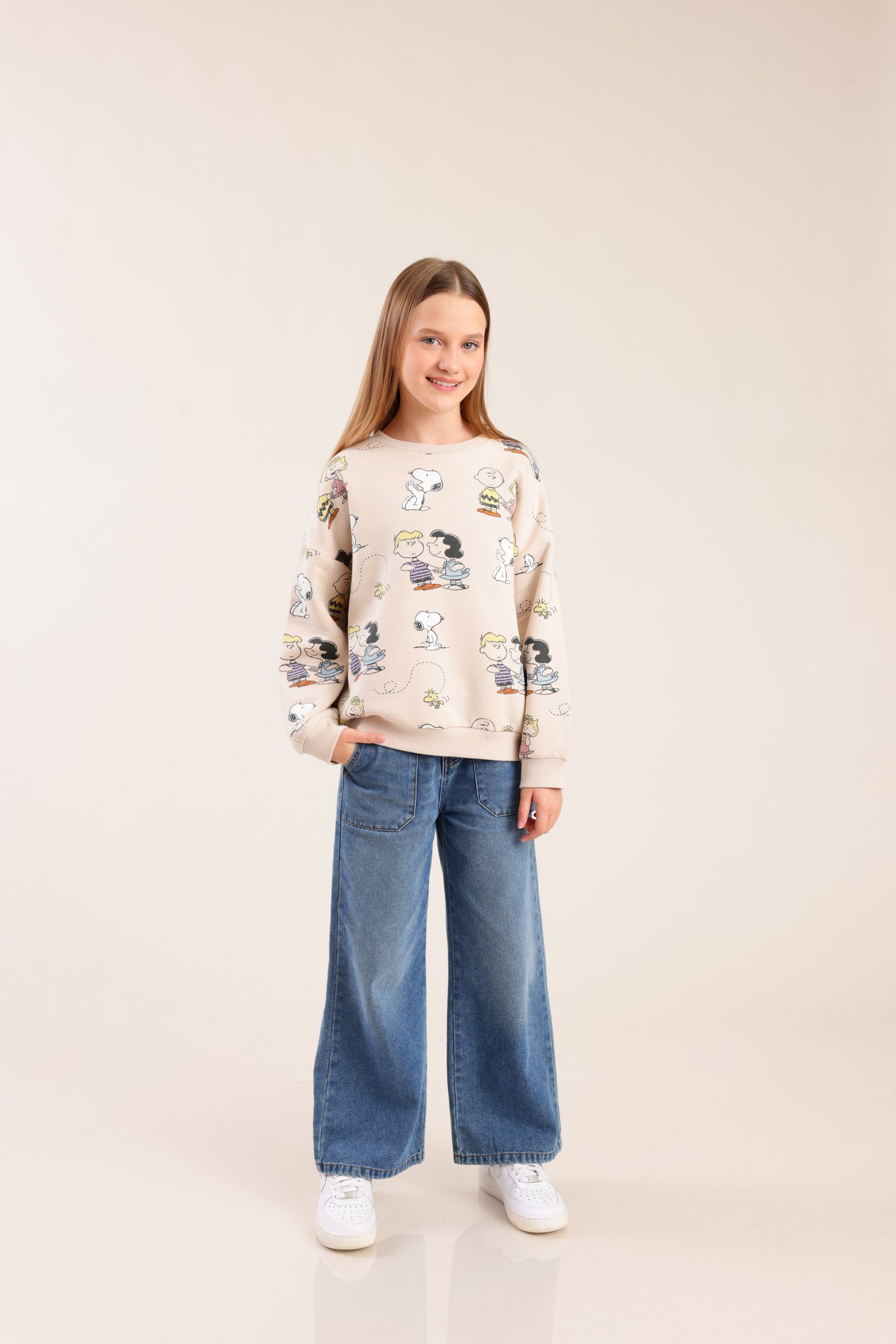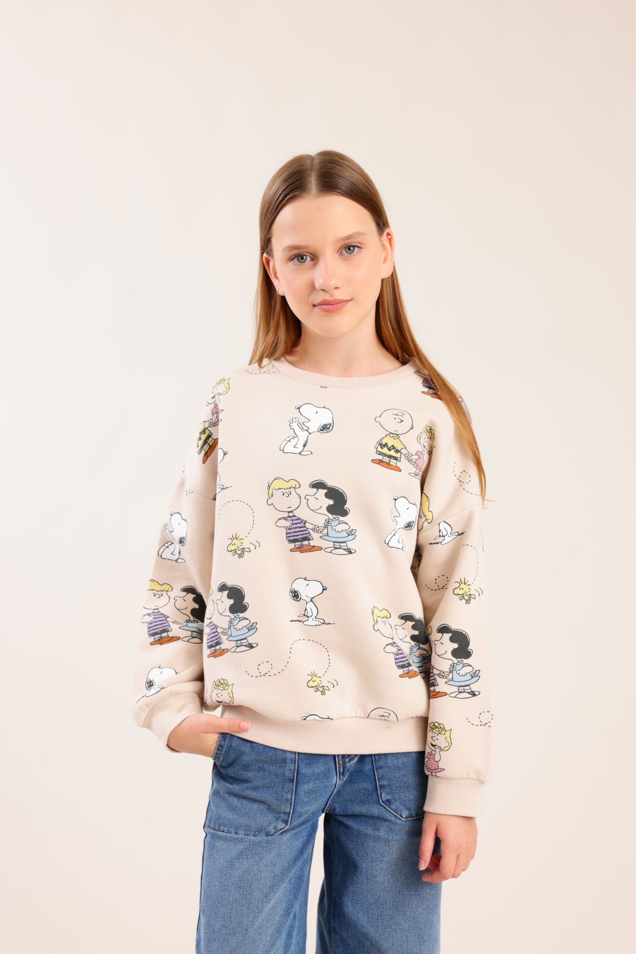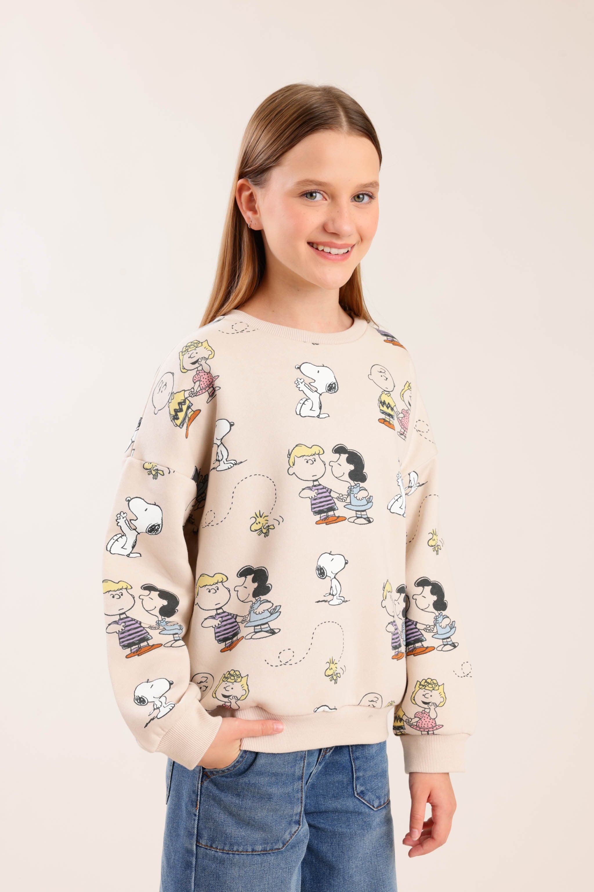 פוטר ממותג סנופי עם צווארון עגול והדפסים