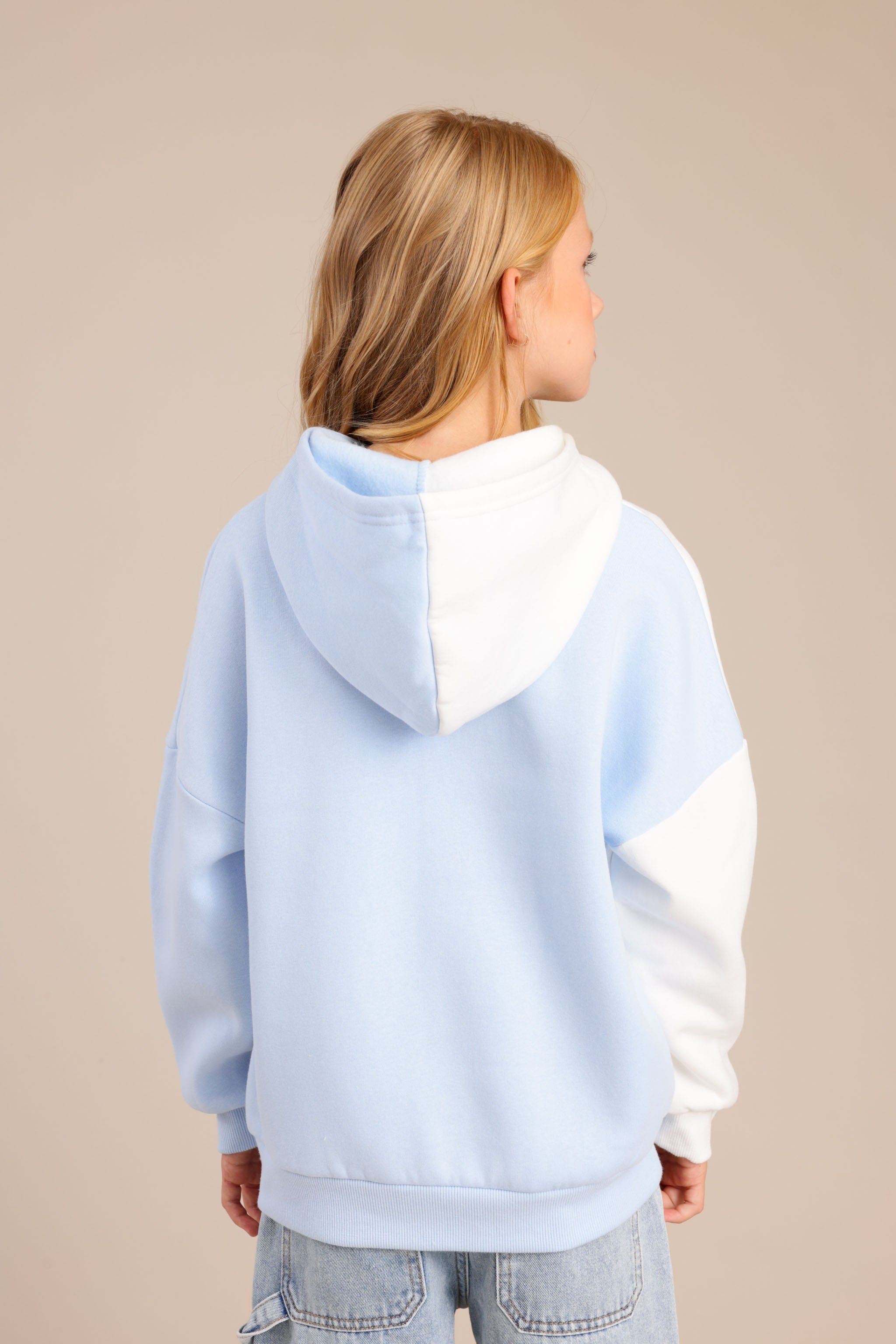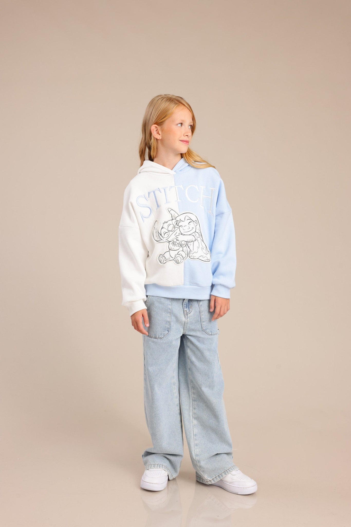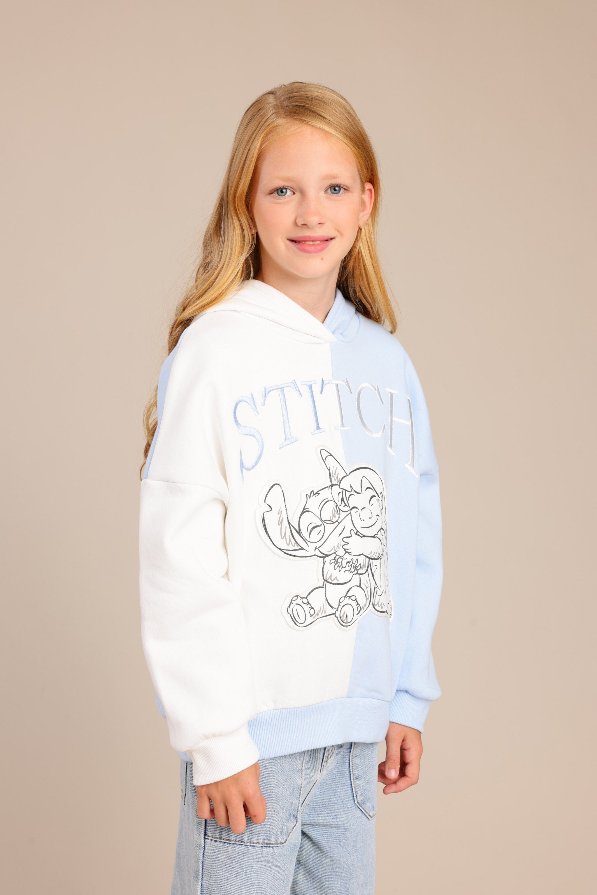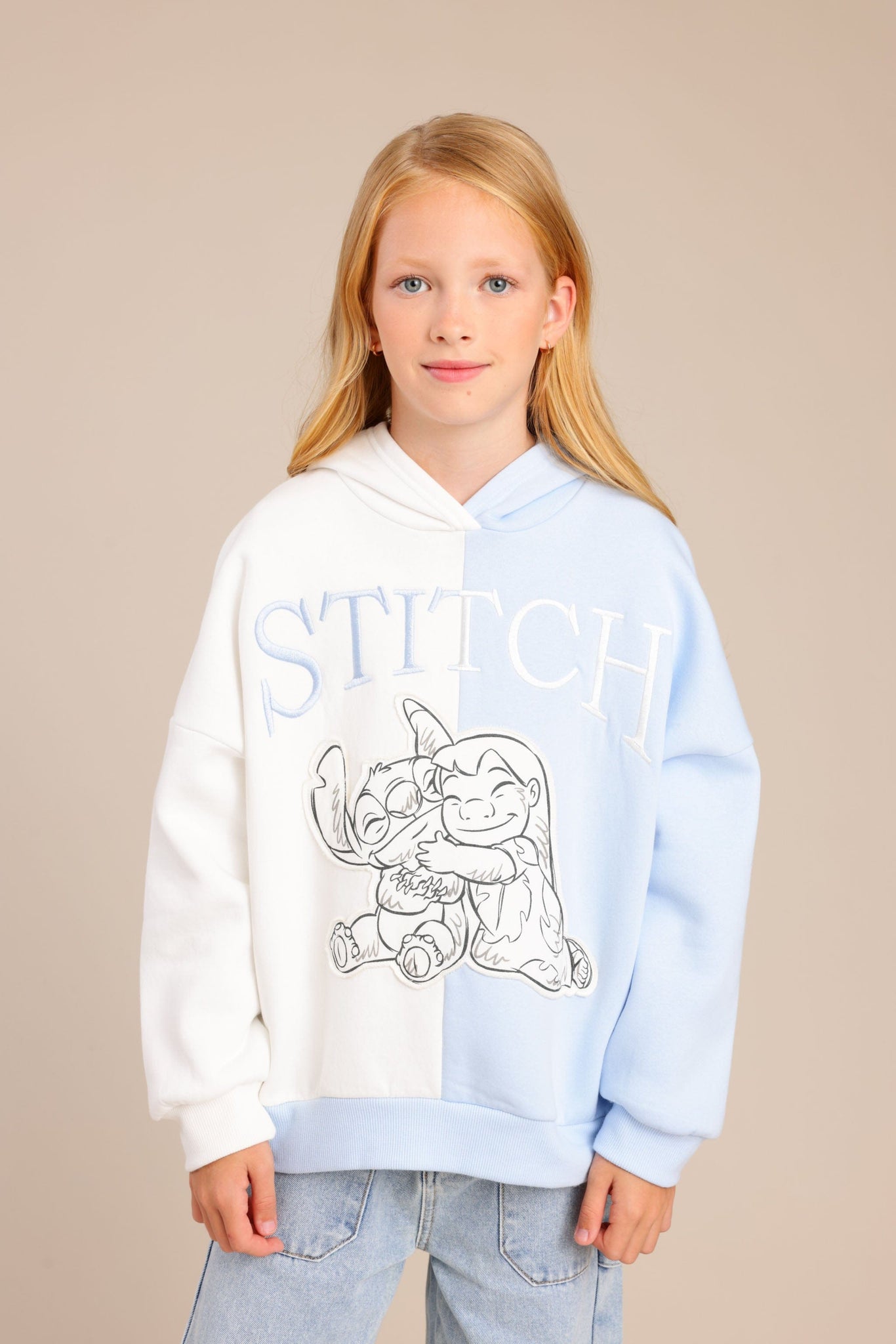 פוטר קפוצ'ון ממותג סטיץ' משולב 2 צבעים עם הדפס בחזית