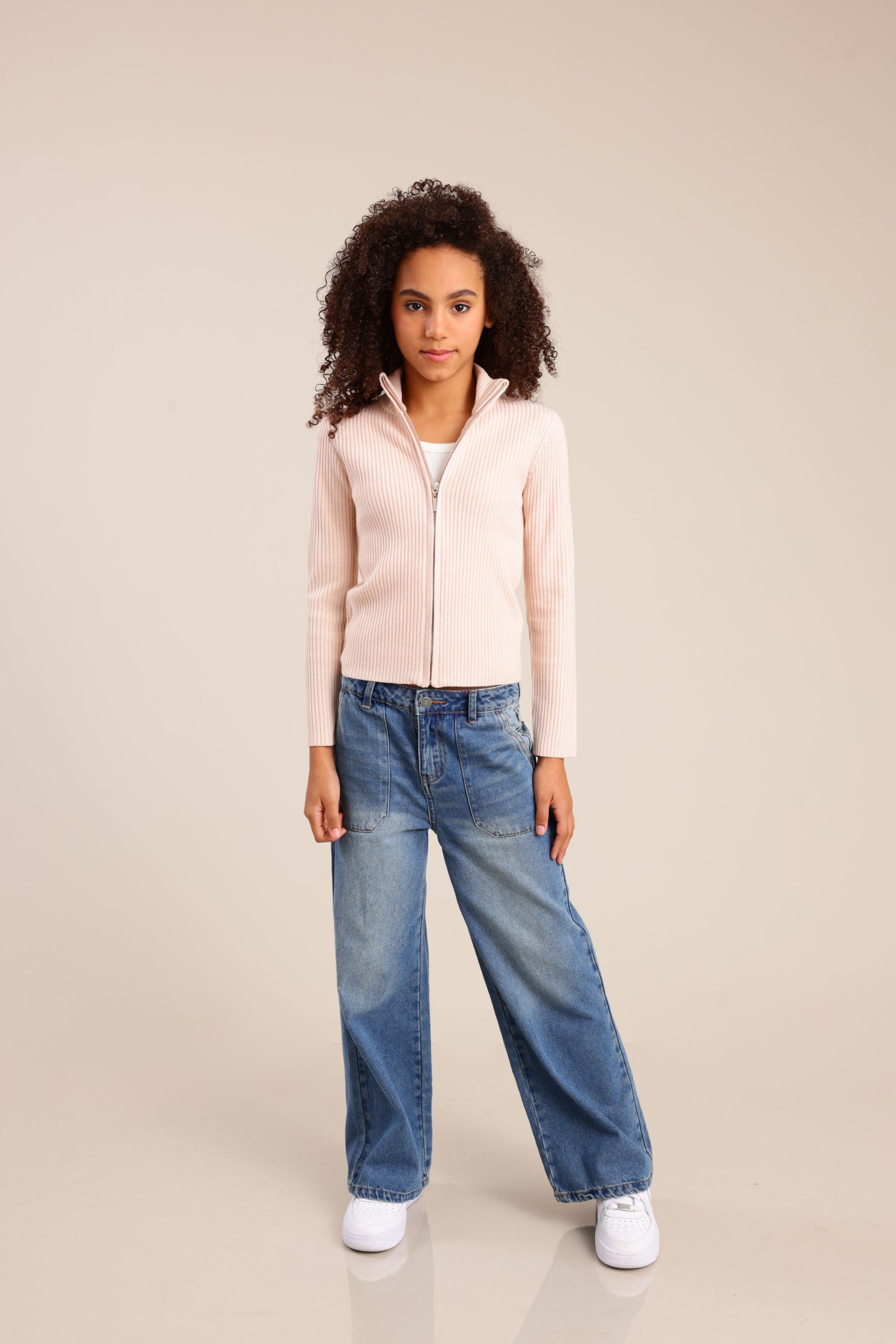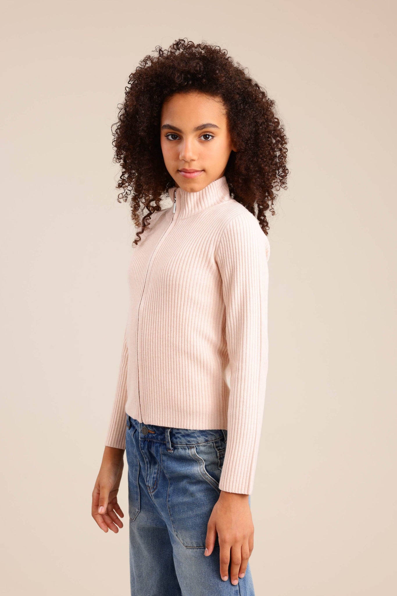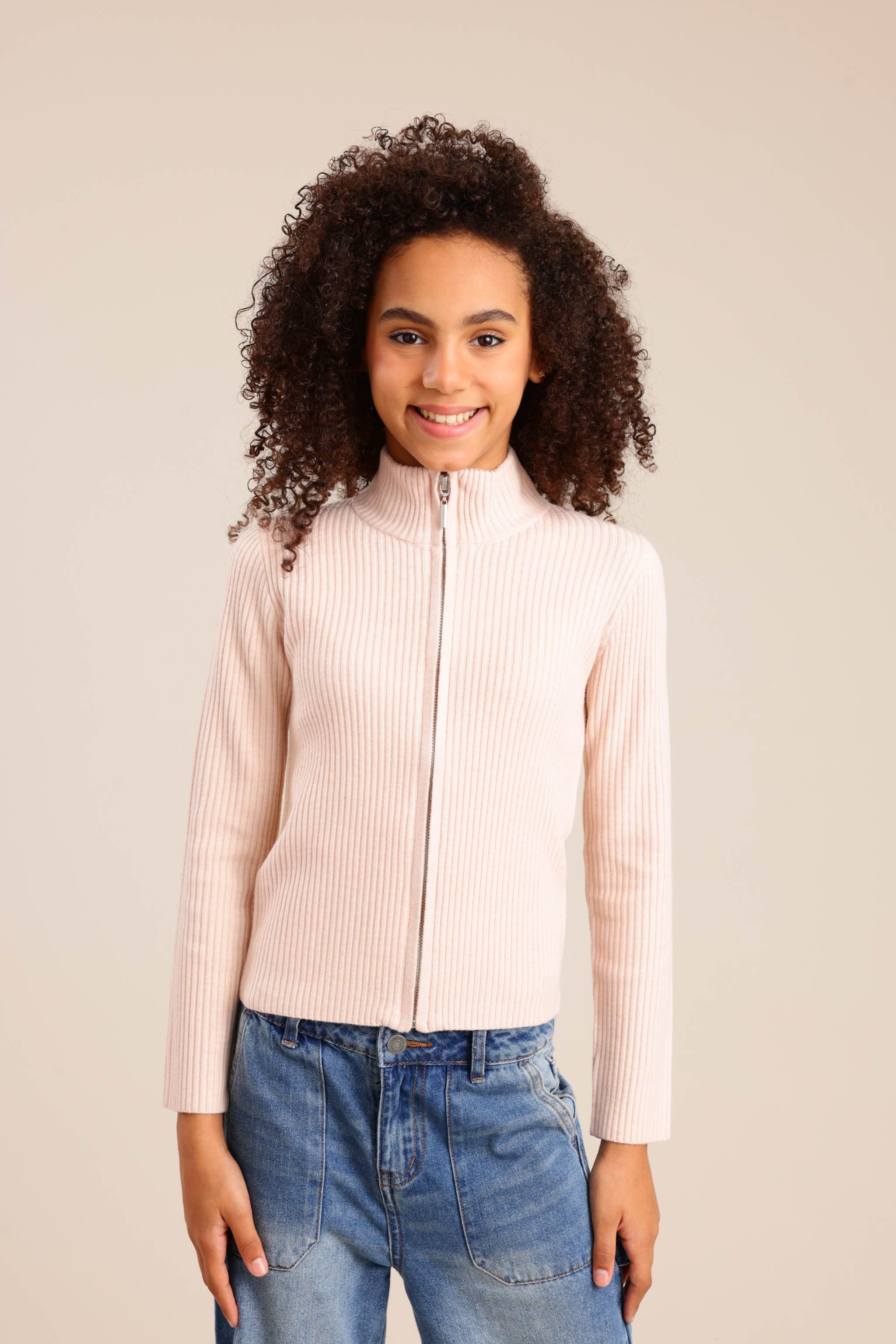 סריג קרדיגן עם רוכסן קדמי וצווארון עולה