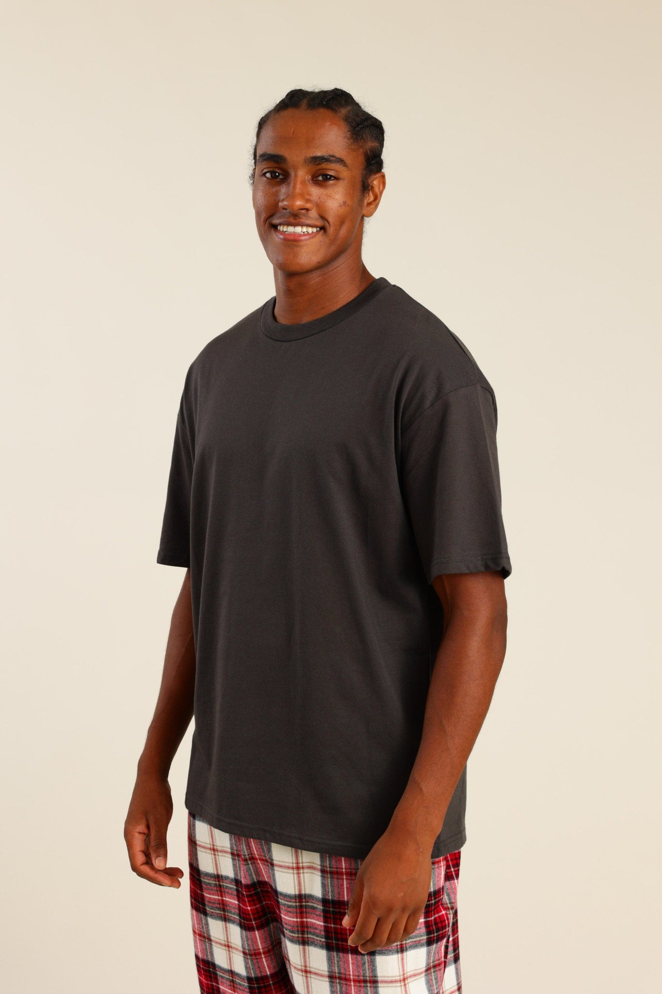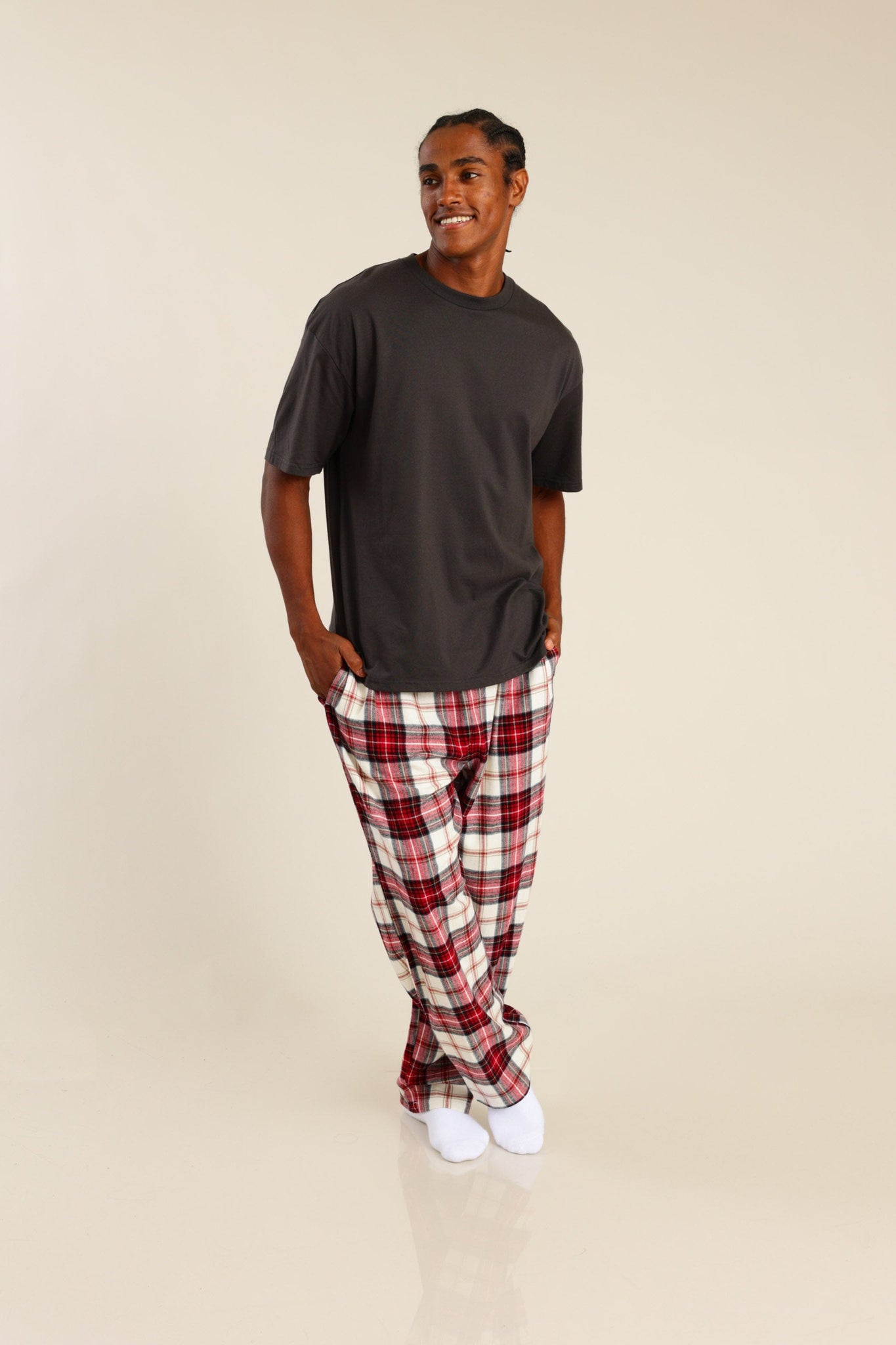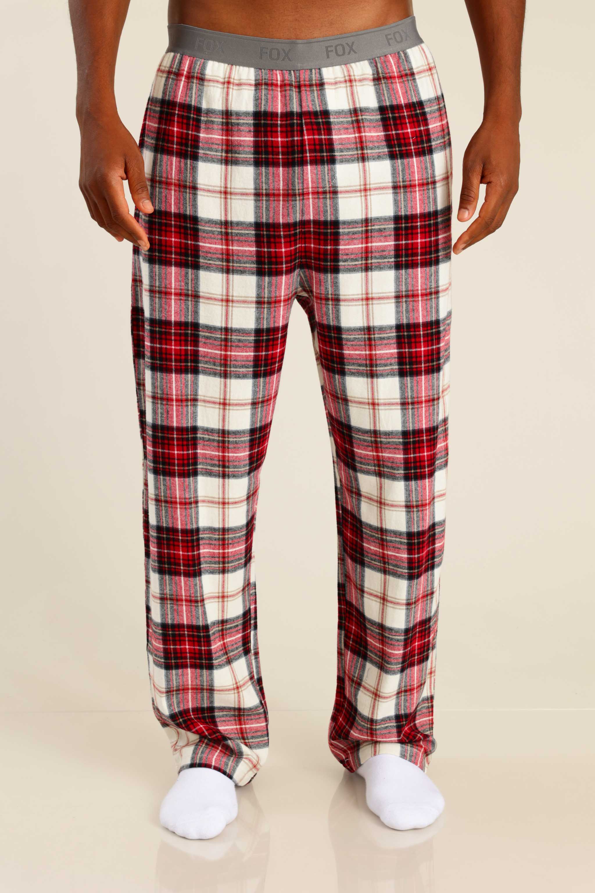 פיג'מה גברים טישרט חלקה ומכנס משובץ