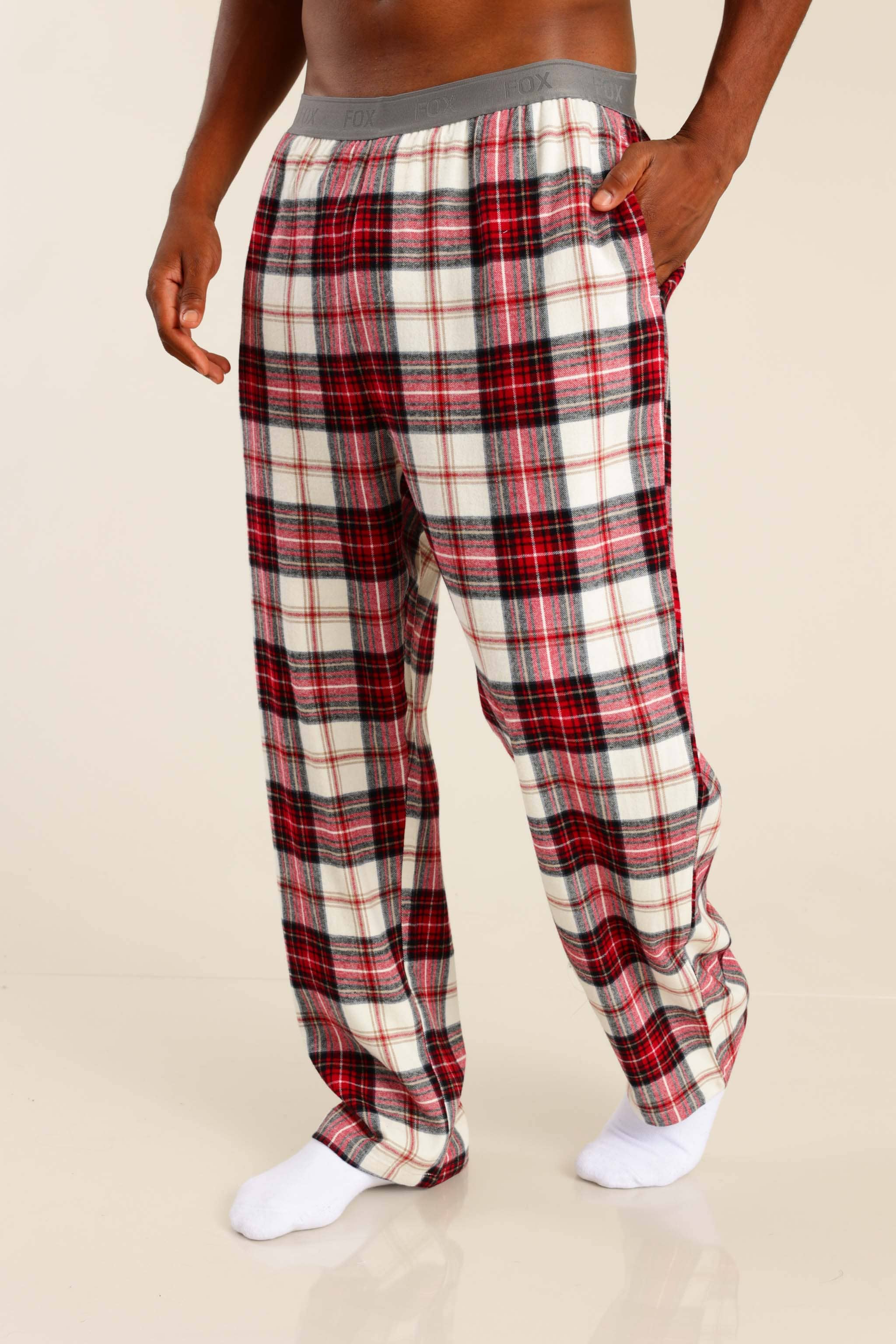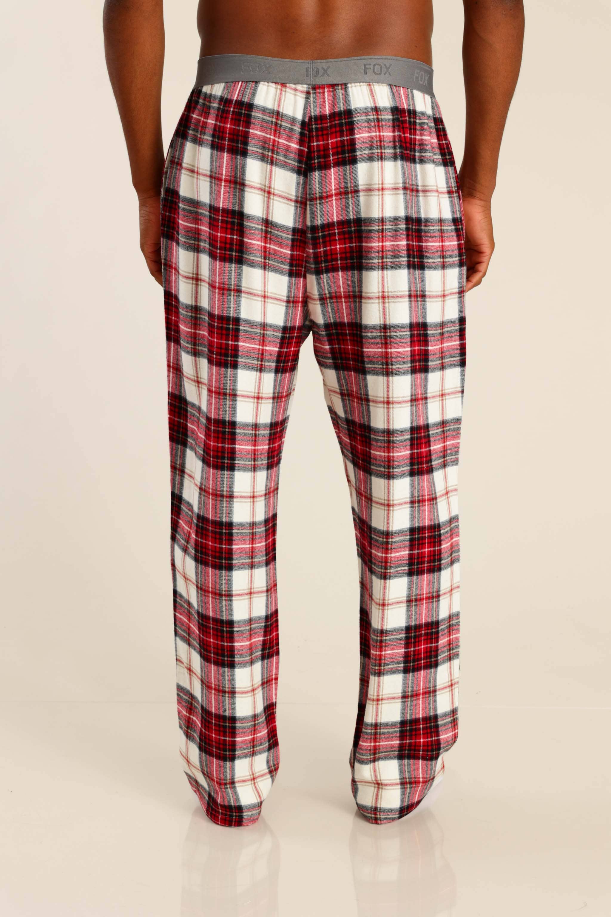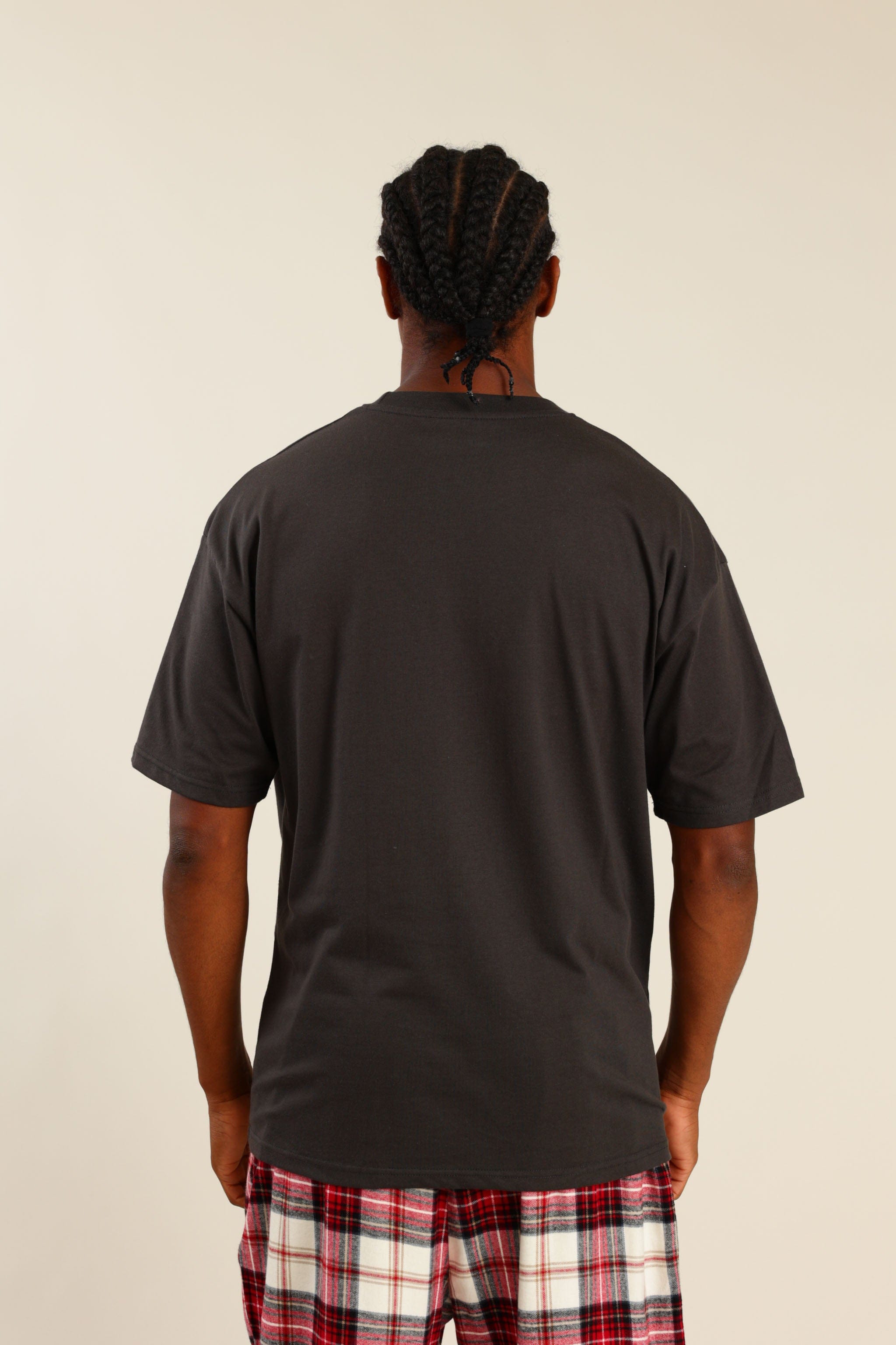 פיג'מה גברים טישרט חלקה ומכנס משובץ