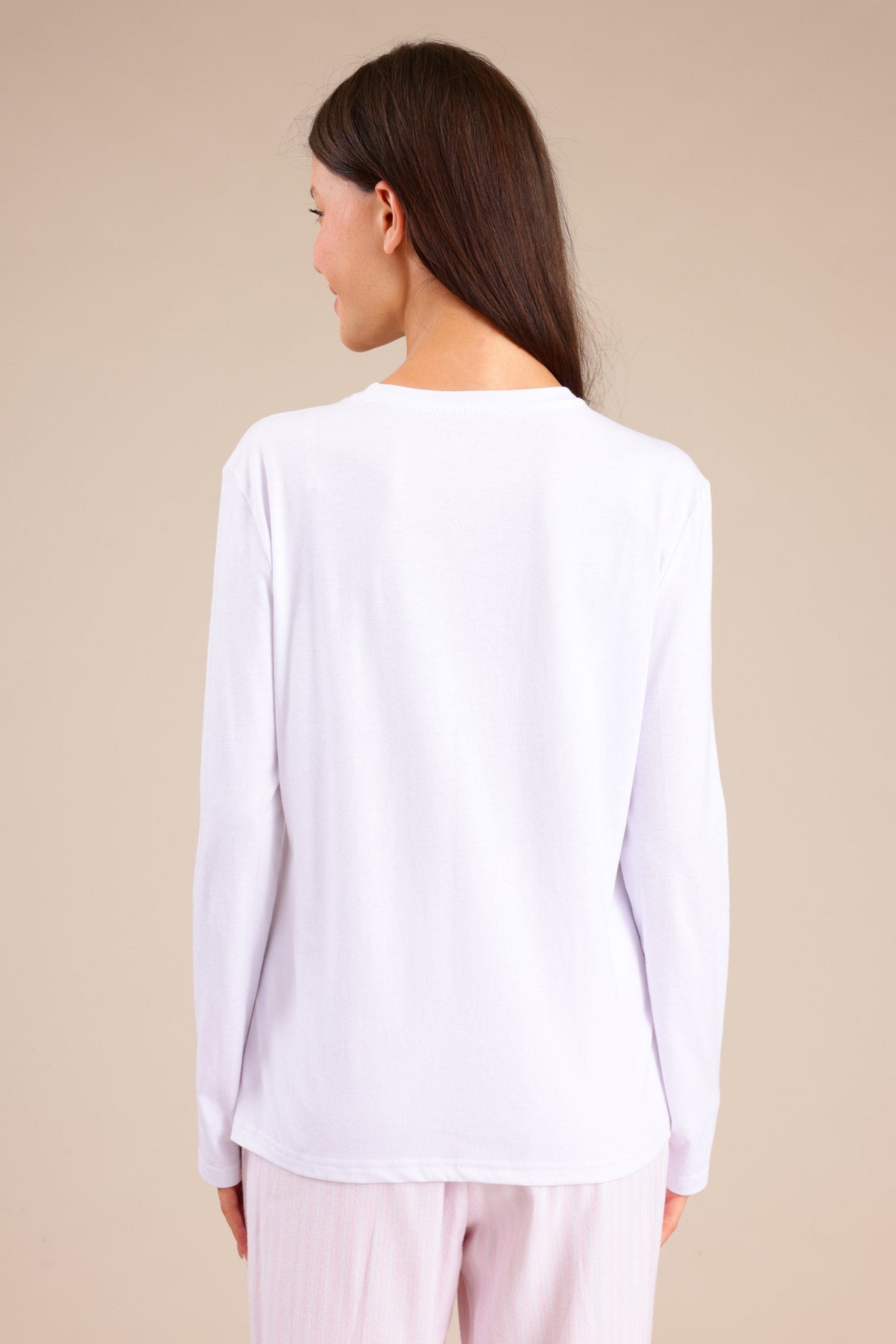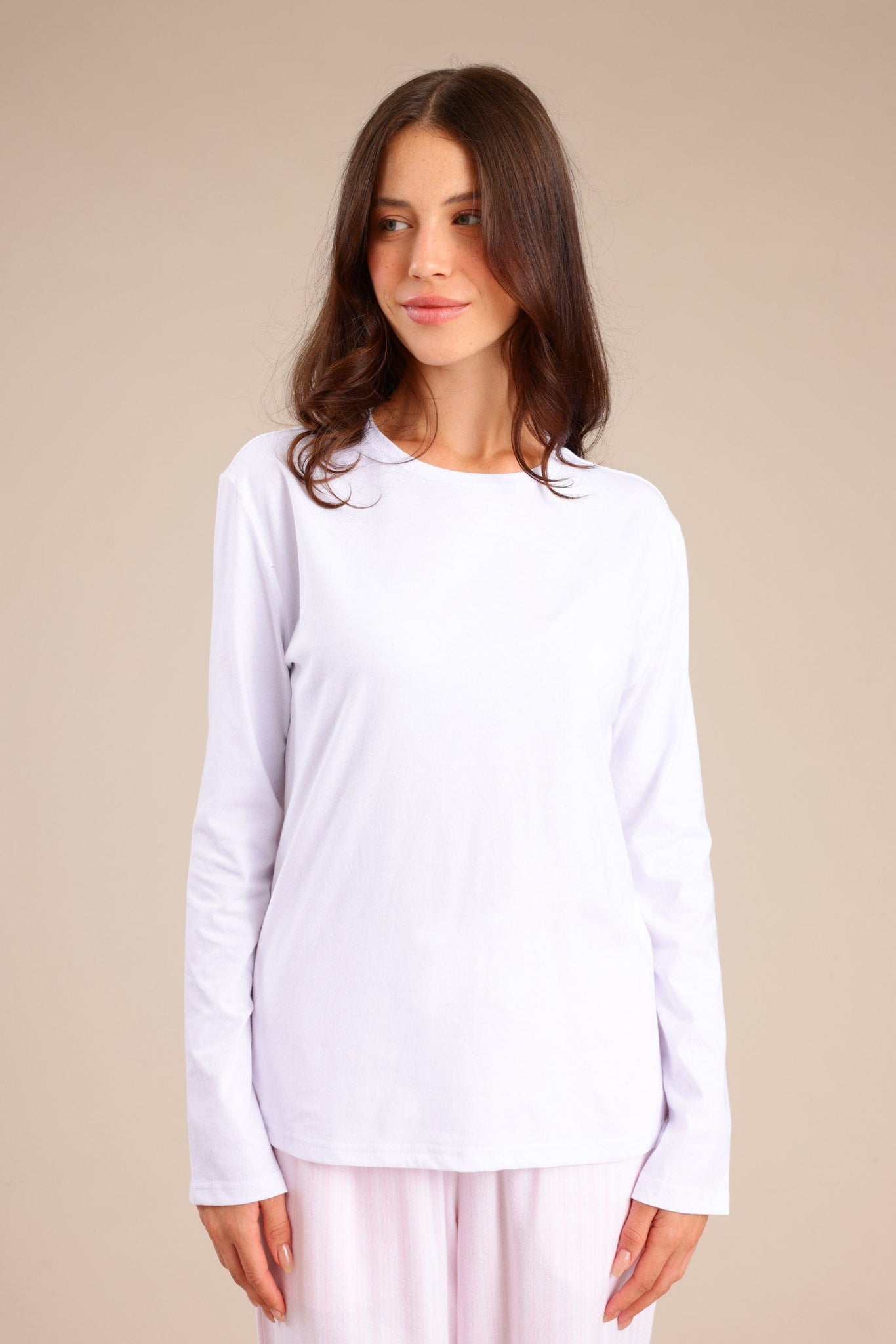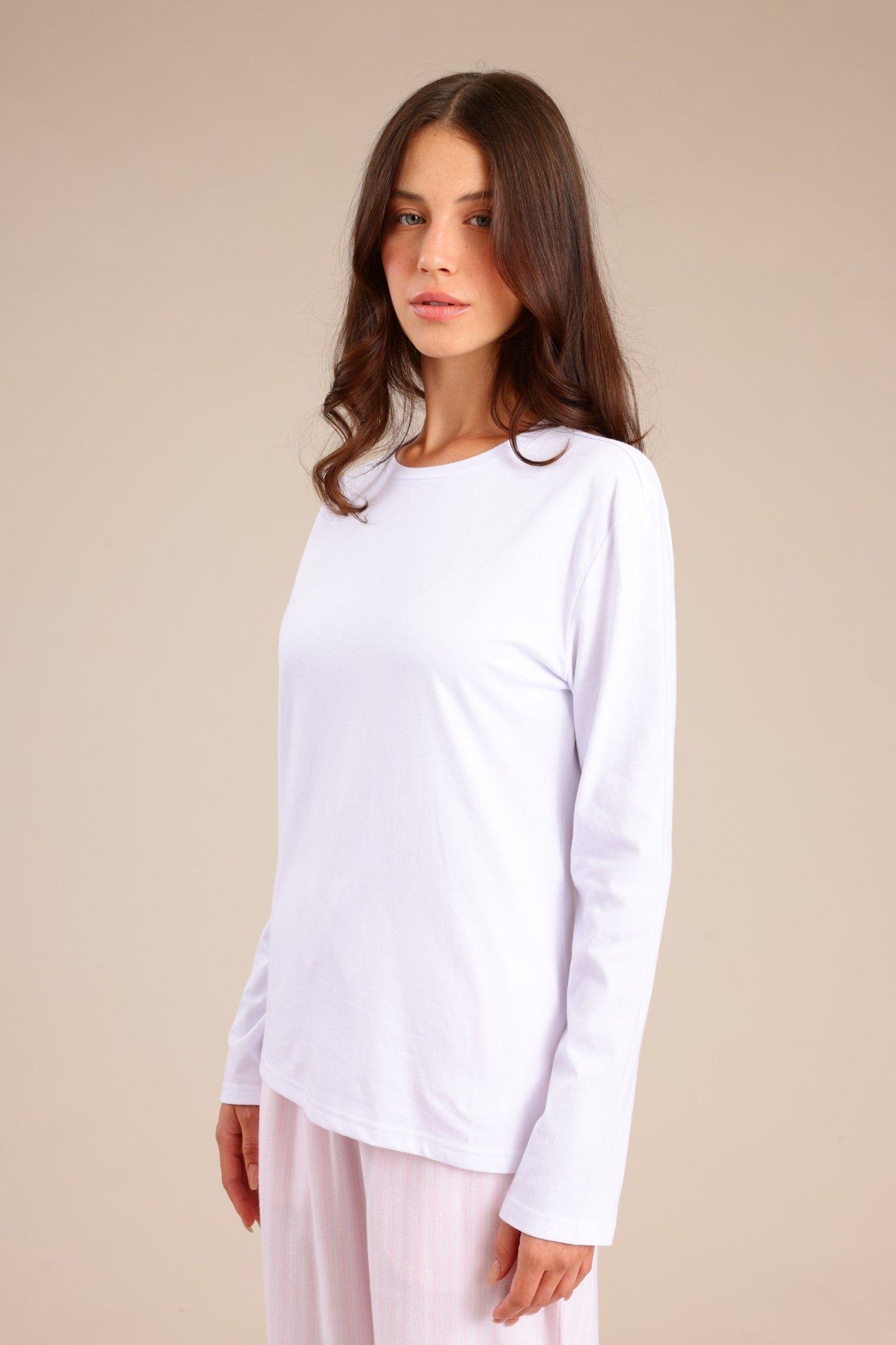 פיג'מת נשים הכוללת טי שרט חלקה ומכנס אוברסייז פסים