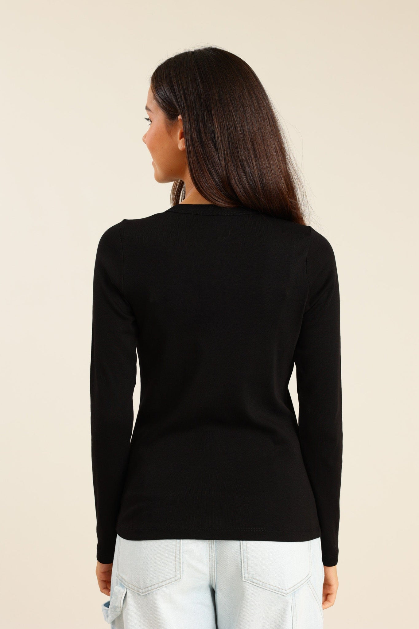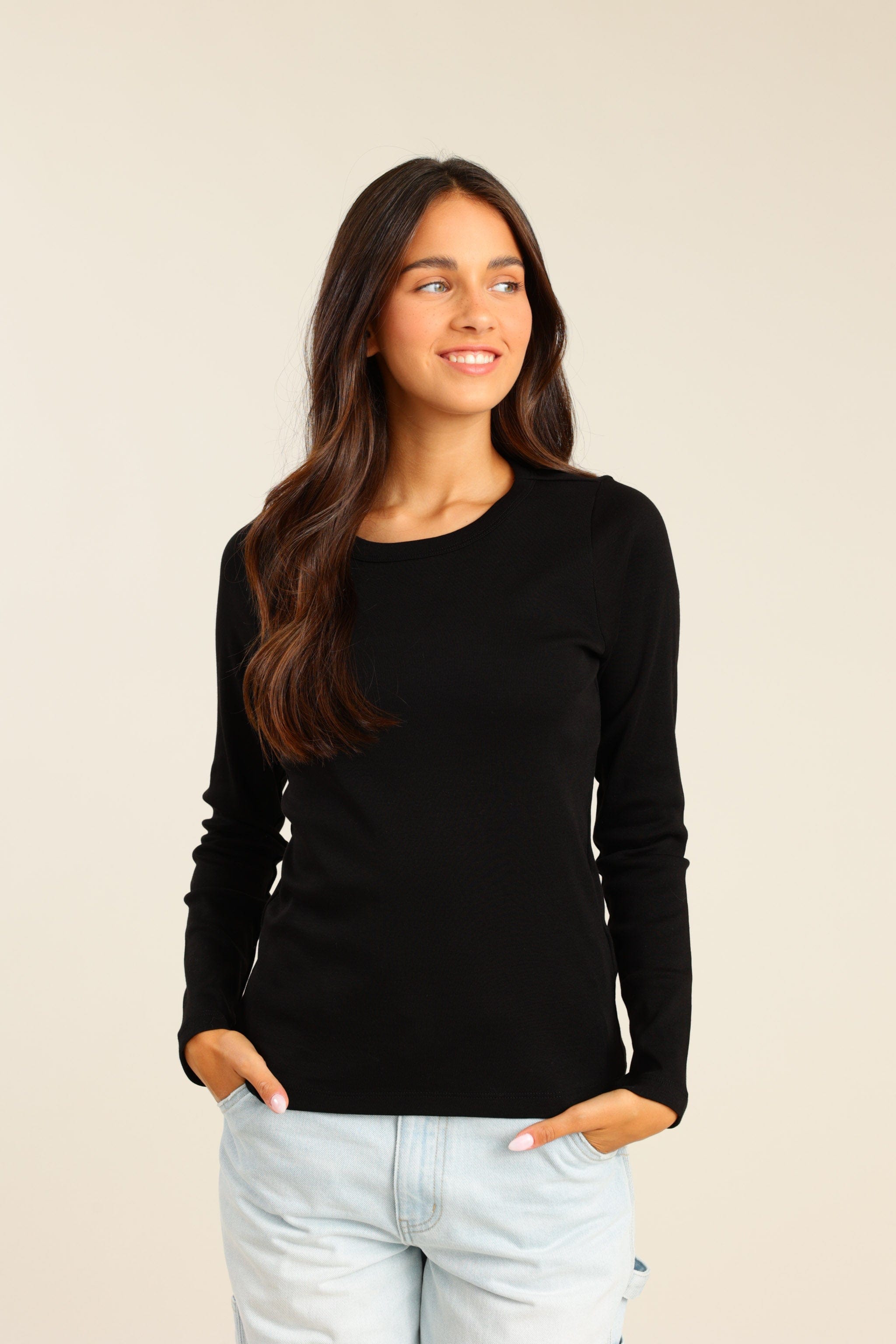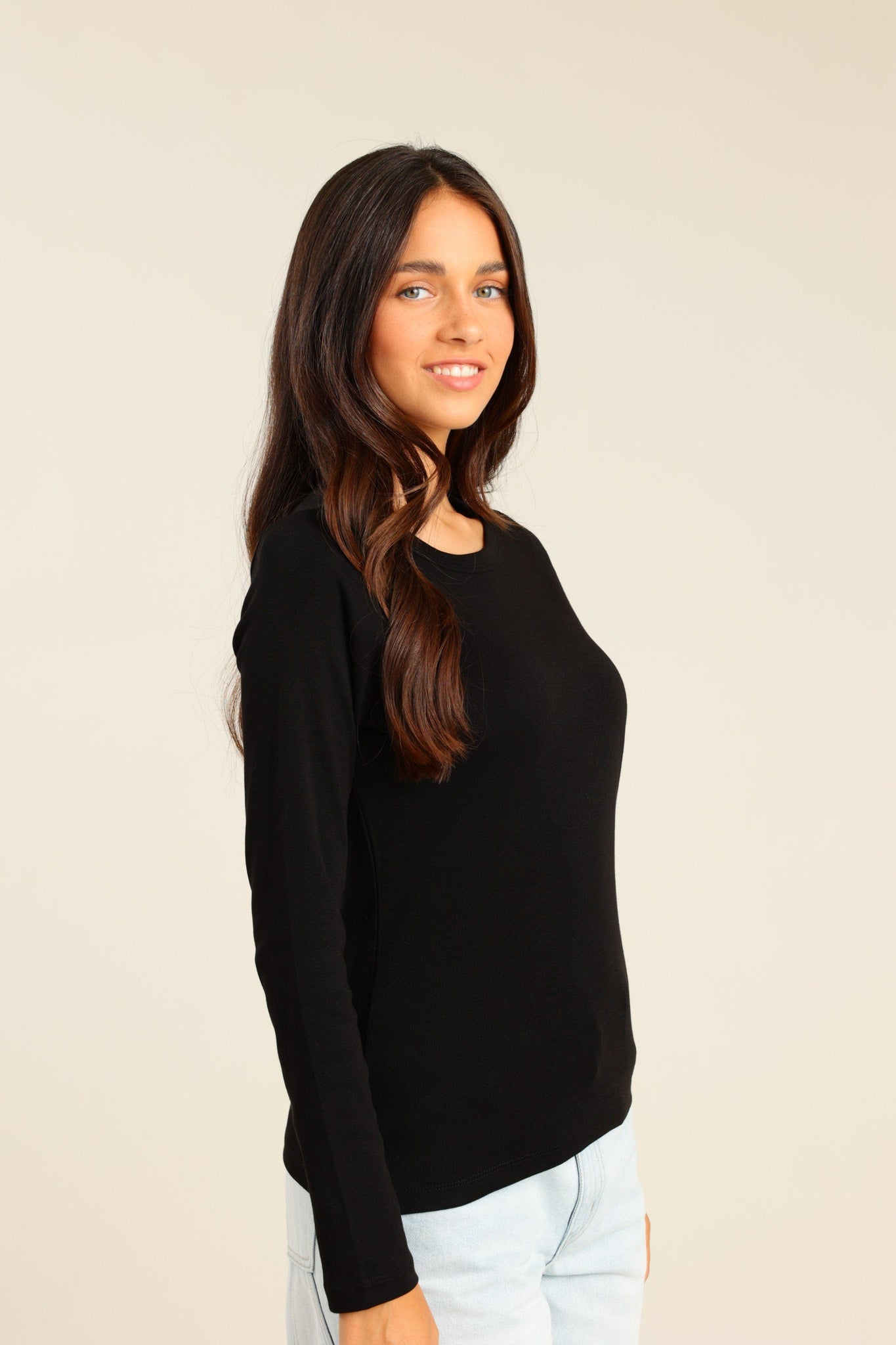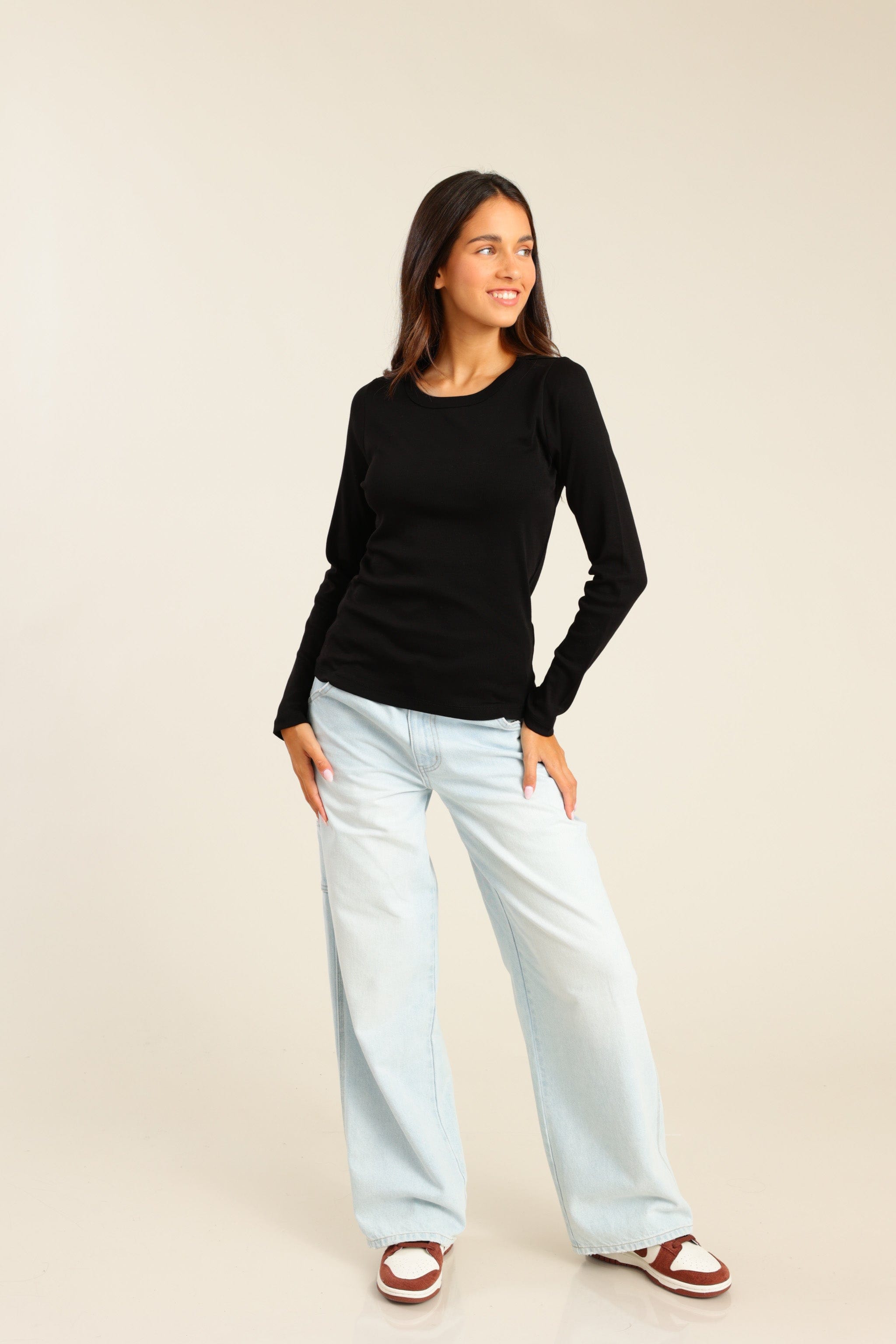 חולצת בייסיק ארוכה צווארון עגול מבד ריב