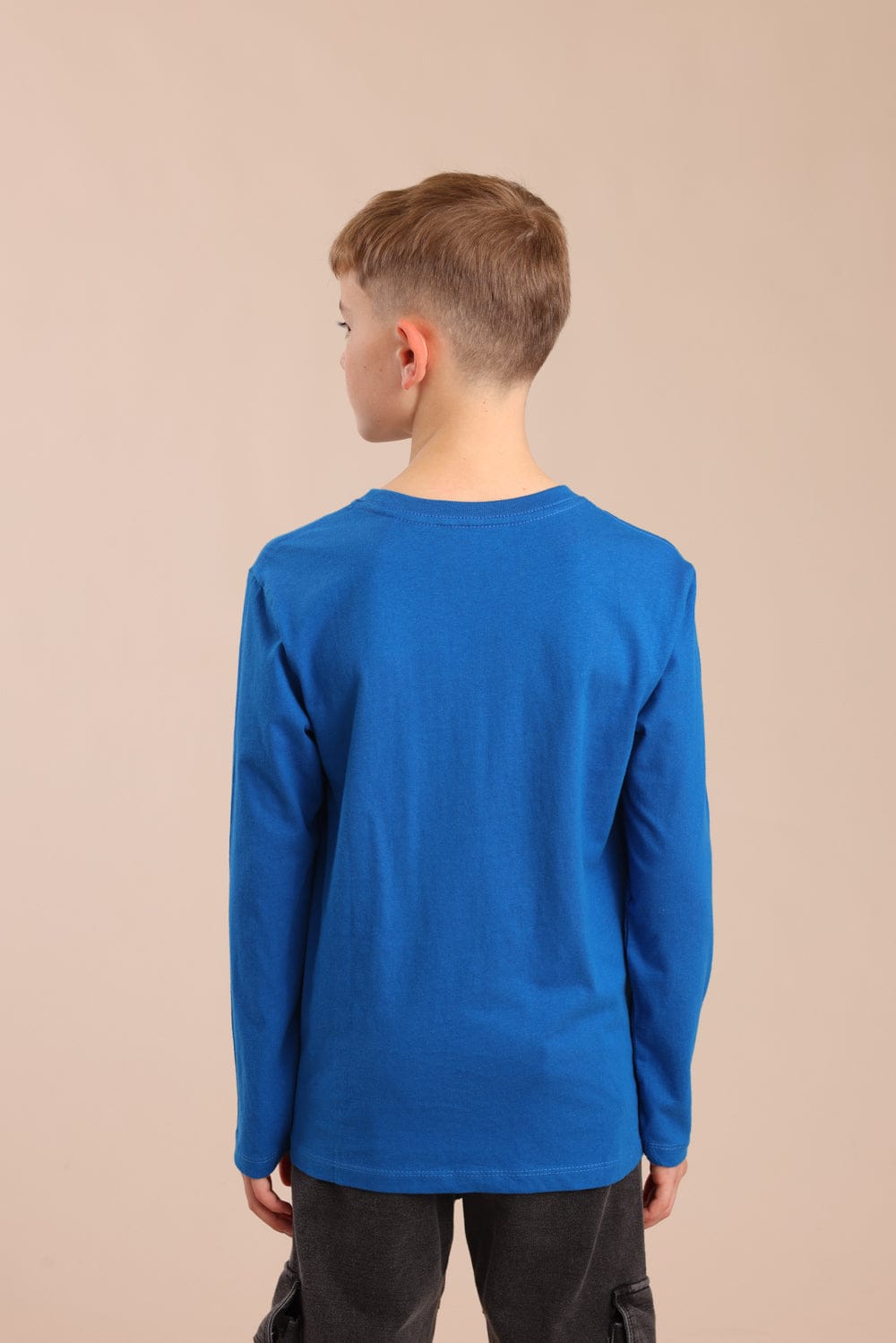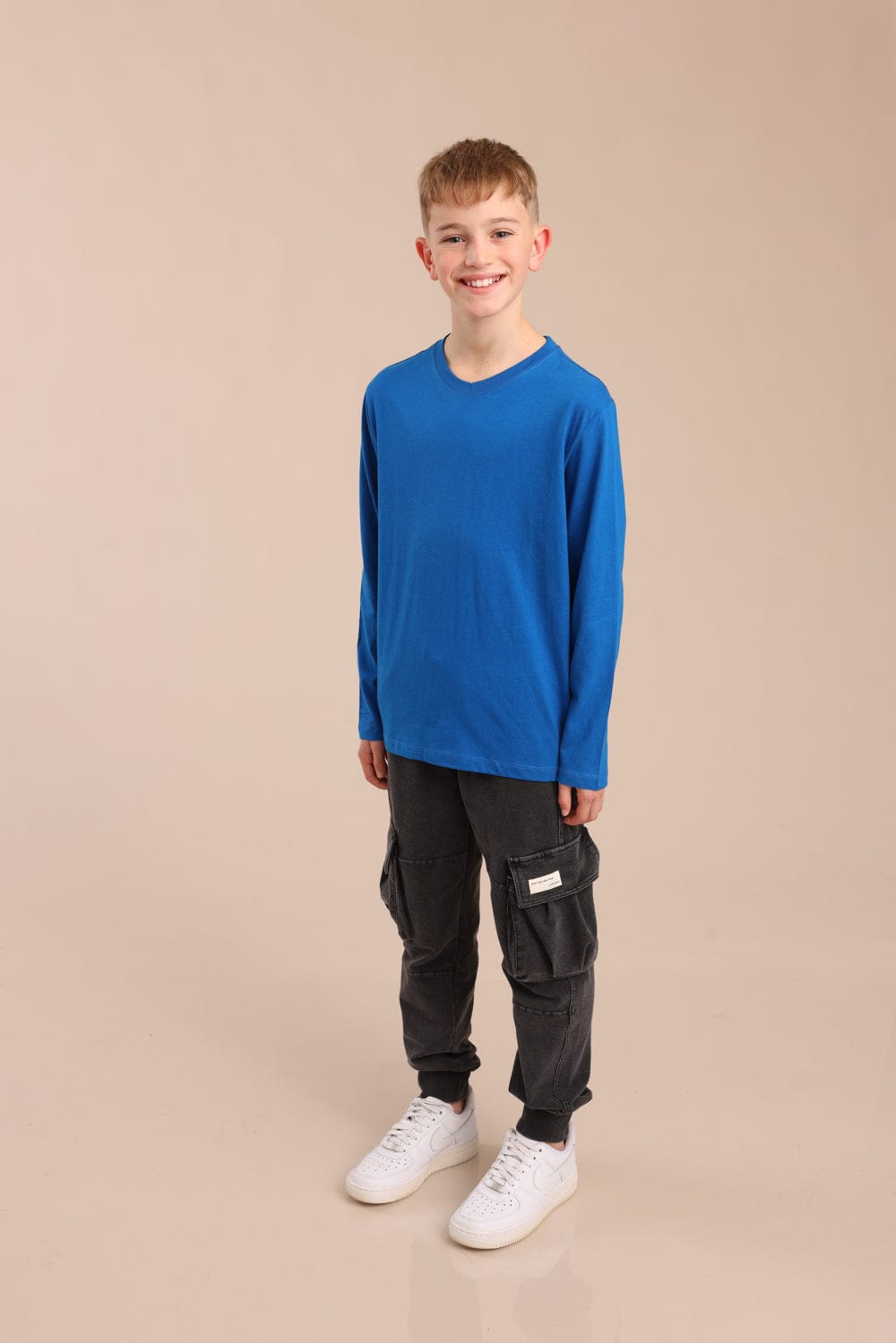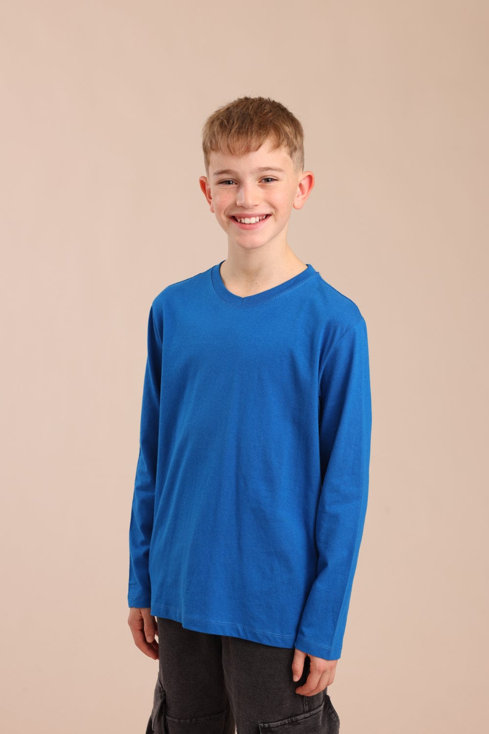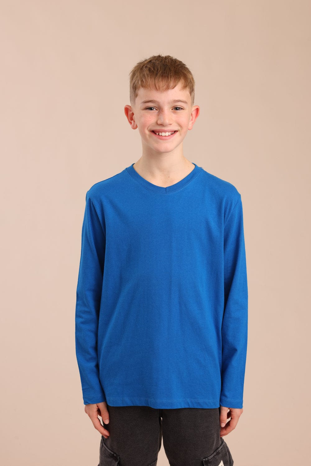 חולצה בייסיק צווארון V, שרוולים ארוכים 100% כותנה