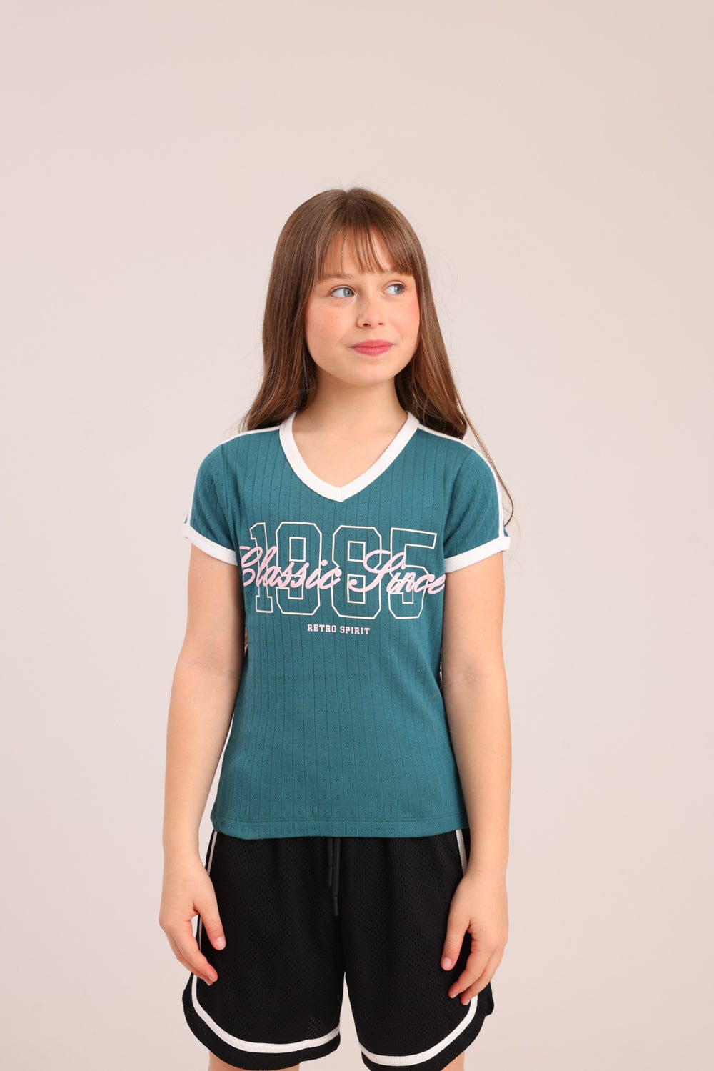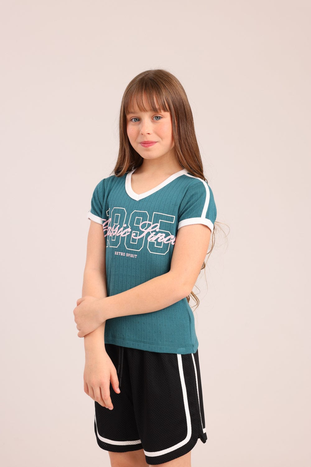 FOX בנות חולצה קצרה חולצת פוינטל עם הדפס חולצת פוינטל עם הדפס